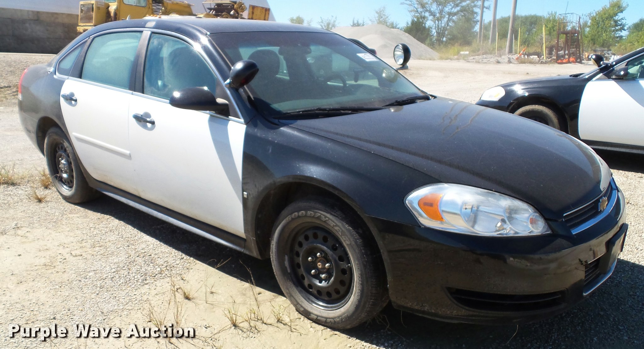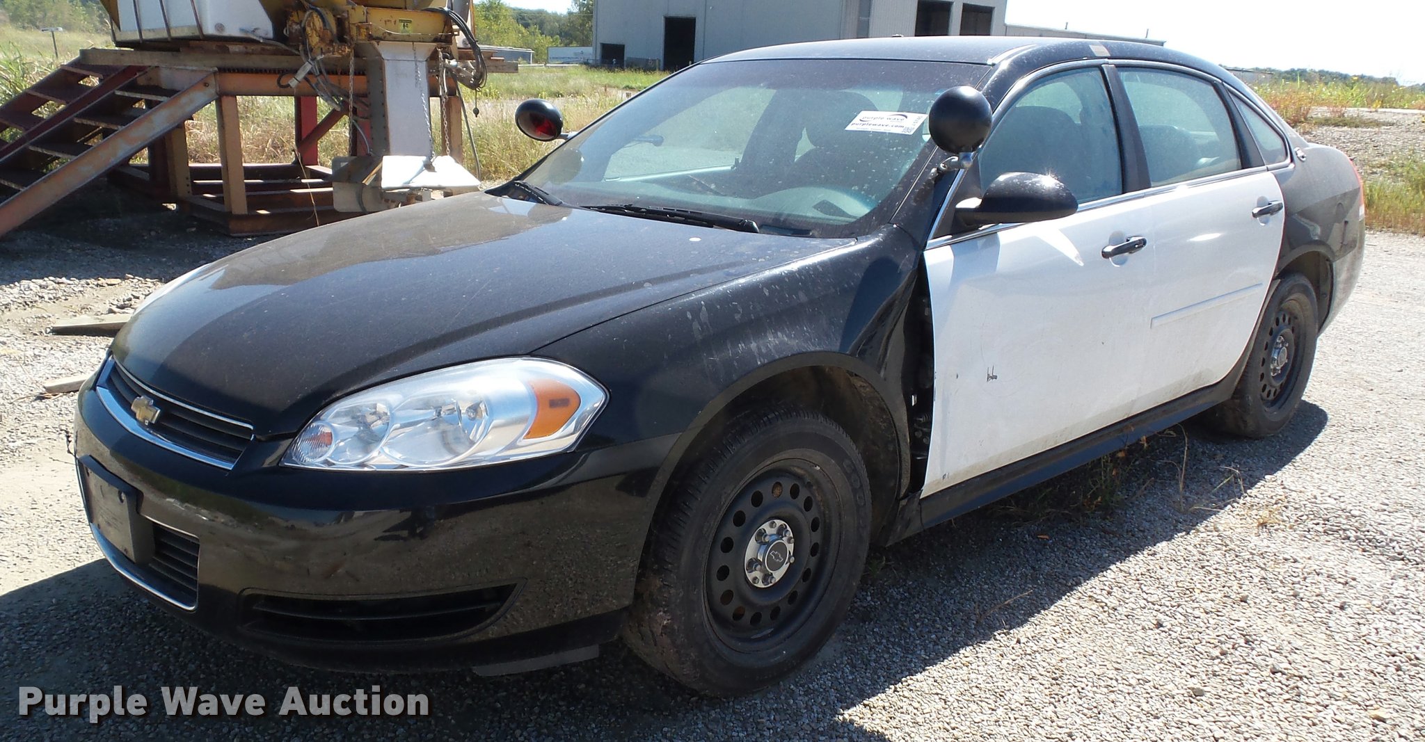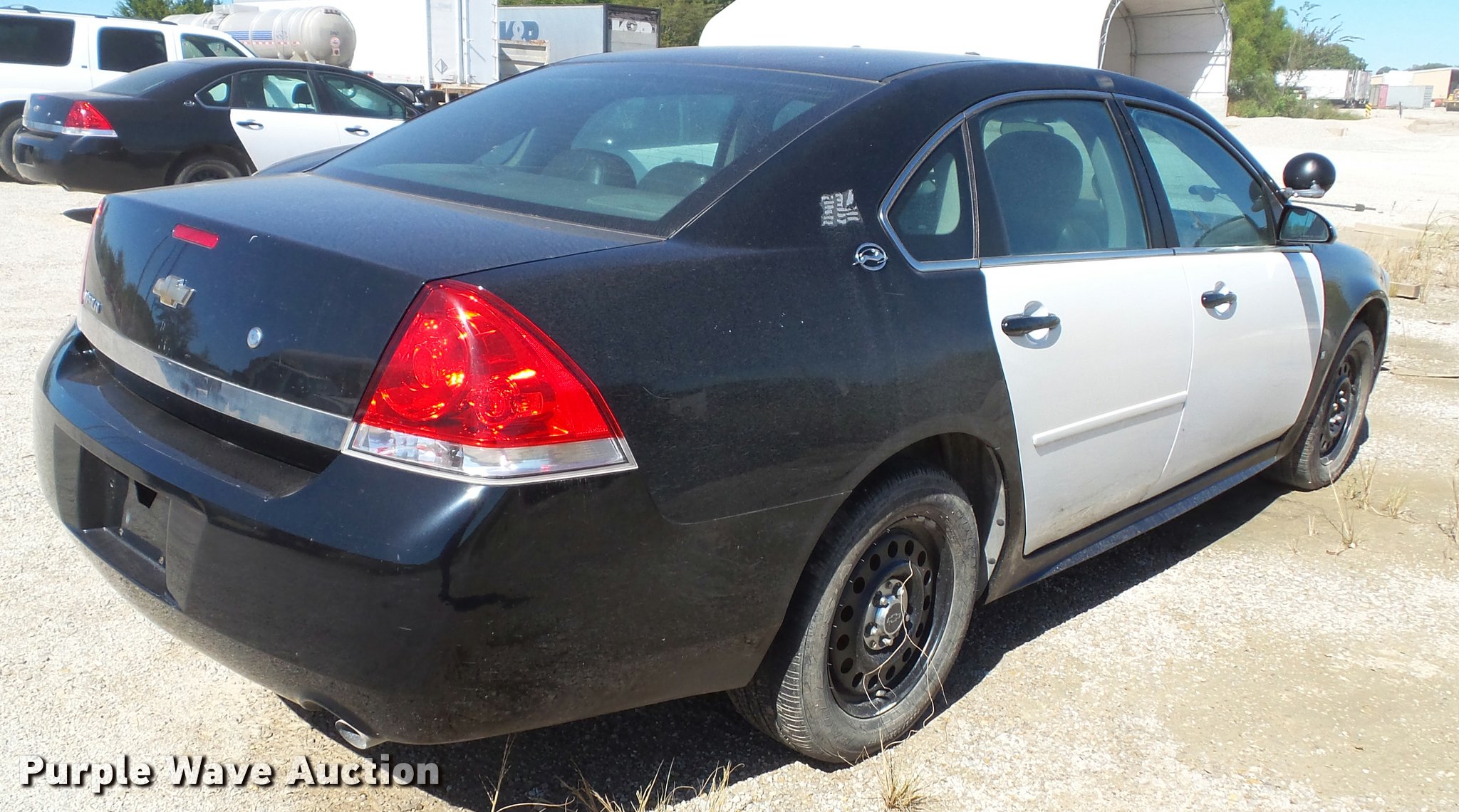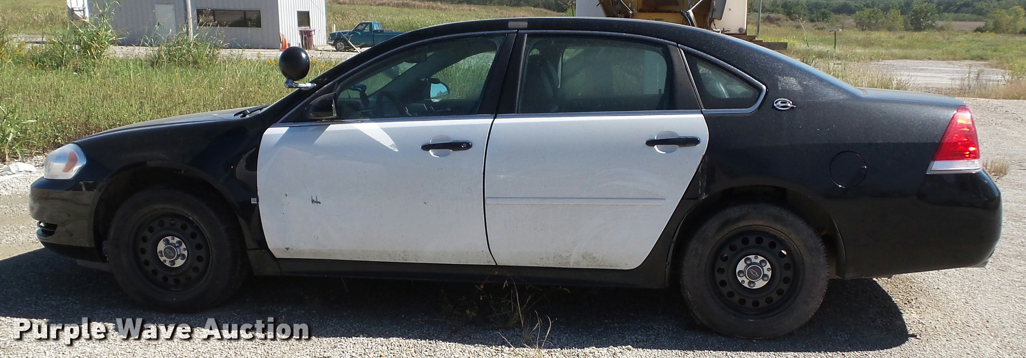 Purple Wave is selling a used Passenger Vehicle in Kansas. This item is a 2009 Chevrolet Impala Police with the following: 156,283 miles on odometer, 3.6L V6 DOHC 16V FFV gas engine, Automatic transmission, AC and heat, Tilt, Cruise, AM/FM/CD, Power windows, locks, mirrors, and seats, Cloth front interior, Vinyl rear interior, Cage divider, Center console, Spotlights, 225/60R16 tires, Dead battery, Holes in roof from equipment