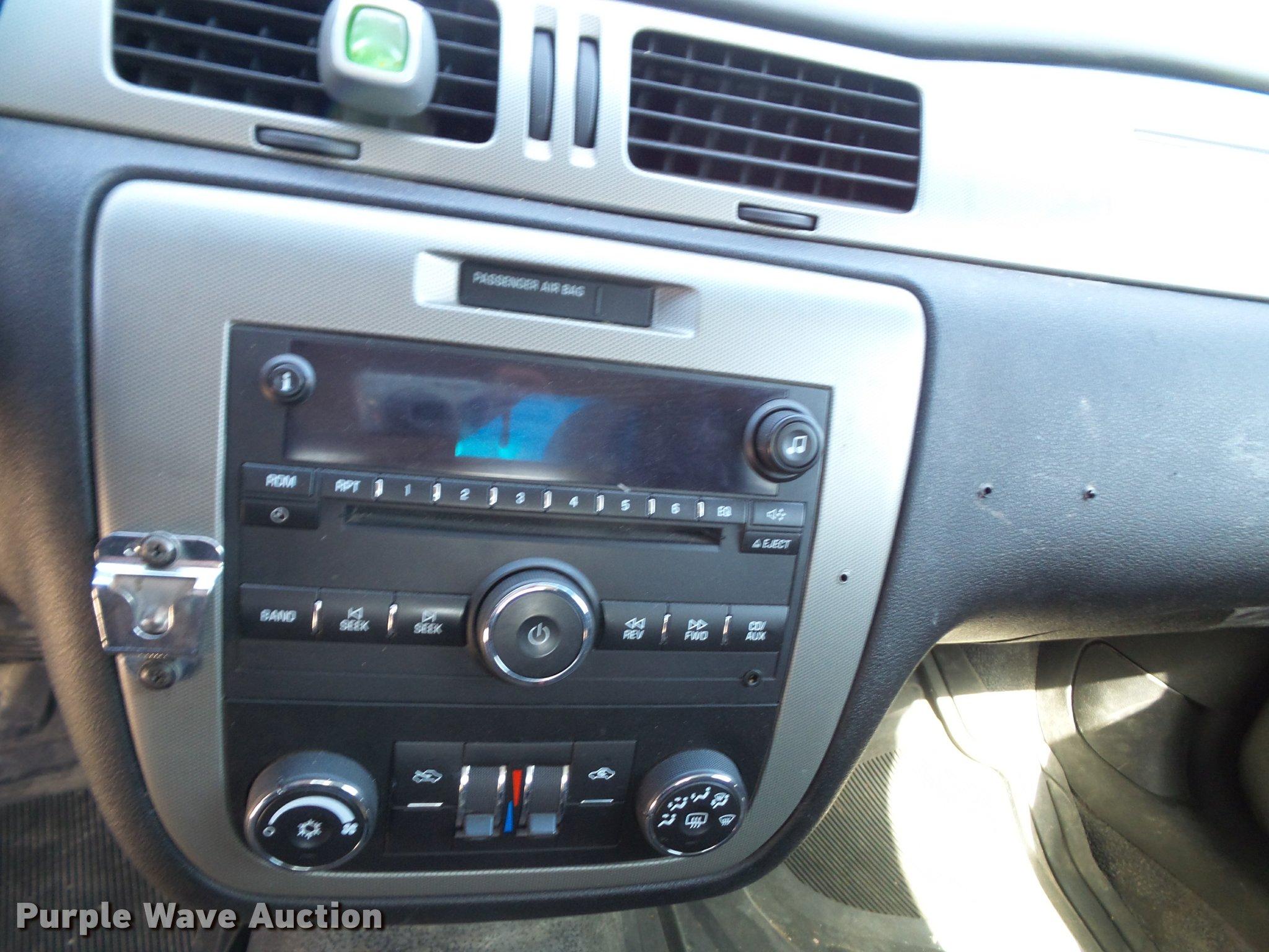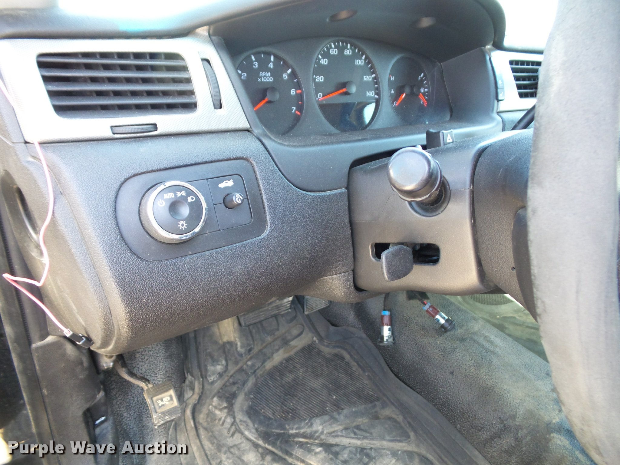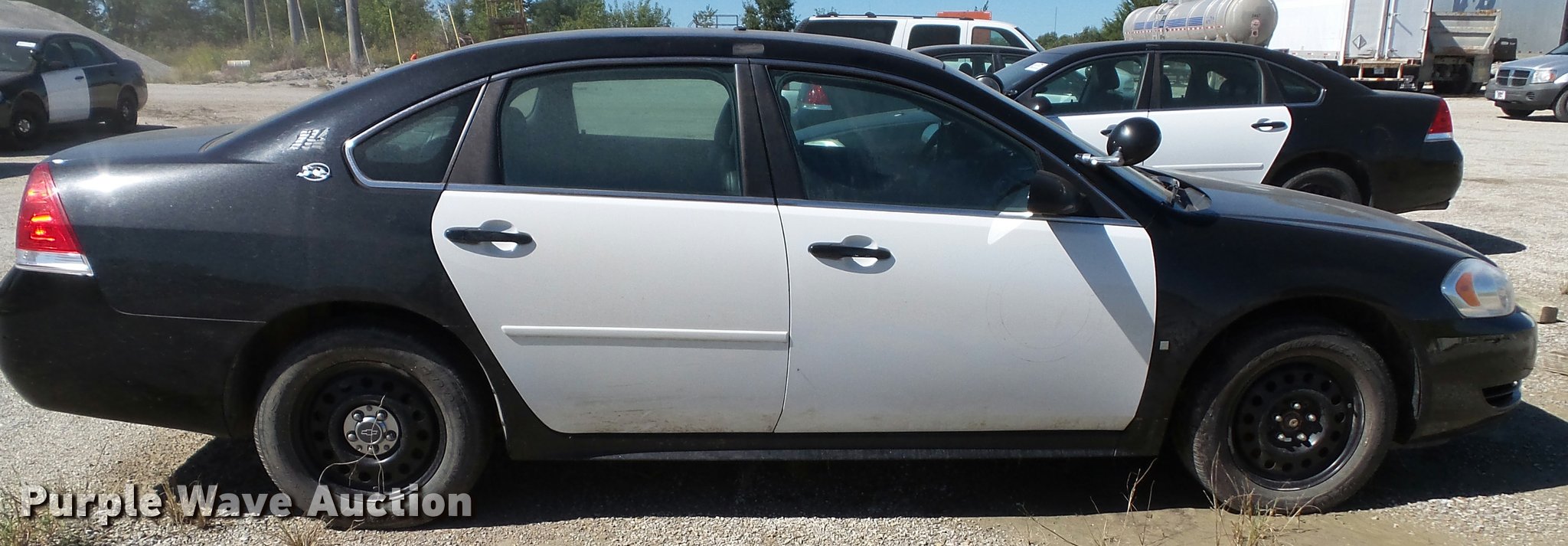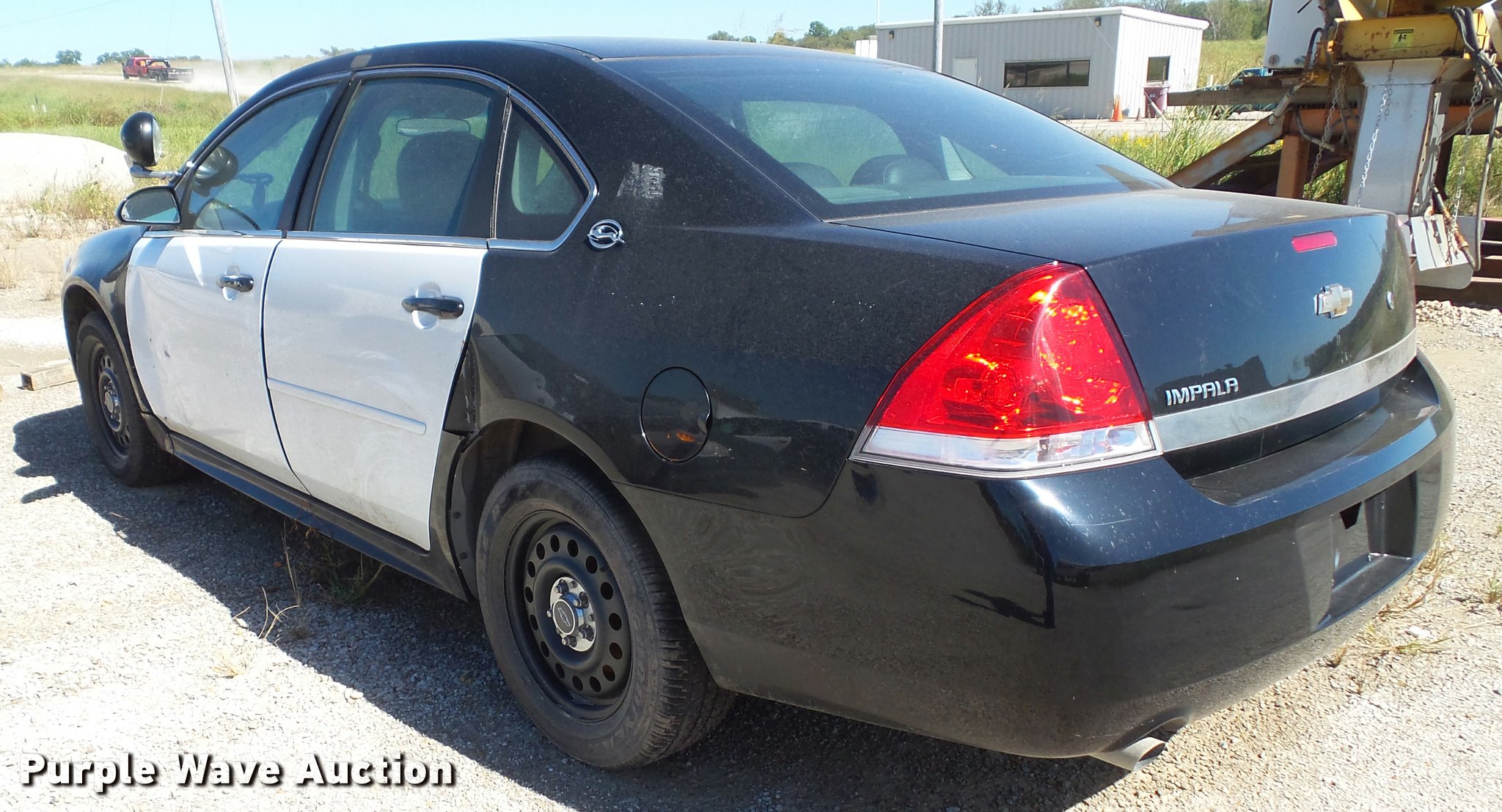 Purple Wave is selling a used Passenger Vehicle in Kansas. This item is a 2009 Chevrolet Impala Police with the following: 156,283 miles on odometer, 3.6L V6 DOHC 16V FFV gas engine, Automatic transmission, AC and heat, Tilt, Cruise, AM/FM/CD, Power windows, locks, mirrors, and seats, Cloth front interior, Vinyl rear interior, Cage divider, Center console, Spotlights, 225/60R16 tires, Dead battery, Holes in roof from equipment
