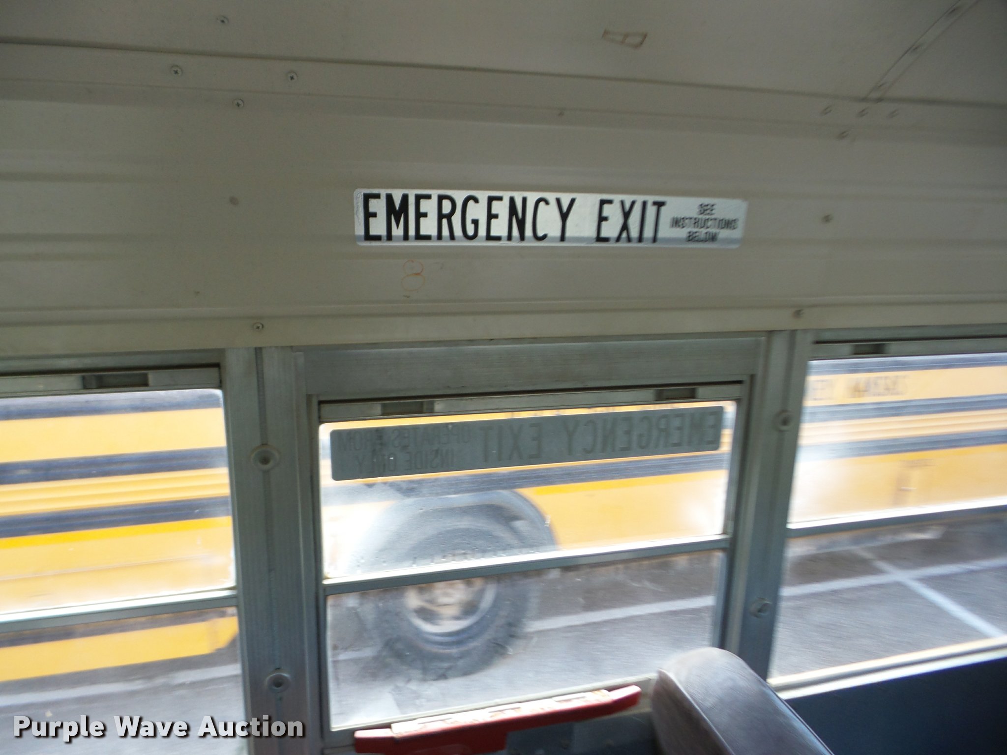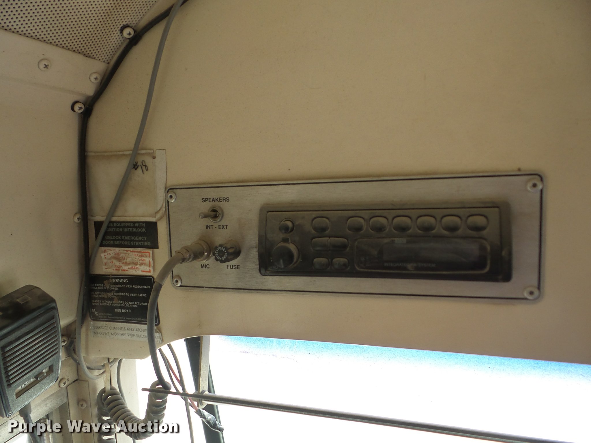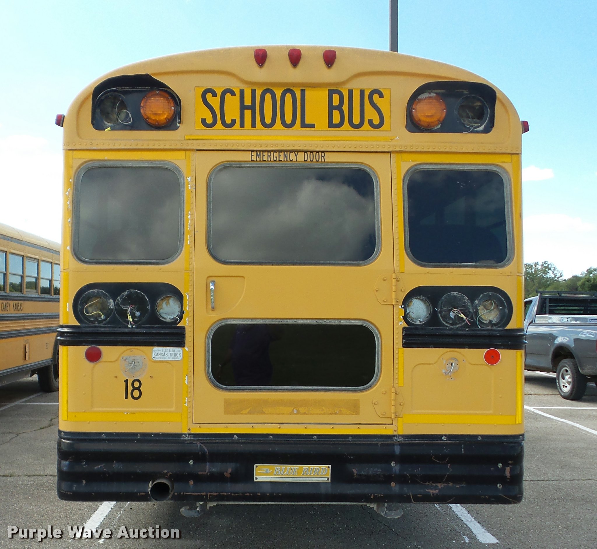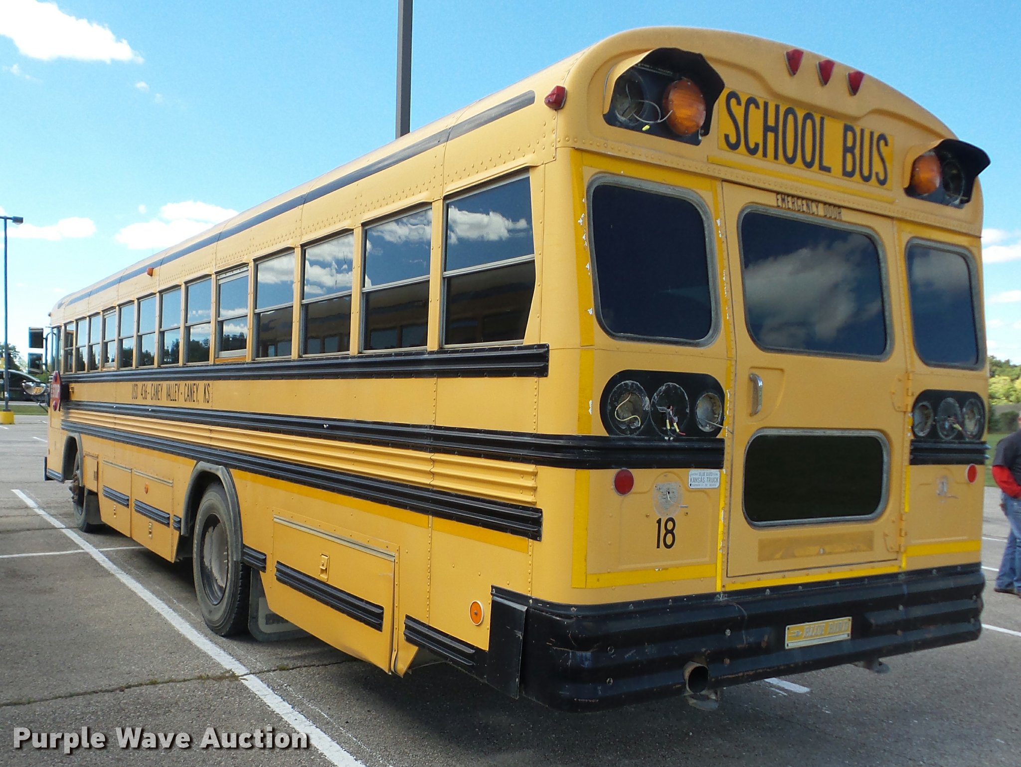 Purple Wave is selling a used Bus in Kansas. This item is a 1997 Blue Bird TC2000 school bus with the following: 181,898 miles on odometer, Cummins ISB 5.9L L6 turbo diesel engine, Allison automatic transmission, Single axle, Heat, AM/FM, Suspension seat, 66 passenger capacity, Ceiling, front, rear, and side emergency egress, Stop sign, Spring suspension, Hydraulic brakes, 10R22.5 tires, GVWR 27,800 lbs, No taillights, Unit# 18