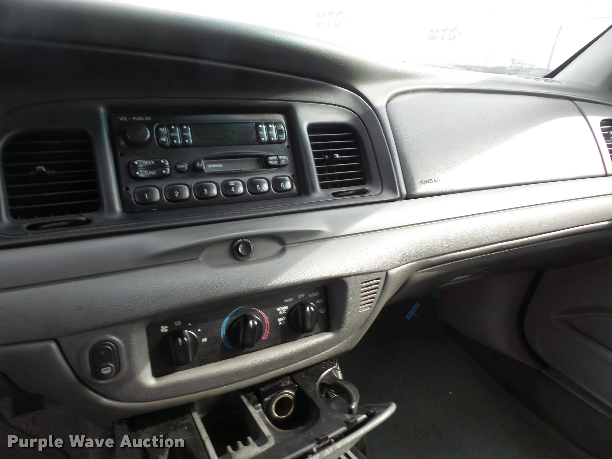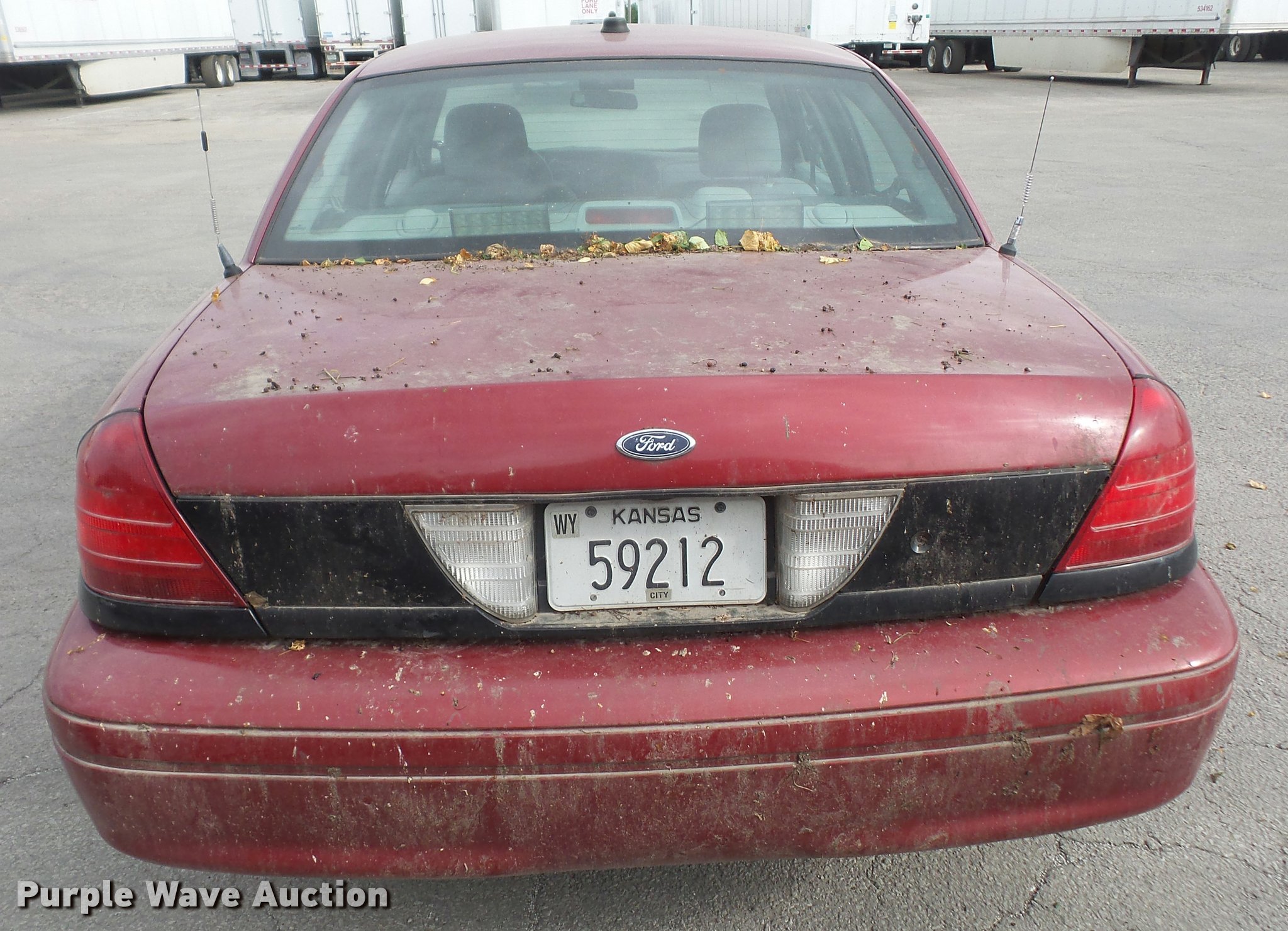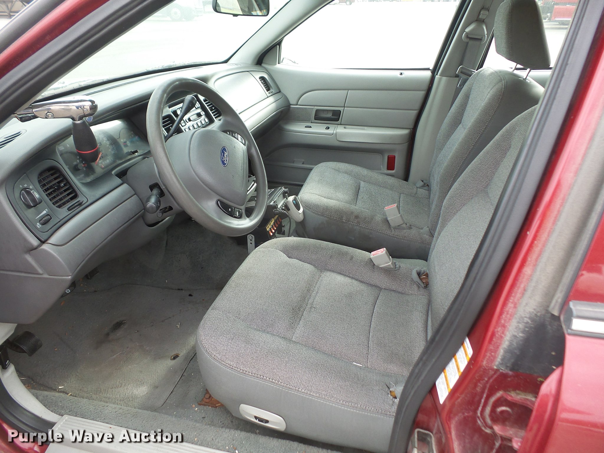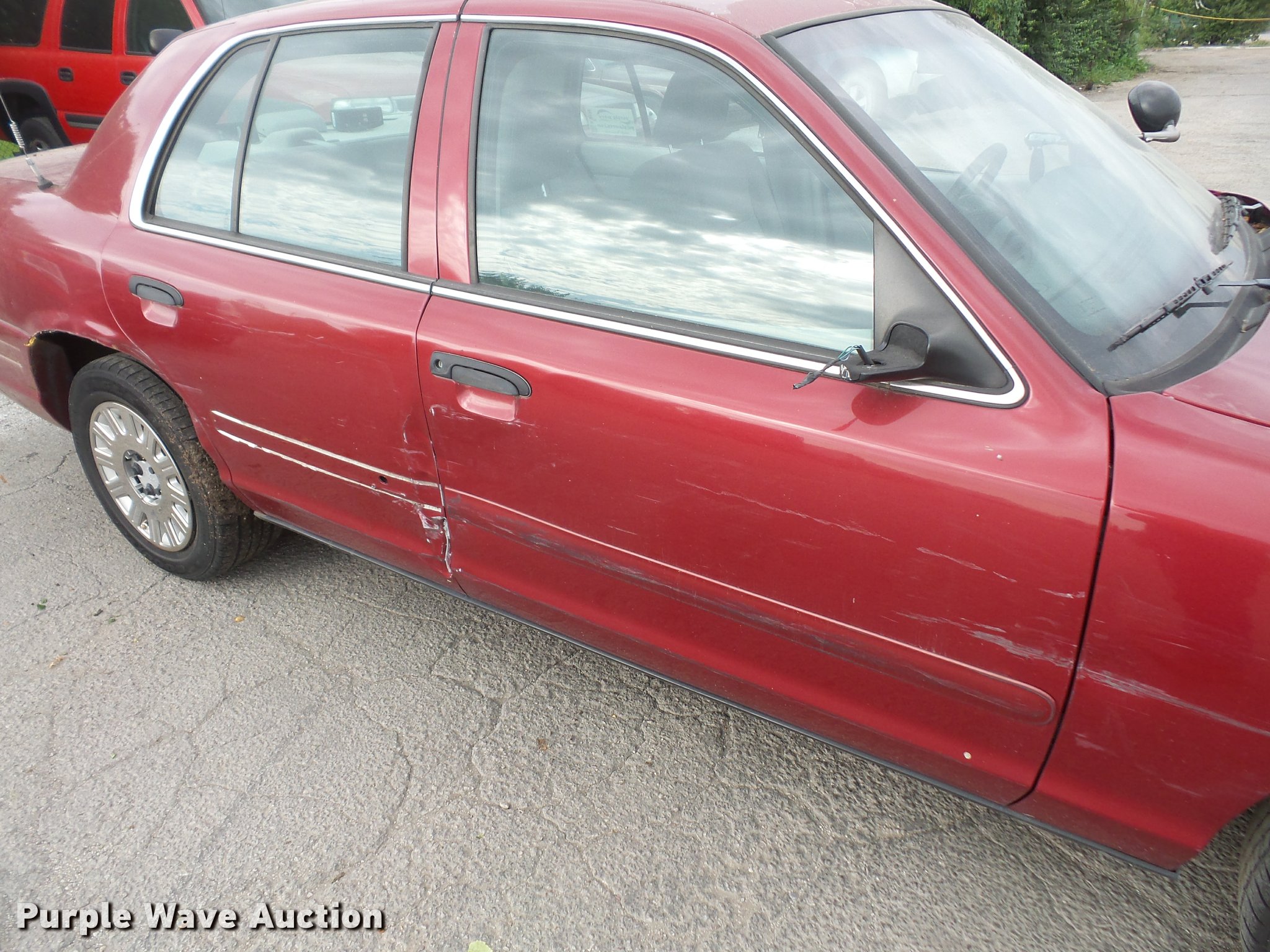 Purple Wave is selling a used Passenger Vehicle in Kansas. This item is a 2003 Ford Crown Victoria Police Interceptor with the following: 162,125 miles on odometer, 4.6L V8 SOHC 16V gas engine, Automatic transmission, AC and heat, Tilt, Cruise, AM/FM/cassette, Power windows, locks, mirrors, and seat, Cloth interior, 225/60R16 tires, Dead battery, Radio and light equipment will be removed prior to auction, Right side damage, Mirror missing