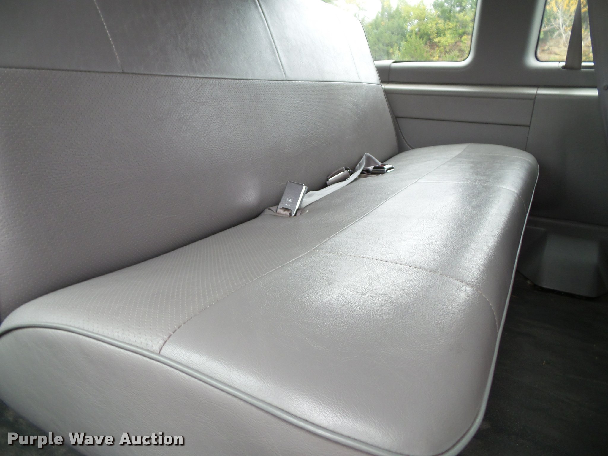 1997 Ford Club Wagon van. 53,332 miles on odometer, 5.4L V8 SOHC 16V gas engine, Automatic transmission, AC and heat, Tilt, Cruise, AM/FM, Power windows and locks, Vinyl interior, Backup alarm, Running boards, 245/75R16 tires, Service engine light on, Possible vacuum leak, Unit# MNH1804. Kansas title. 1FBJS31L0VHB23822. Johnson County. 1810 W Old Hwy 56. Olathe, KS 66061
