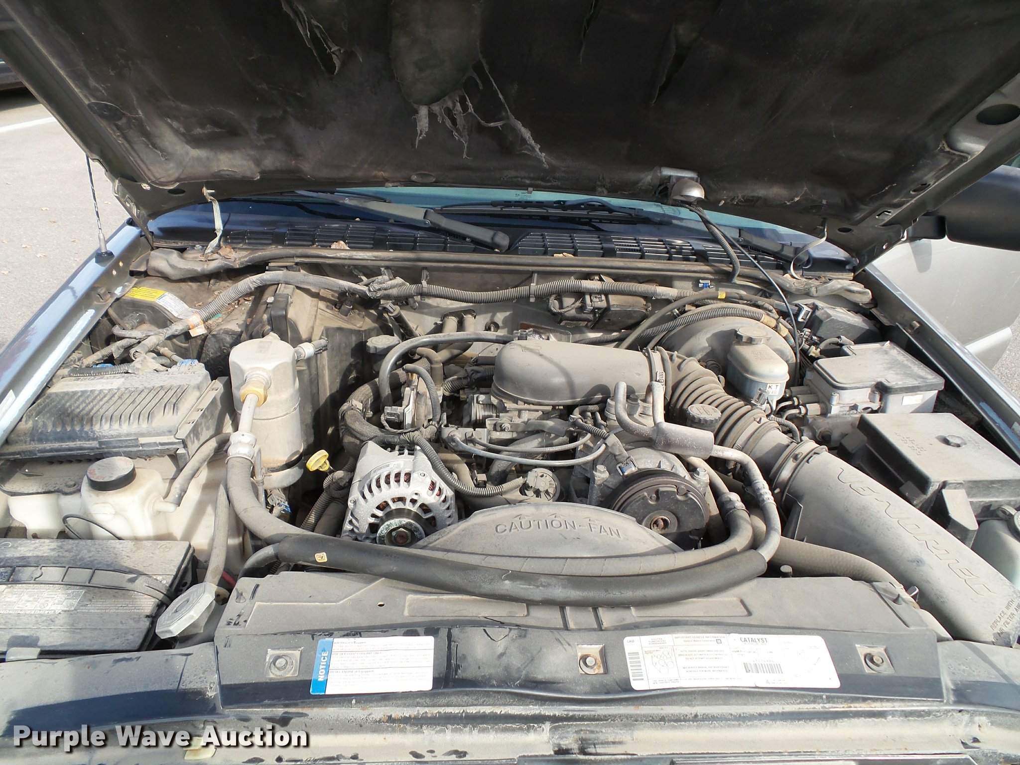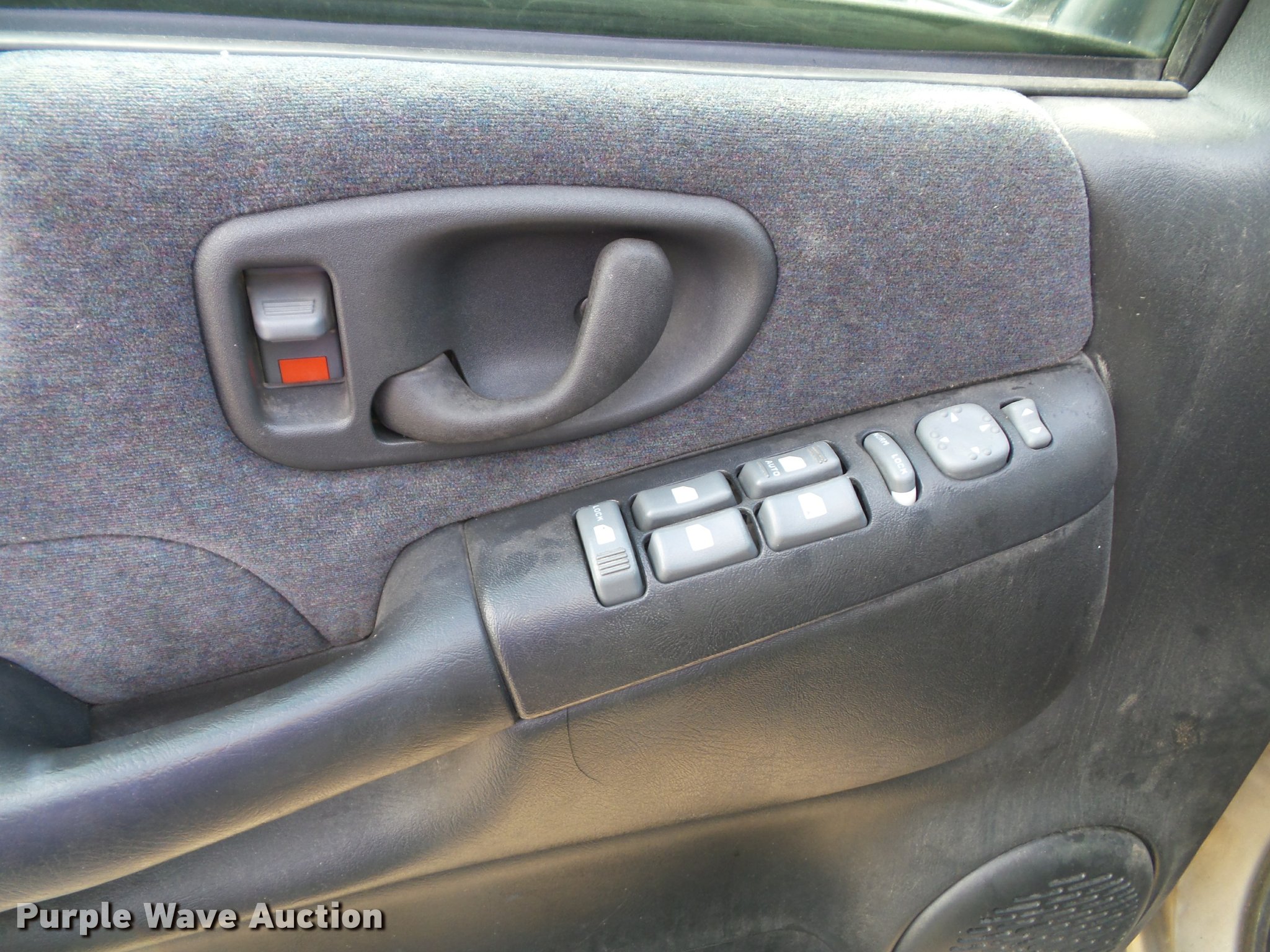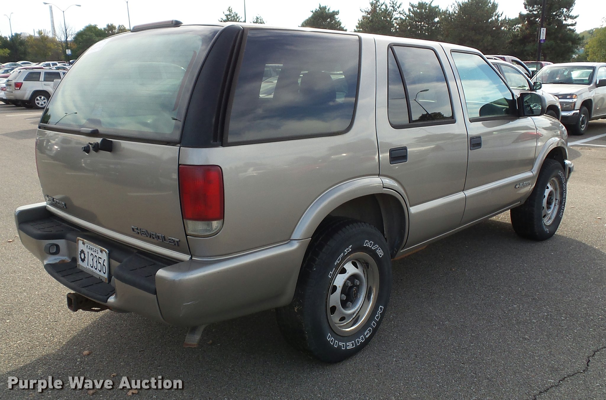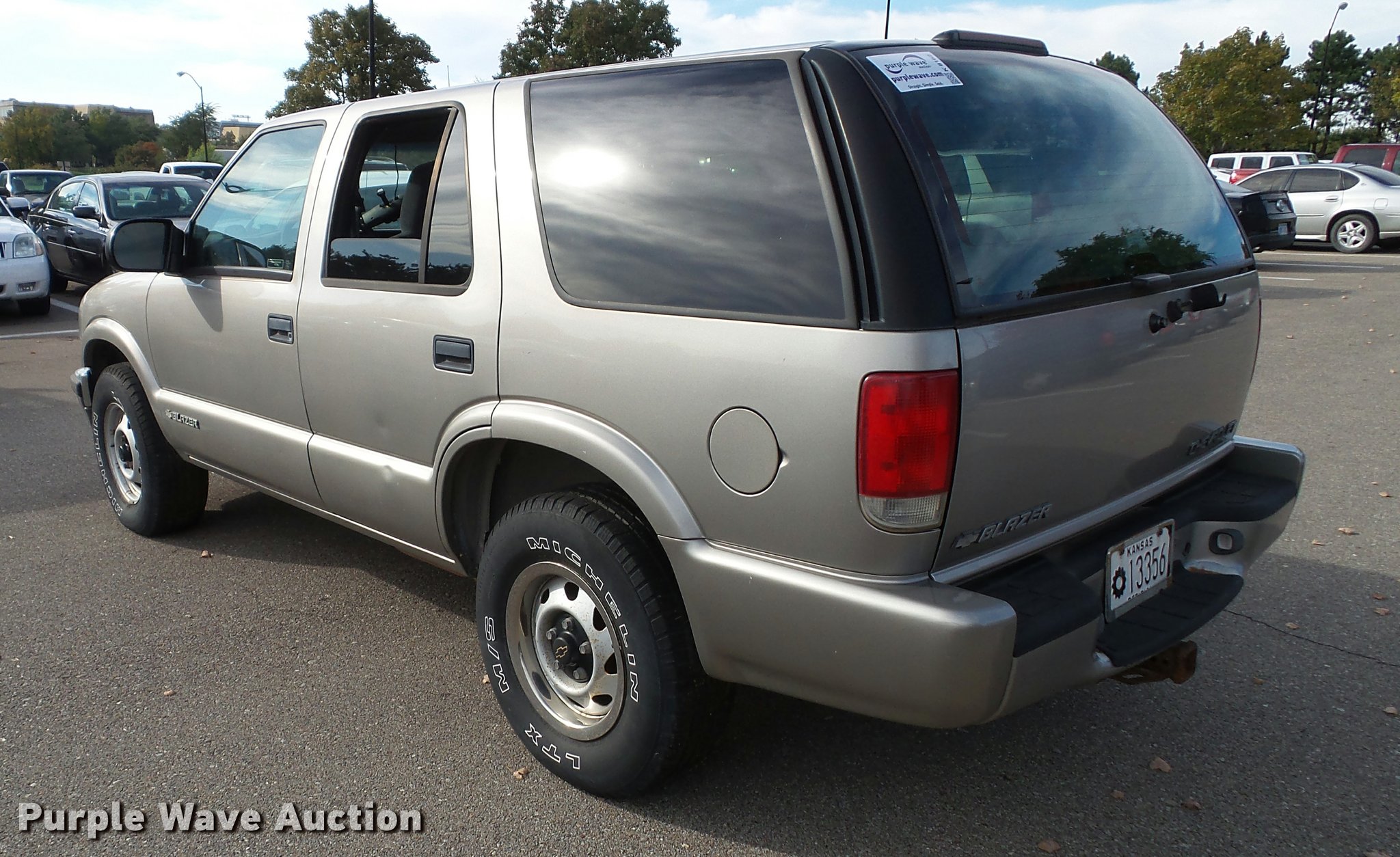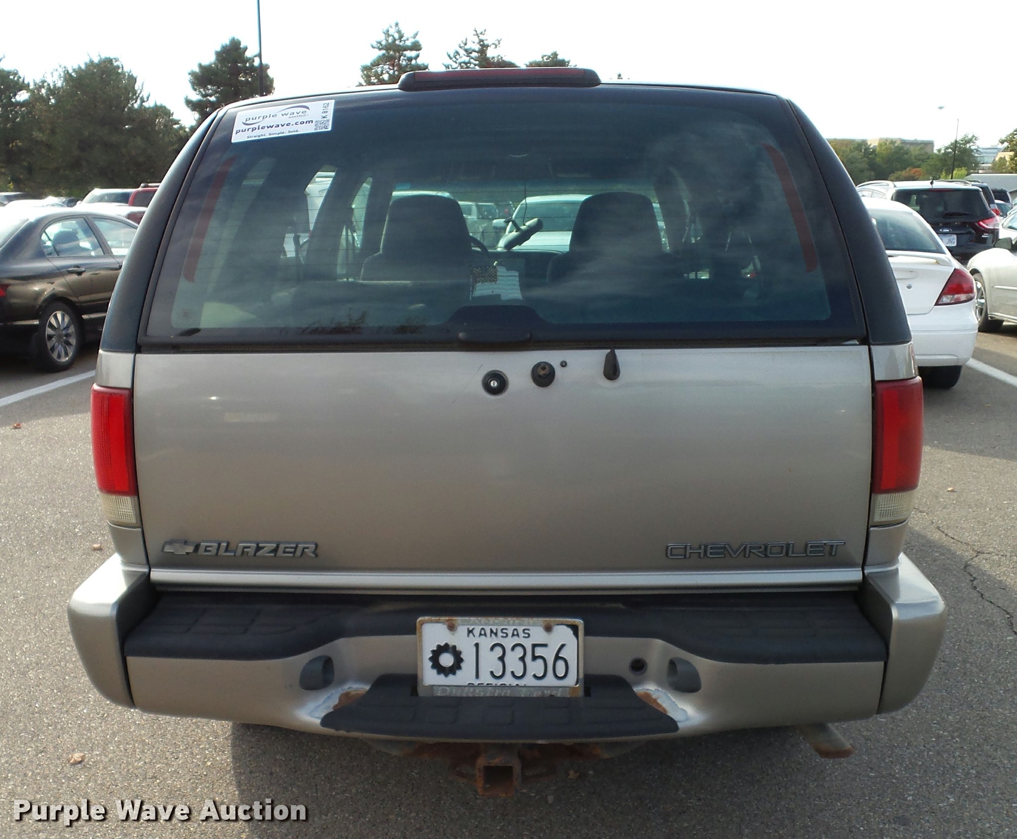 Purple Wave is selling a used Passenger Vehicle in Kansas. This item is a 1999 Chevrolet Blazer SUV with the following: 158,969 miles on odometer, 4.3L V6 OHV 12V gas engine, Automatic transmission, Four wheel drive, AC and heat, Tilt, AM/FM, Power windows, locks, and mirrors, Cloth interior, Heated mirrors, Front tow hooks, 235/75R15 tires, Unattached rear view mirror included, Rear hatch latch damaged, will not open, Dead battery, Unit will not stay running, Unit# 13356