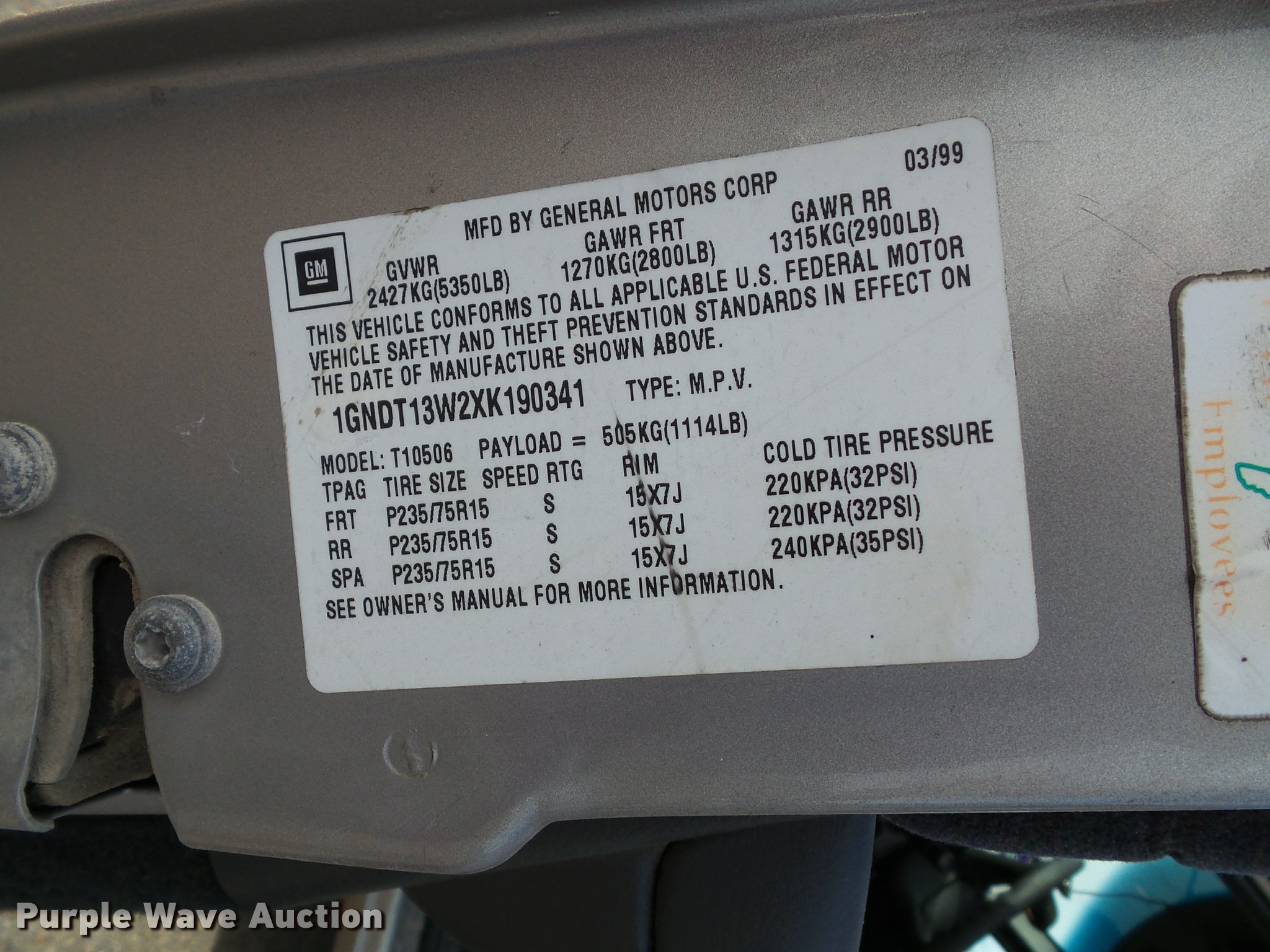 1GNDT13W2XK190341