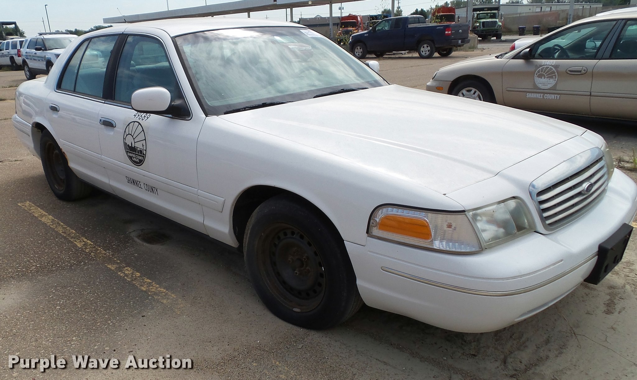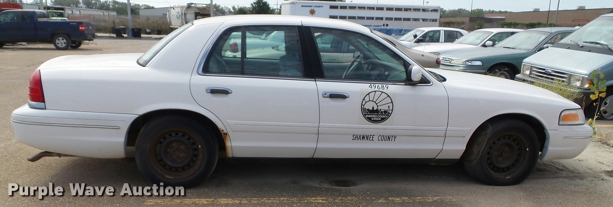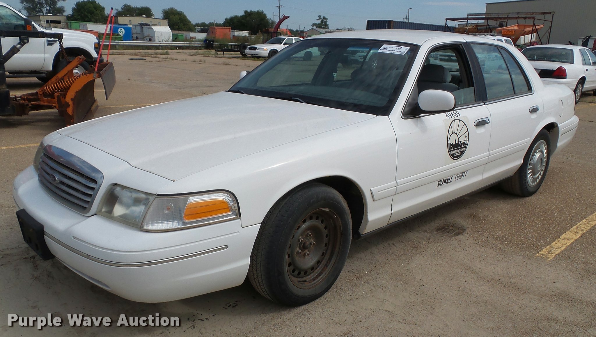 Purple Wave is selling a used Passenger Vehicle in Kansas. This item is a 1998 Ford Crown Victoria with the following: 128,939 miles on odometer, 4.6L V8 SOHC 16V gas engine, Automatic transmission, AC and heat, Tilt, Cruise, AM/FM/cassette, Power windows, locks, mirrors, and seat, Cloth interior, 225/60R16 tires, Front tires flat, Dead battery, Rust, Decals will be painted over