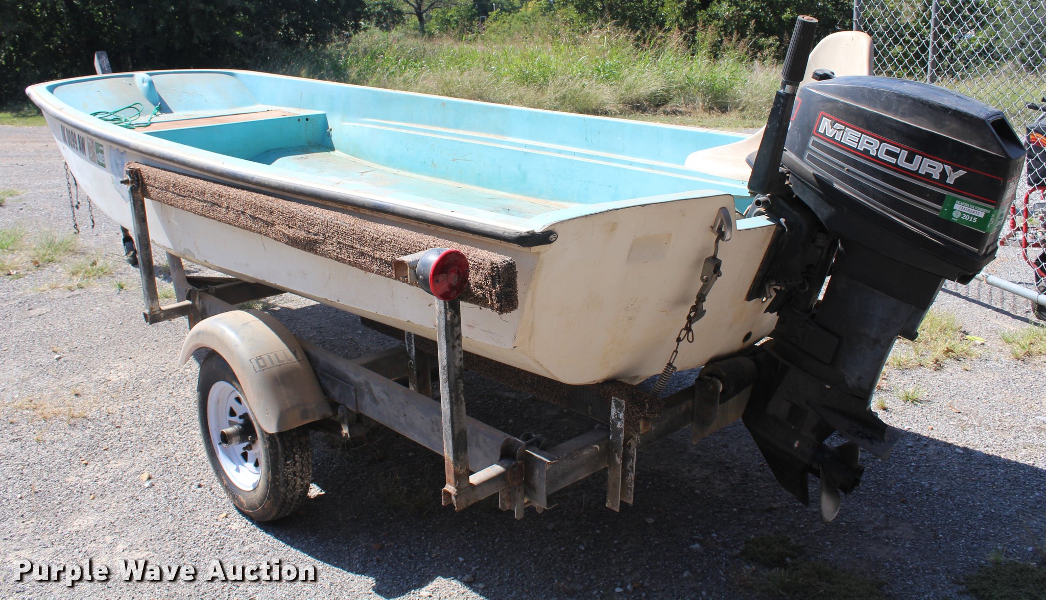 Purple Wave is selling a used Boat in Oklahoma. This item is a 1971 Boston Wahler boat with the following: 13'L, 1994 Mercury 25 HP outboard motor, Serial 0G170908, Unknown operating condition, Hull ID 2A7498, Boat trailer, 17'L, 2" ball hitch, 5.3-12 tires