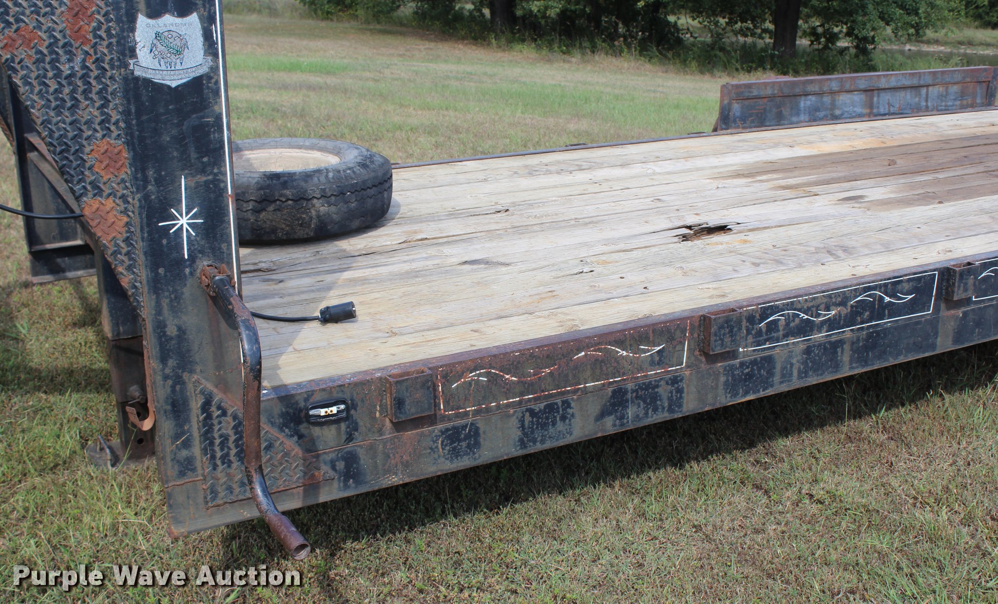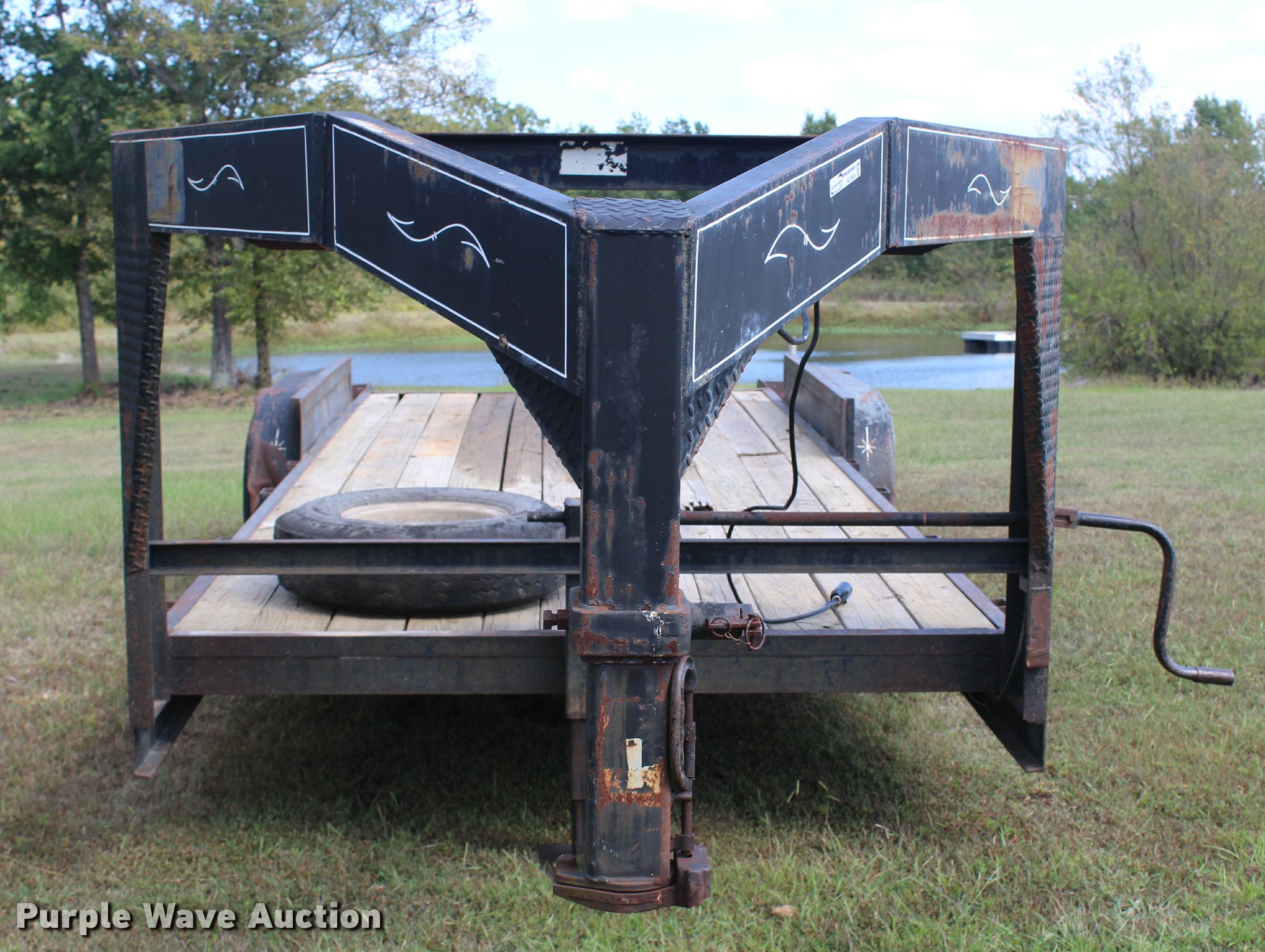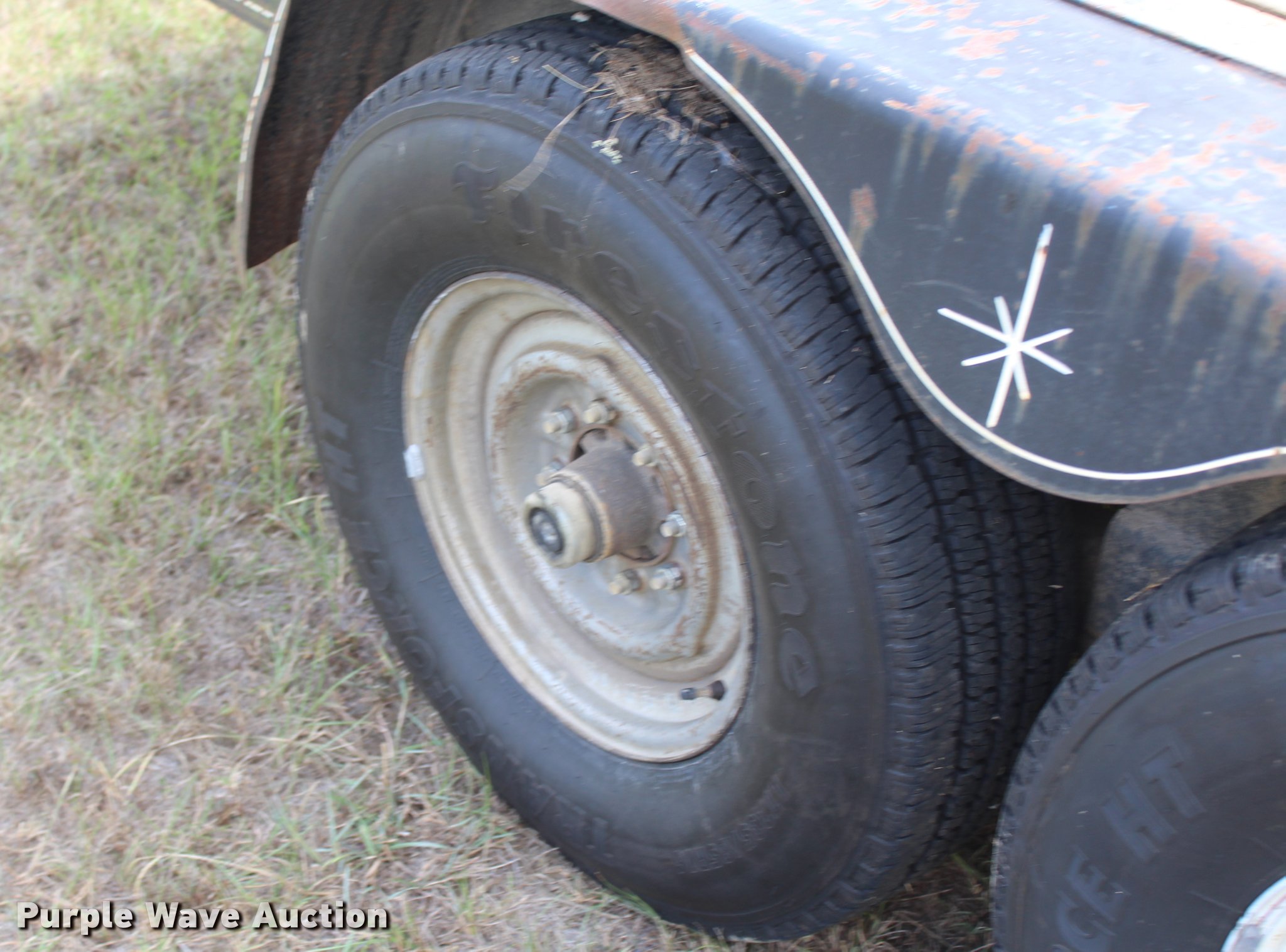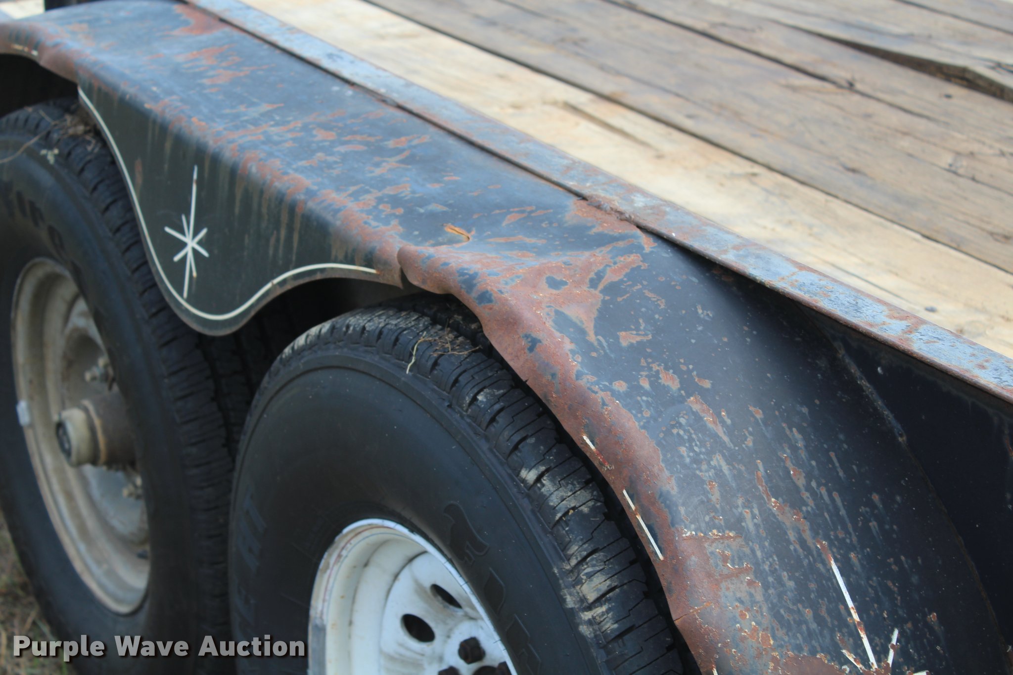 Purple Wave is selling a used Equip. Trailer in Oklahoma. This item is a 1993 Starlite equipment trailer with the following: 27'L x 7'W, 18'L deck, 2'L dovetail, 2' floor height, 5'L ramps, 7'L tongue to neck, Gooseneck hitch, Single leg landing gear, Spring suspension, Electric brakes, Tandem axle, 235/85R16 tires