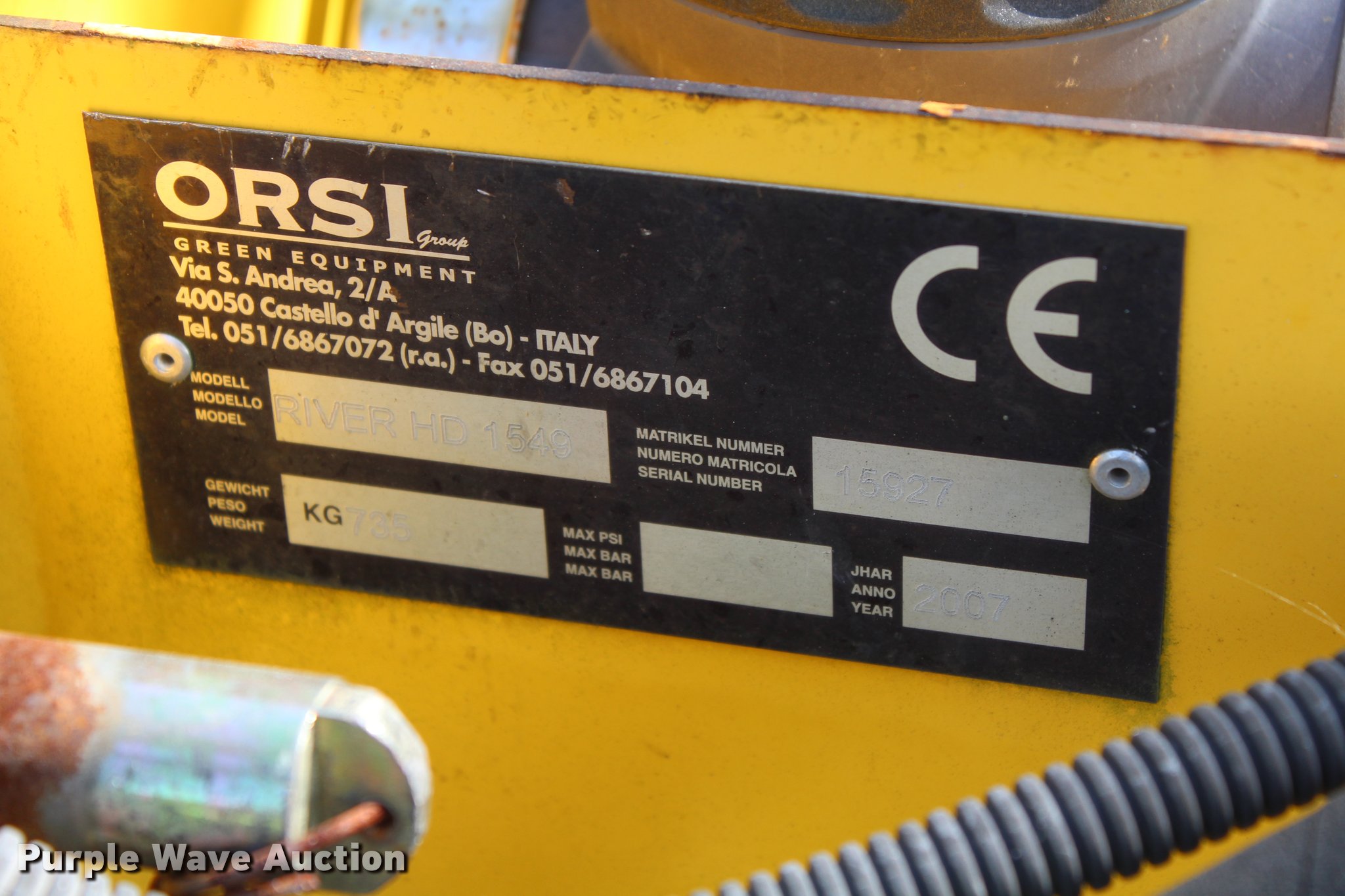 Purple Wave is selling a used Mower, Cutter, Shredder in Oklahoma. This item is a Orsi Diamond 1549 boom mower with the following: 94"L, 4'W cut, (4) hydraulic levers, 540 PTO, Unknown operating condition, Serial 15927