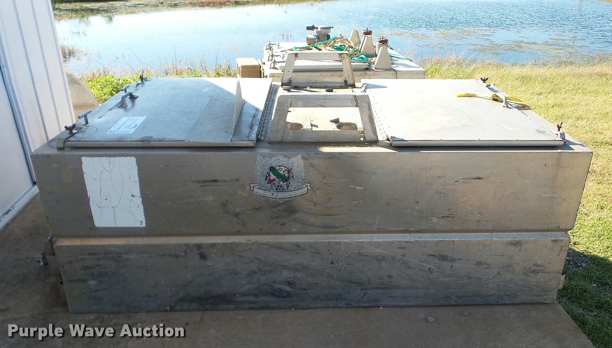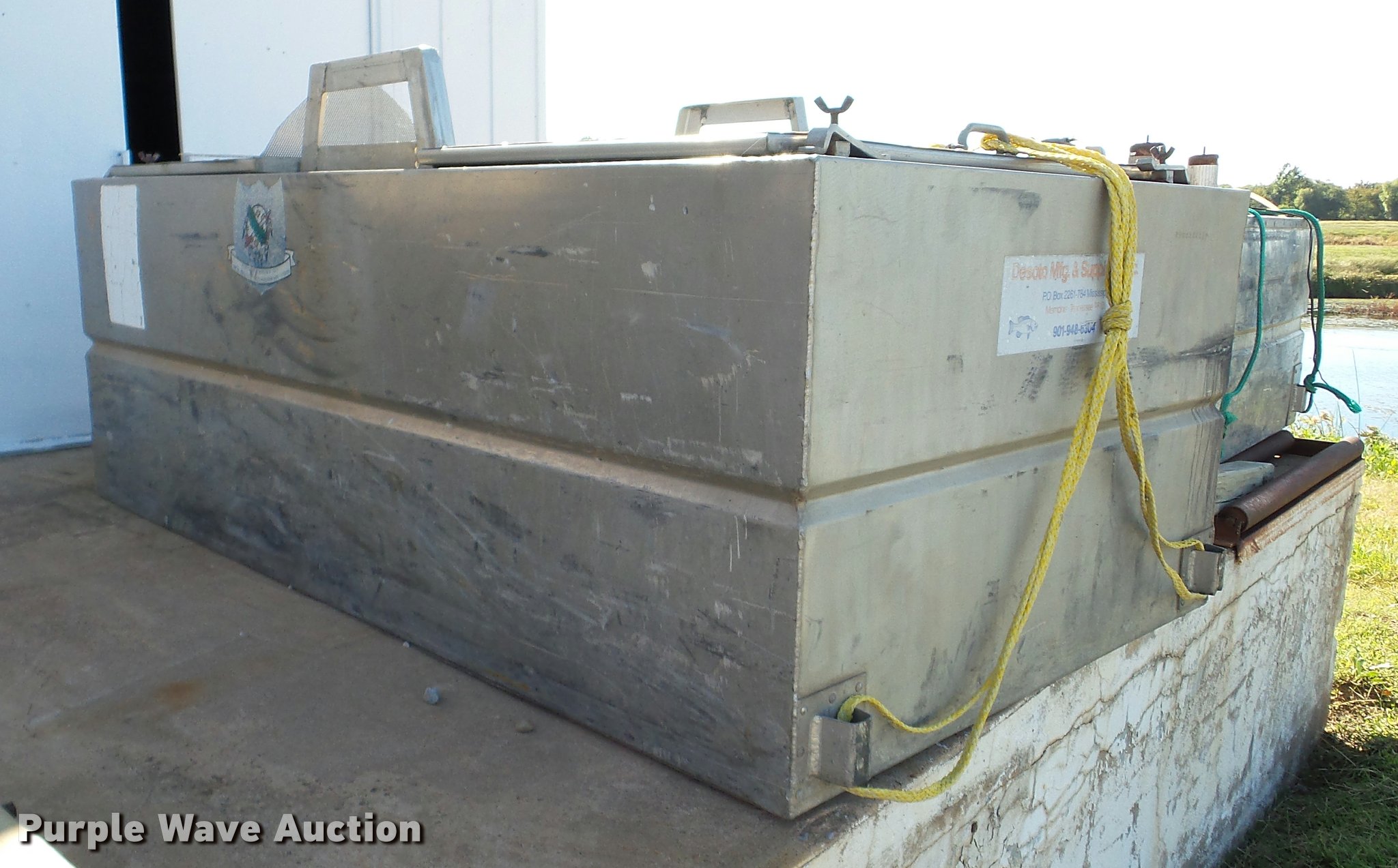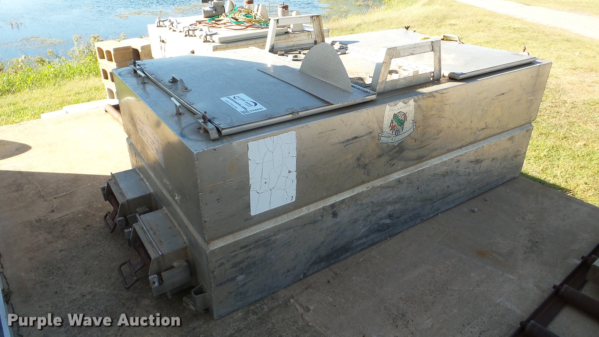 Purple Wave is selling a used Sporting Goods in Oklahoma. This item is a Duracraft PT-1391 fish hauling tank with the following: 7'L x 4'W, 250 gallon capacity, Aluminum construction, Leaks water, Center baffle is cracked, 100 gallon aquarium, 4'L x 19"W