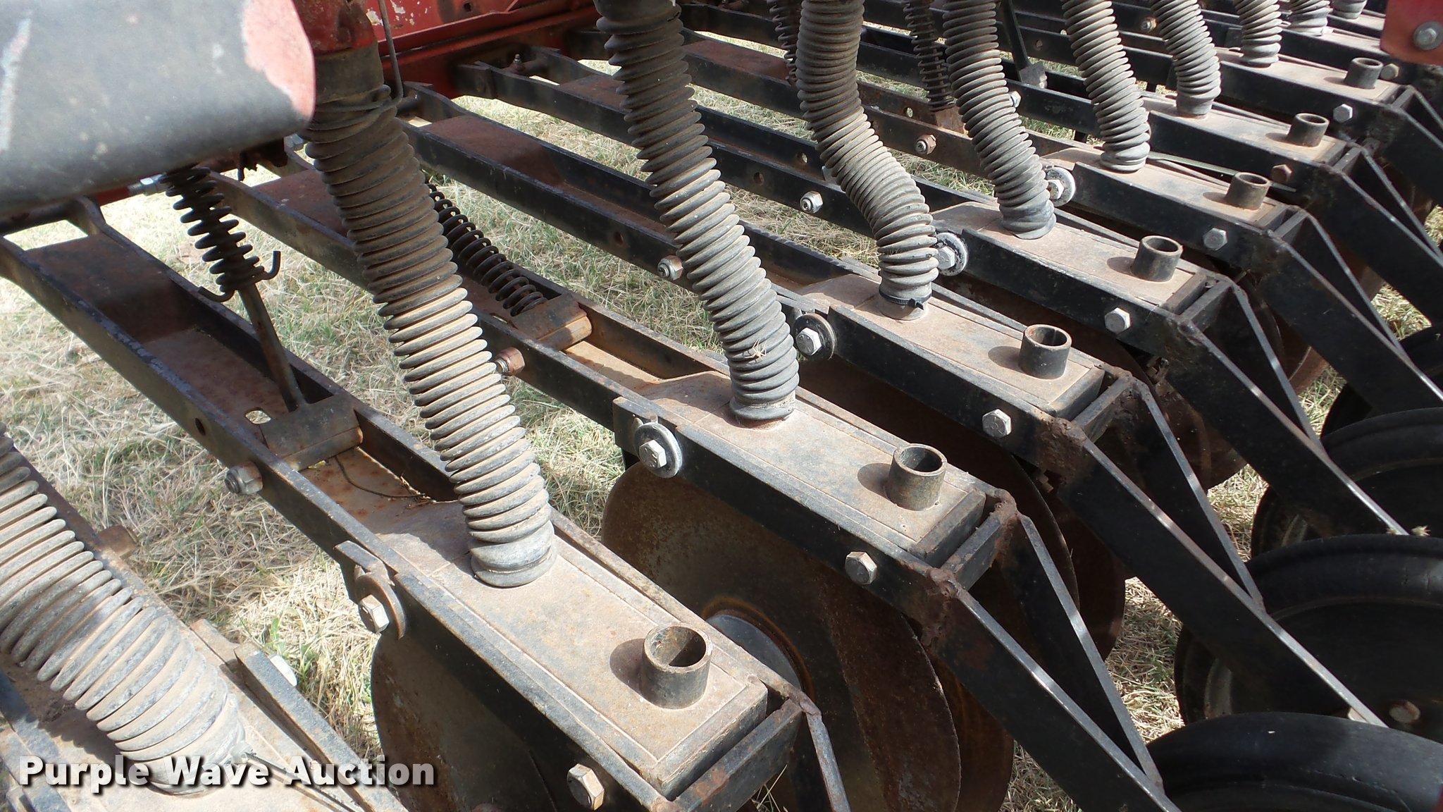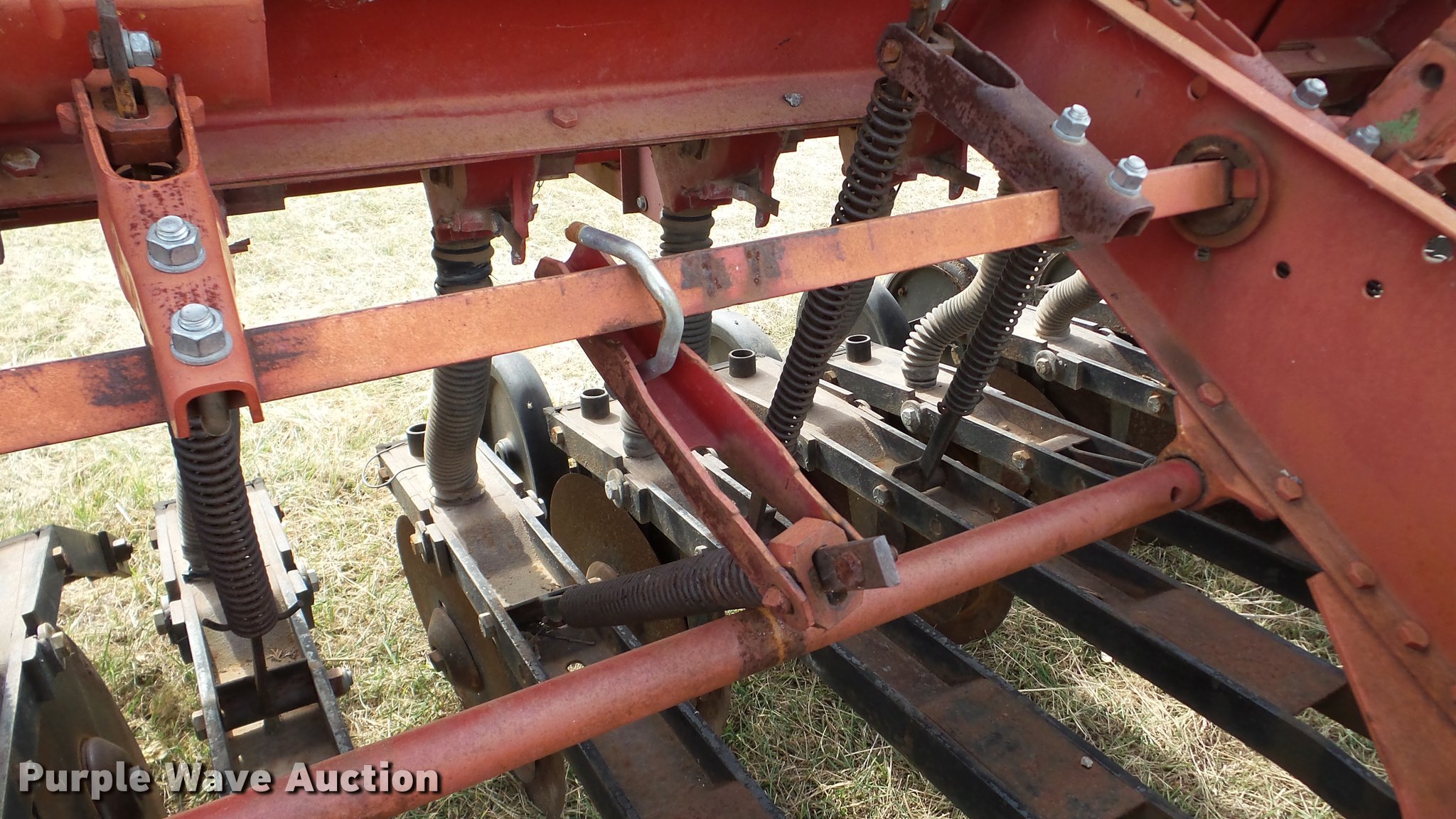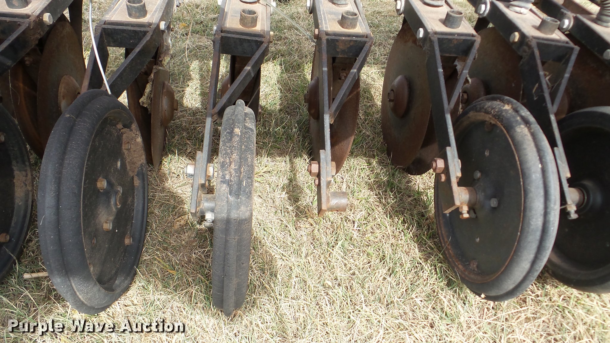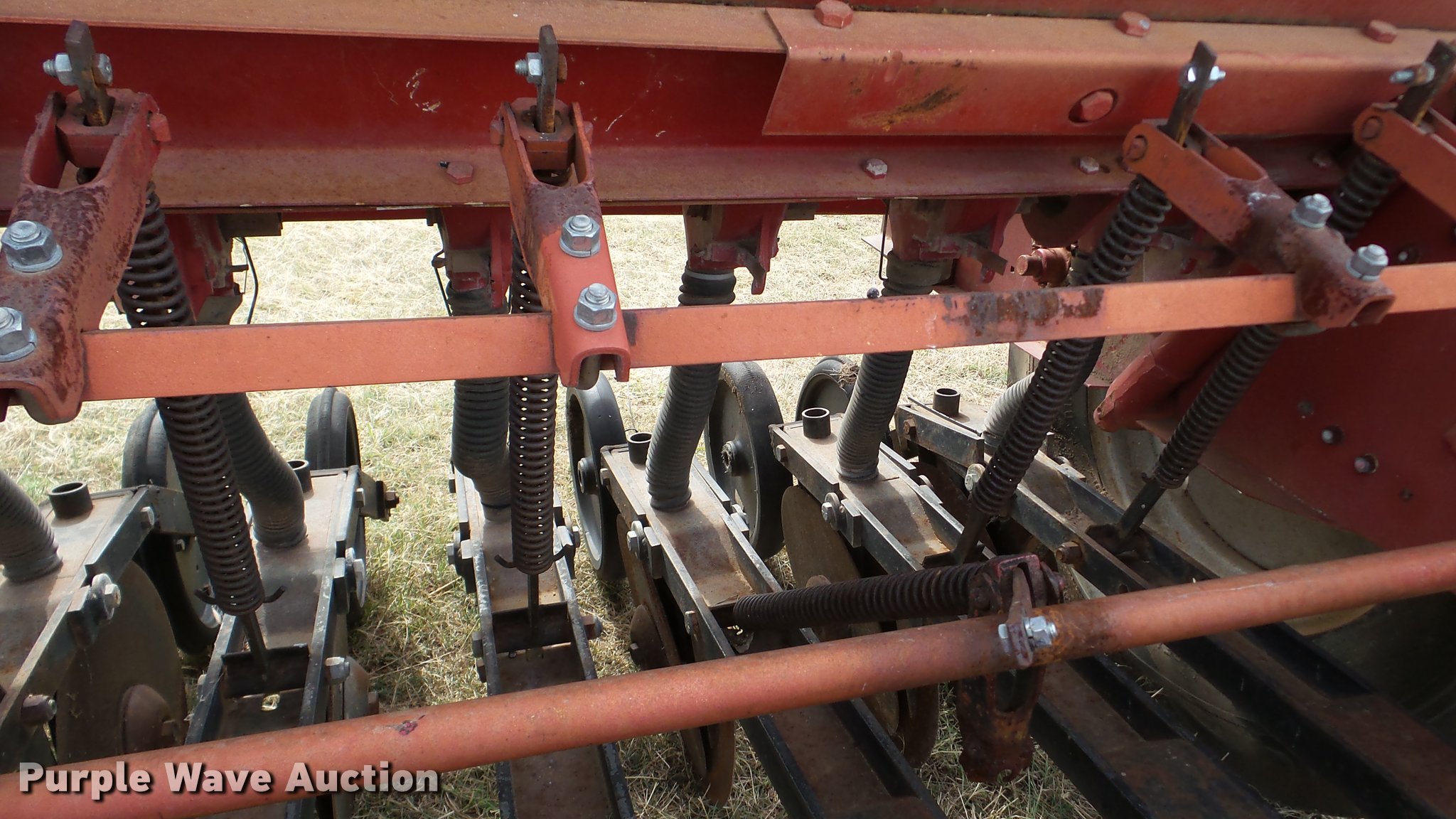Purple Wave is selling a used Grain Drill or Seeder in Oklahoma. This item is a International 510 grain drill with the following: 13'W overall, 10'W, 16 row units, 8" row spacing, Hydraulic lift, Pin hitch, 7.50-20 tires, Manual, Weld repairs, Some press wheels missing, Serial 001111