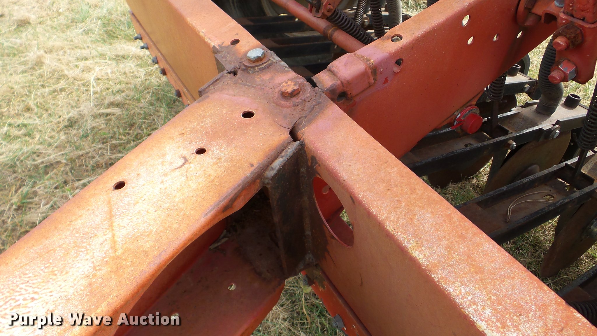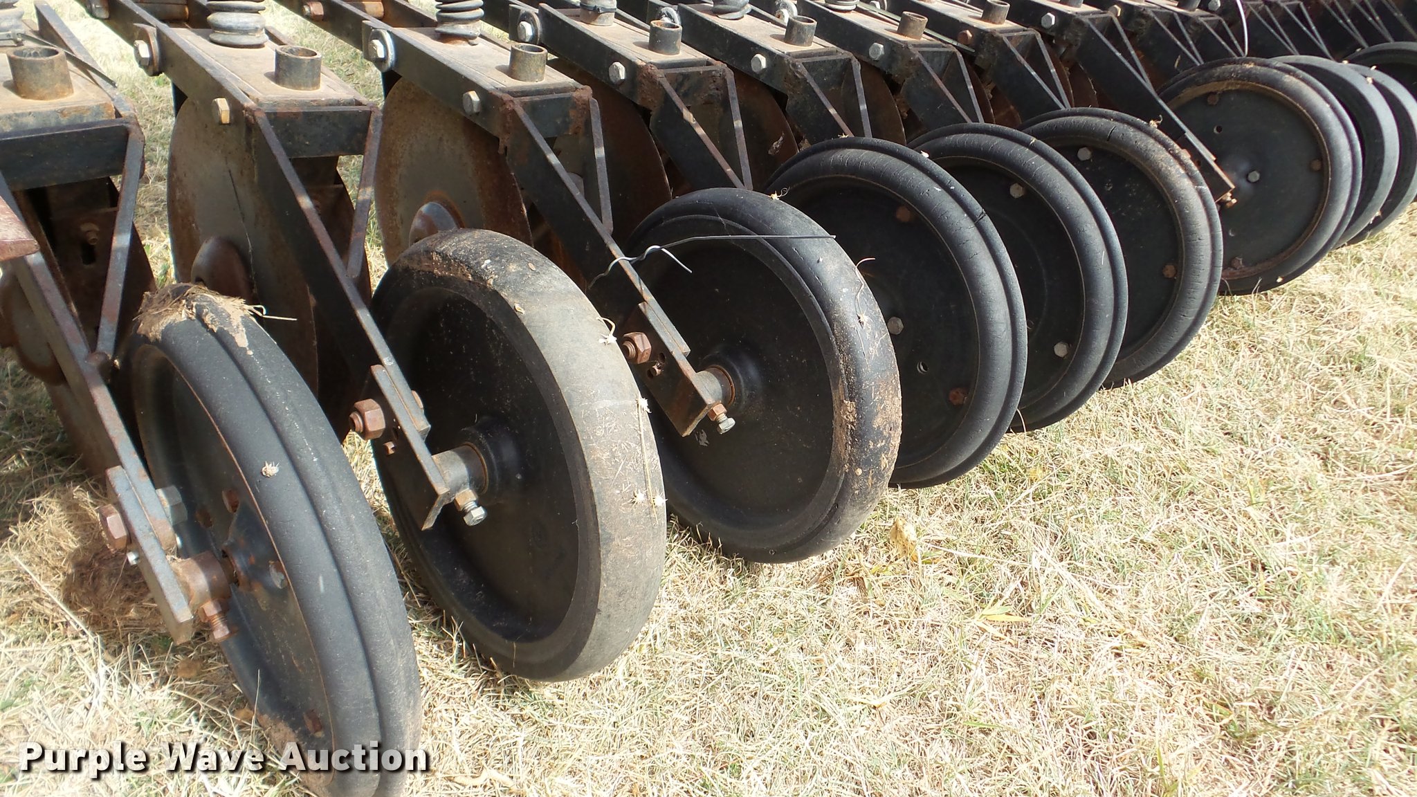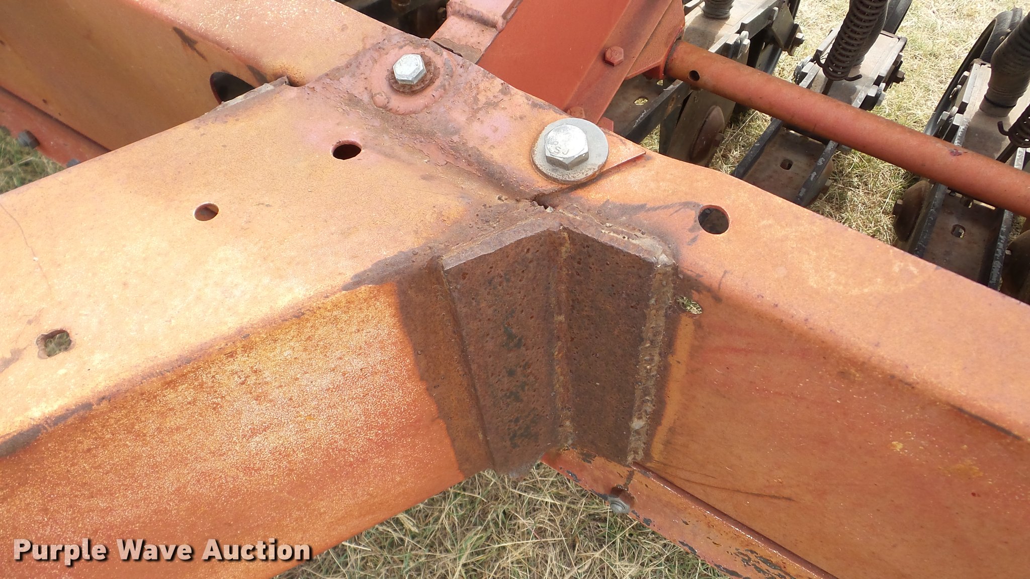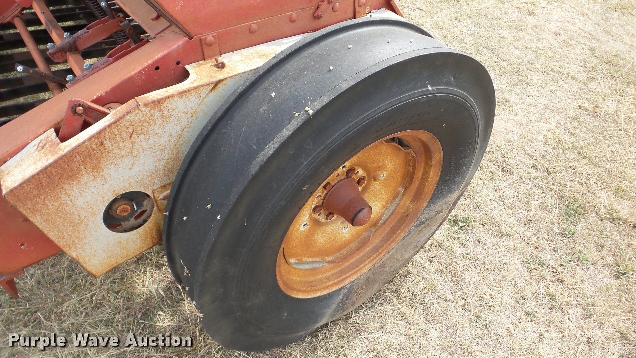 Purple Wave is selling a used Grain Drill or Seeder in Oklahoma. This item is a International 510 grain drill with the following: 13'W overall, 10'W, 16 row units, 8" row spacing, Hydraulic lift, Pin hitch, 7.50-20 tires, Manual, Weld repairs, Some press wheels missing, Serial 001111