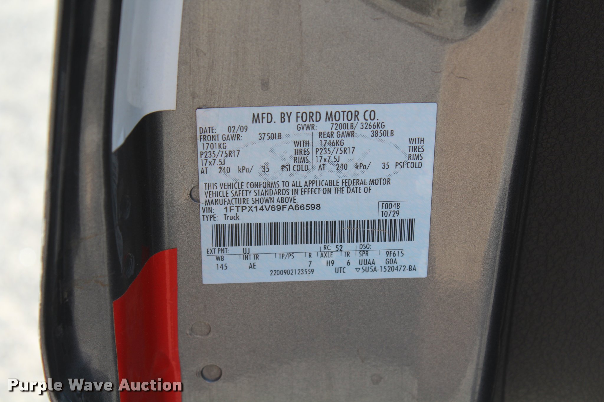Purple Wave is selling a used 1/2 Ton Pickup or Van in Oklahoma. This item is a 2009 Ford F150 XL SuperCab pickup truck with the following: 143,486 miles on odometer, 5.4L V8 SOHC 24V FFV gas engine, Automatic transmission, Four wheel drive, AC and heat, Tilt, Cruise, AM/FM, Power windows, locks, and mirrors, Vinyl interior, Spotlight, Ranch Hand grill guard, Toolbox, Receiver hitch, Trailer wiring, 265/70R17 tires, Driver's seat torn