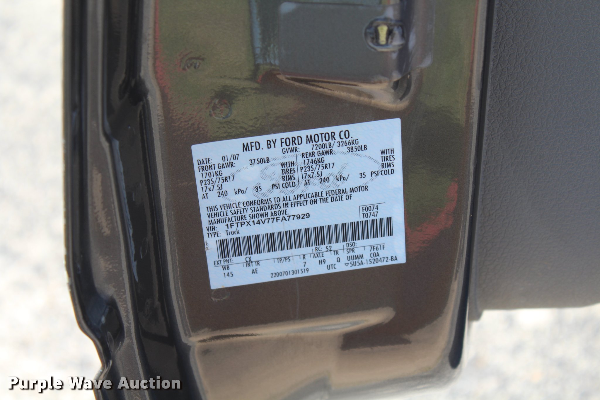 Purple Wave is selling a used 1/2 Ton Pickup or Van in Oklahoma. This item is a 2007 Ford F150 SuperCab pickup truck with the following: 116,578 miles on odometer, 5.4L V8 SOHC 24V FFV gas engine, Automatic transmission, Four wheel drive, AC and heat, Tilt, Cruise, AM/FM, Power windows, locks, and mirrors, Vinyl interior, Spotlight, Receiver hitch, Trailer wiring, 265/70R17 tires, Driver's seat torn, Cracked windshield