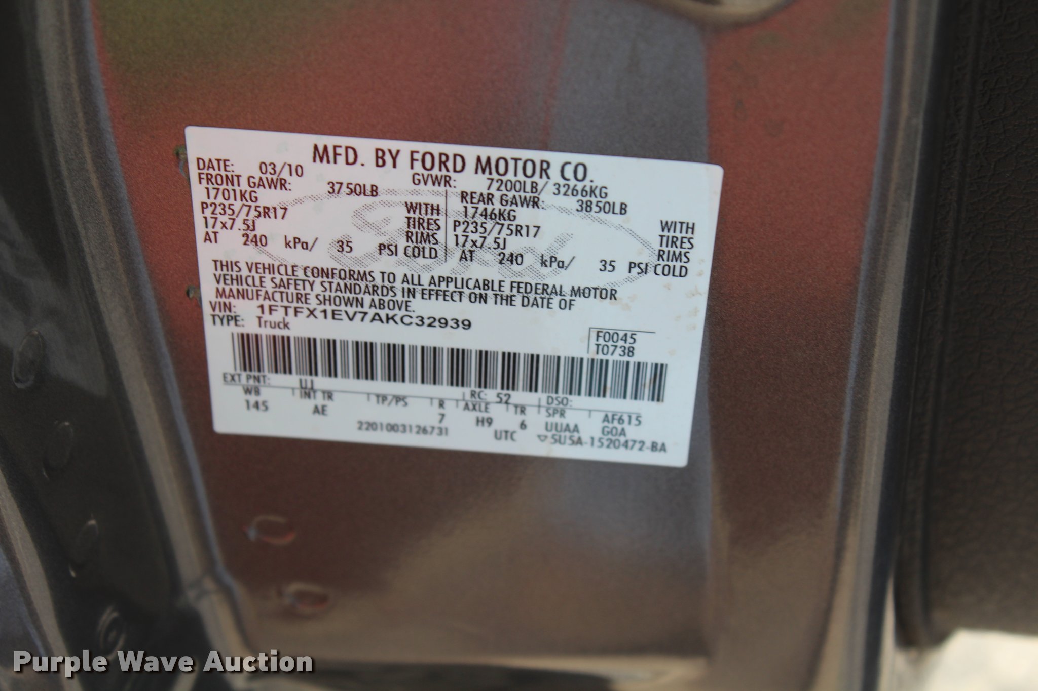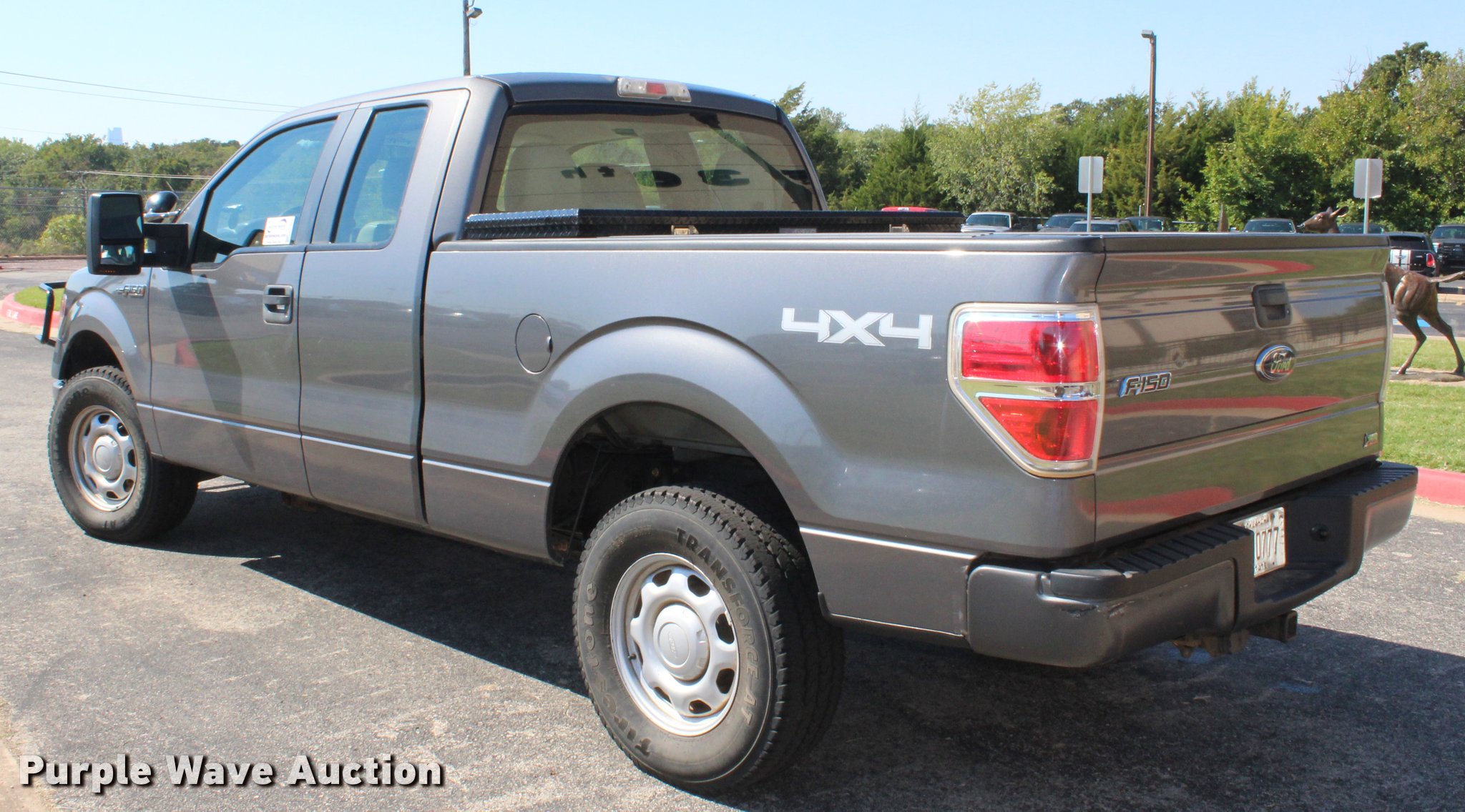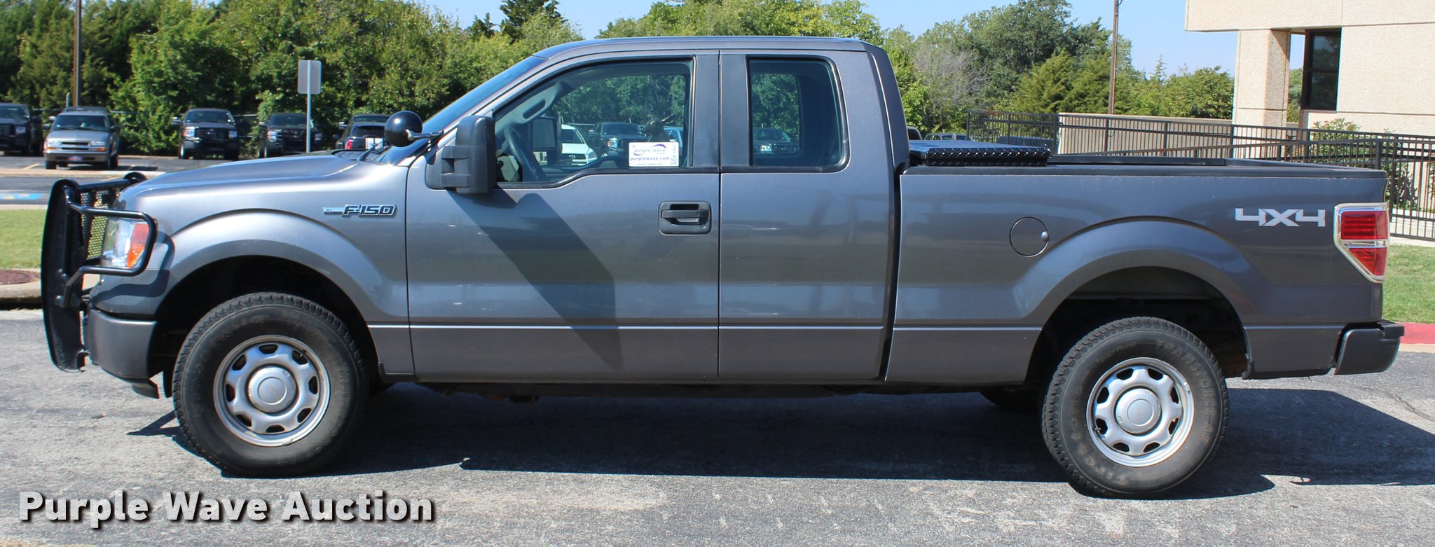 Purple Wave is selling a used 1/2 Ton Pickup or Van in Oklahoma. This item is a 2010 Ford F150 XL SuperCab pickup truck with the following: 123,367 miles on odometer, 5.4L V8 SOHC 24V FFV gas engine, Automatic transmission, Four wheel drive, AC and heat, Tilt, Cruise, AM/FM, Power windows, locks, and mirrors, Vinyl interior, Spotlight, Ranch Hand grill guard, Toolbox, Receiver hitch, Trailer wiring, 265/70R17 tires, Check engine light illuminated, Triggered due to missing gas cap