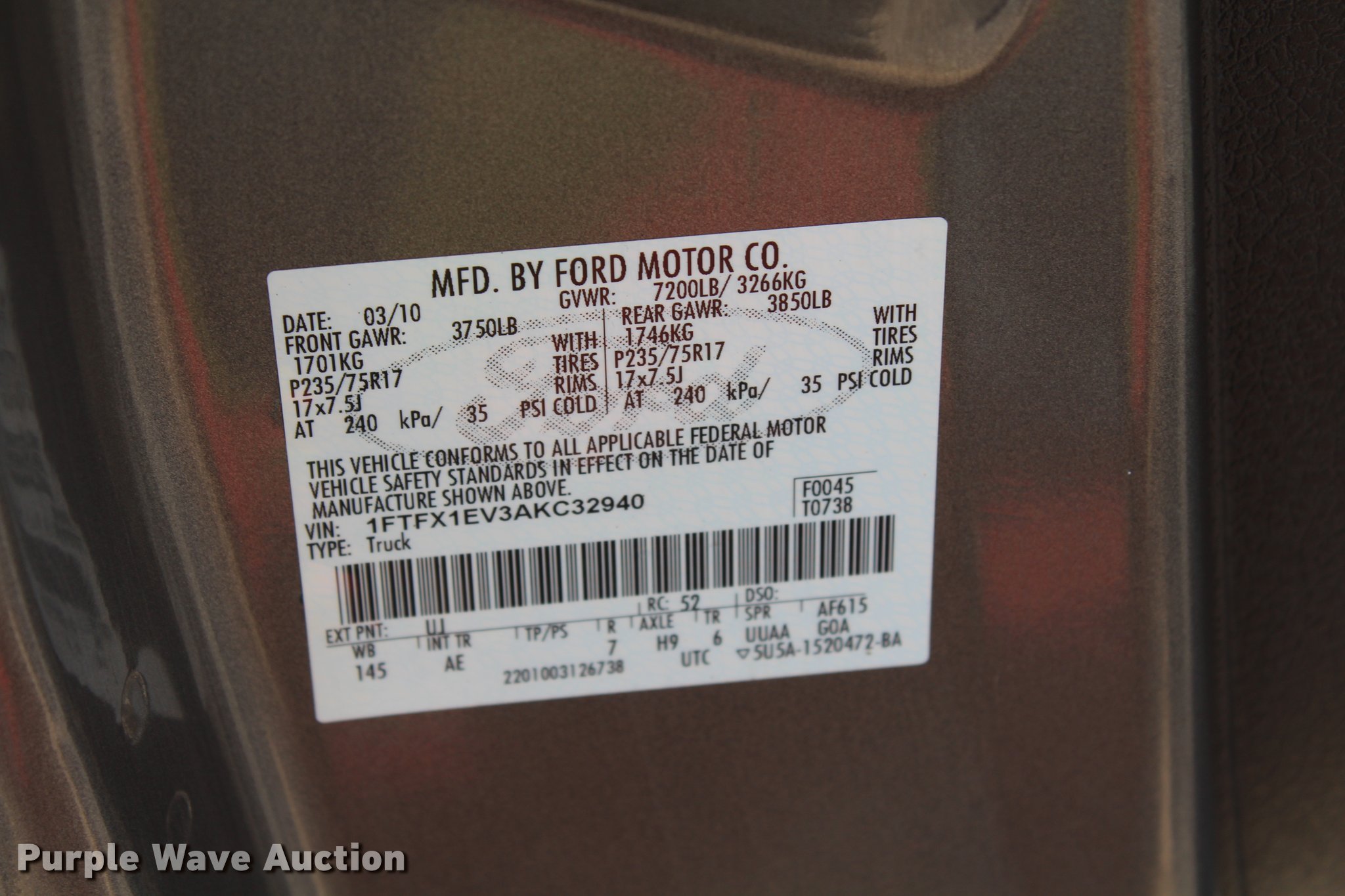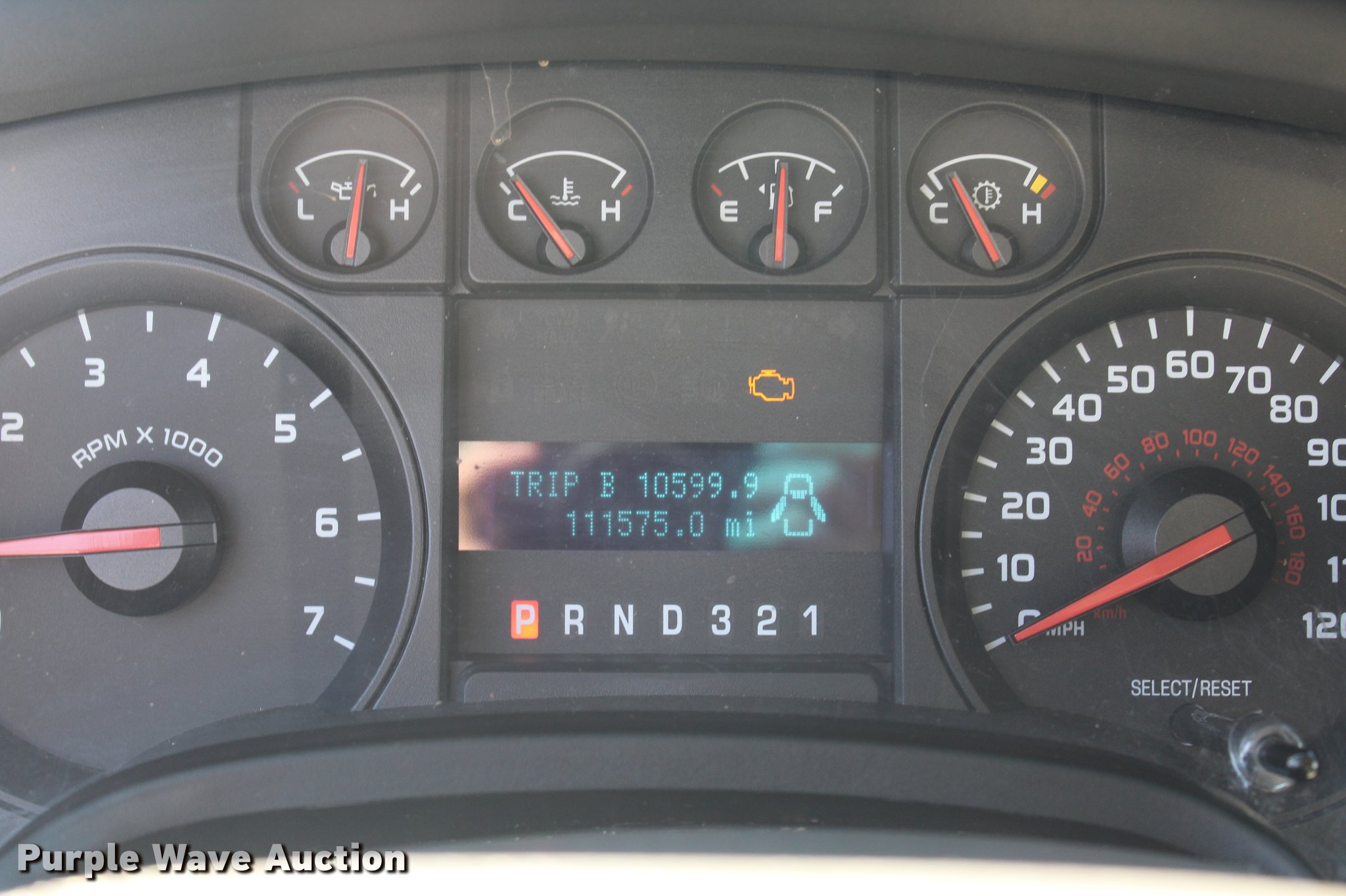 Purple Wave is selling a used 1/2 Ton Pickup or Van in Oklahoma. This item is a 2010 Ford F150 XL SuperCab pickup truck with the following: 111,574 miles on odometer, 5.4L V8 SOHC 24V FFV gas engine, Automatic transmission, Four wheel drive, AC and heat, Tilt, Cruise, AM/FM, Power windows, locks, and mirrors, Vinyl interior, Spotlight, Ranch Hand grill guard, Toolbox, Receiver hitch, Trailer wiring, 265/70R17 tires, Wheel bearings worn, Exhaust leak, Check engine light illuminated, Triggered due to missing gas cap