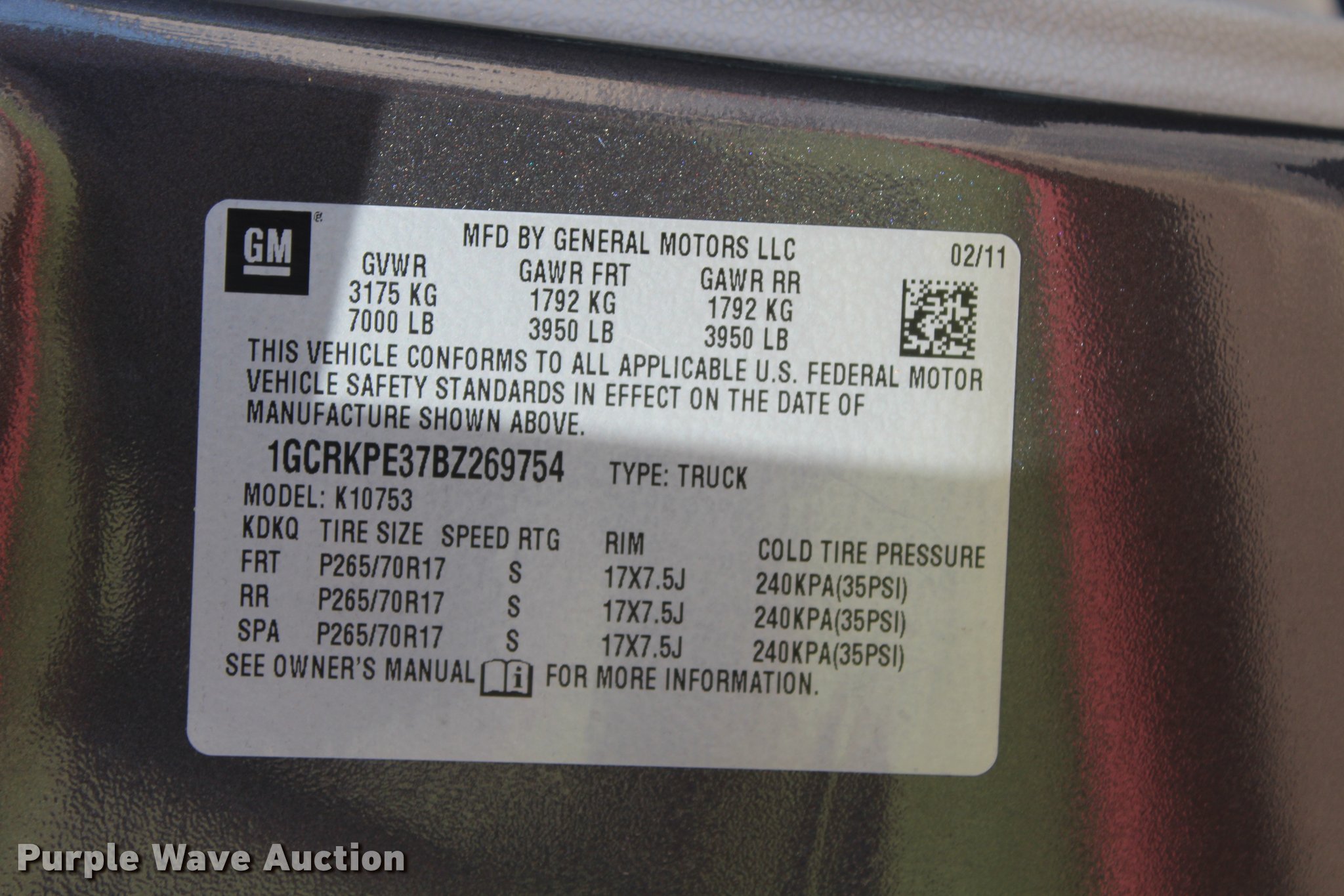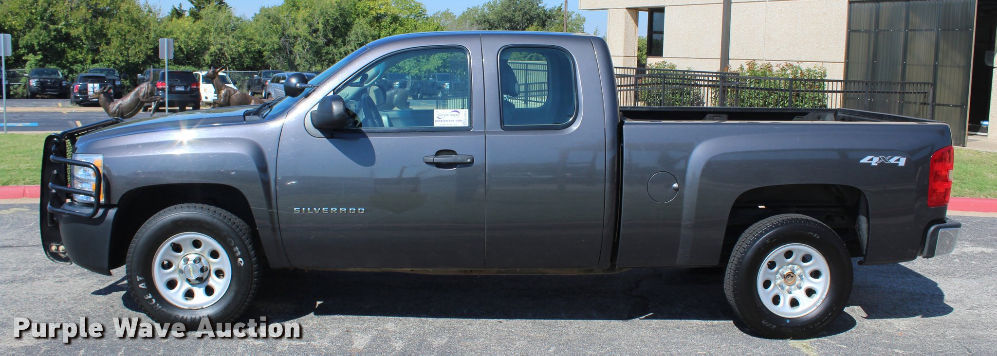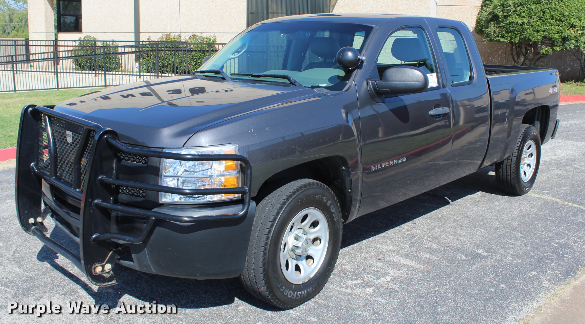 Purple Wave is selling a used 1/2 Ton Pickup or Van in Oklahoma. This item is a 2011 Chevrolet Silverado 1500 Ext. Cab pickup truck with the following: 129,970 miles on odometer, 5.3L V8 OHV 16V FFV gas engine, Automatic transmission, Four wheel drive, AC and heat, Tilt, AM/FM, Power windows, locks, and mirrors, Vinyl interior, Spotlight, Cattleman grill guard, Receiver hitch, Trailer wiring, 265/70R17 tires