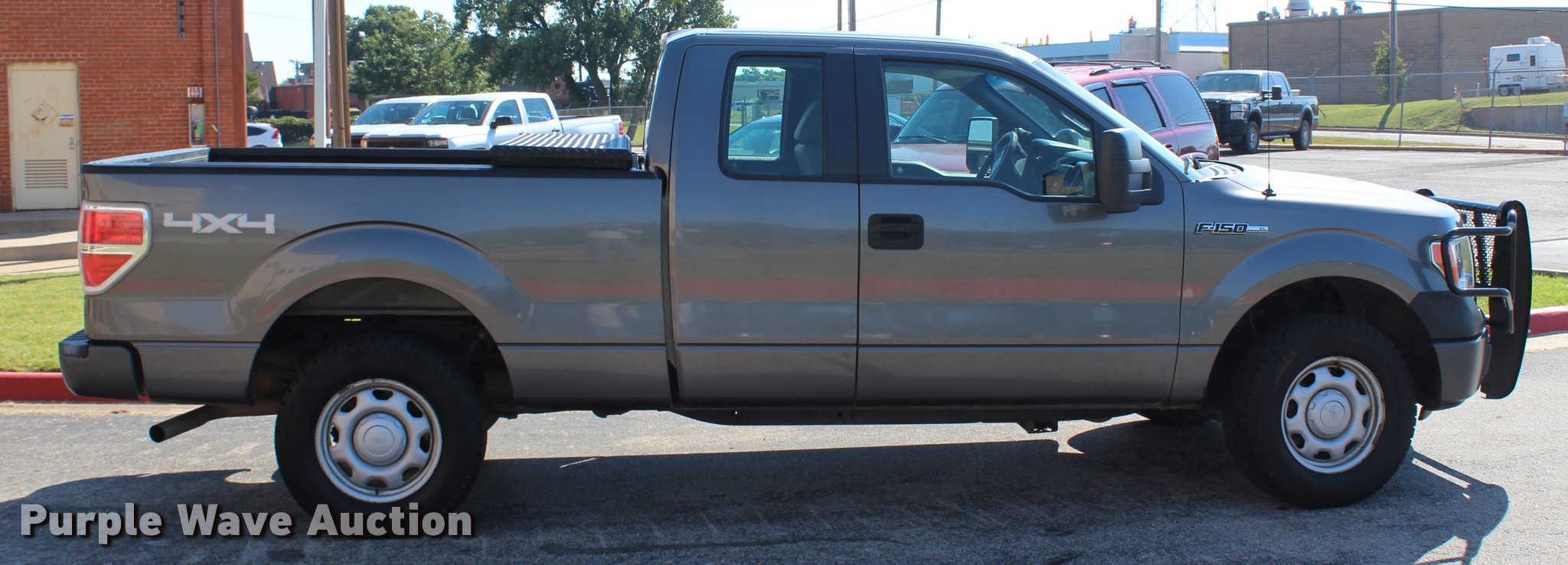 Purple Wave is selling a used 1/2 Ton Pickup or Van in Oklahoma. This item is a 2010 Ford F150 XL SuperCab pickup truck with the following: 107,675 miles on odometer, 5.4L V8 SOHC 24V FFV gas engine, Automatic transmission, Four wheel drive, AC and heat, Tilt, Cruise, AM/FM, Power windows, locks, and mirrors, Vinyl interior, Spotlight, Ranch Hand grill guard, Toolbox, Receiver hitch, Trailer wiring, LT265/70R17 tires, Exhaust leak, Check engine light illuminated, Triggered by tire sensor fault