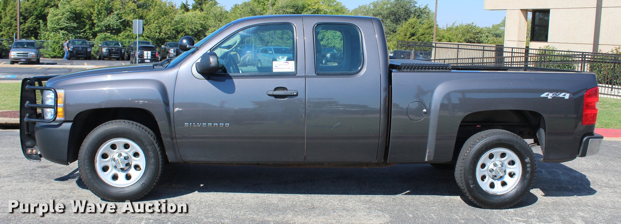 Purple Wave is selling a used 1/2 Ton Pickup or Van in Oklahoma. This item is a 2011 Chevrolet Silverado 1500 Ext. Cab pickup truck with the following: 111,872 miles on odometer, 5.3L V8 OHV 16V FFV gas engine, Automatic transmission, Four wheel drive, AC and heat, Tilt, Cruise, AM/FM, Power windows, locks, and mirrors, Vinyl interior, Spotlight, Cattleman's grill guard, Toolbox, Receiver hitch, Trailer wiring, 265/70R17 tires