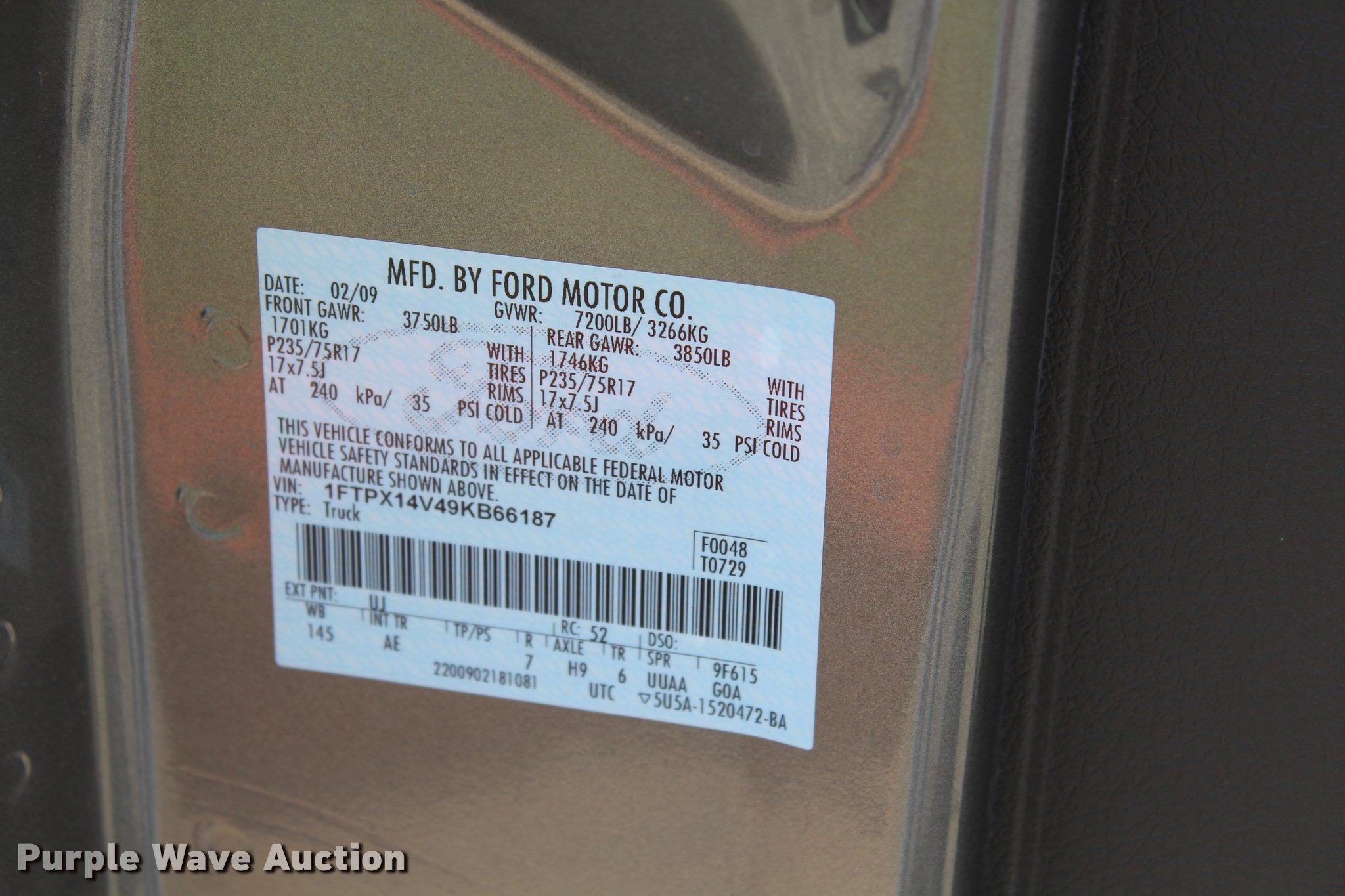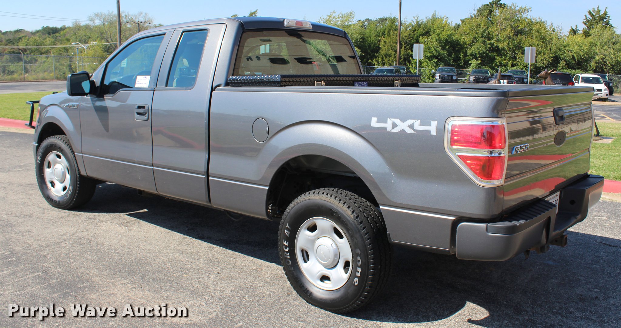 Purple Wave is selling a used 1/2 Ton Pickup or Van in Oklahoma. This item is a 2009 Ford F150 XL SuperCab pickup truck with the following: 129,932 miles on odometer, 5.4L V8 SOHC 24V FFV gas engine, Automatic transmission, Four wheel drive, AC and heat, Tilt, Cruise, AM/FM, Power windows, locks, and mirrors, Vinyl interior, Spotlight, Grill guard, Toolbox, Receiver hitch, Trailer wiring, 265/70R17 tires, Cracked windshield, Rear passenger door will not open