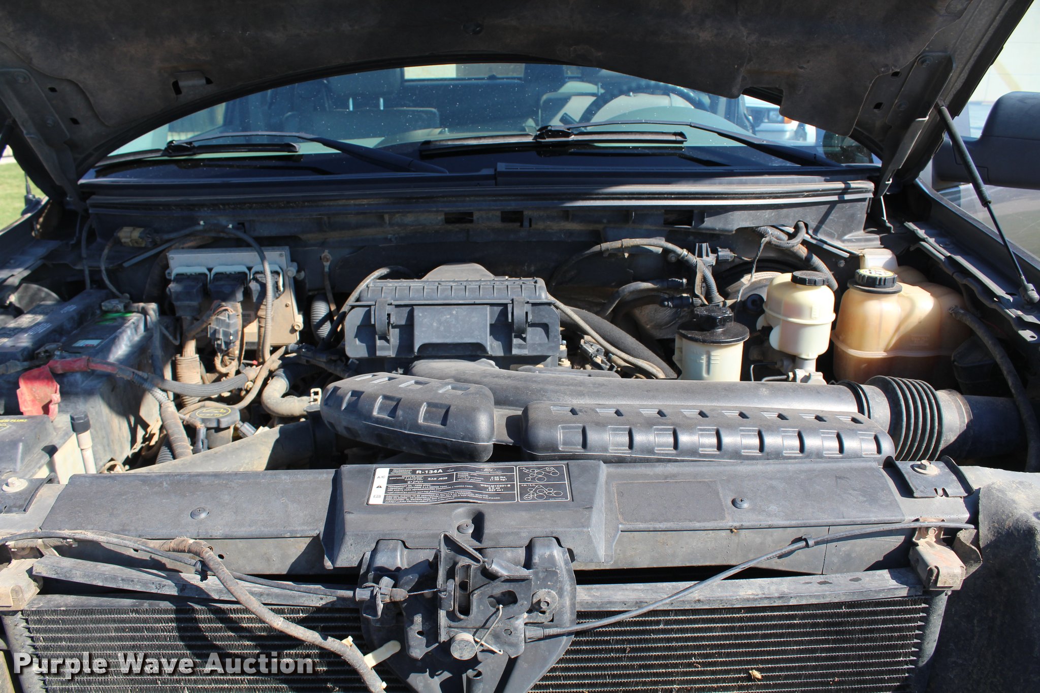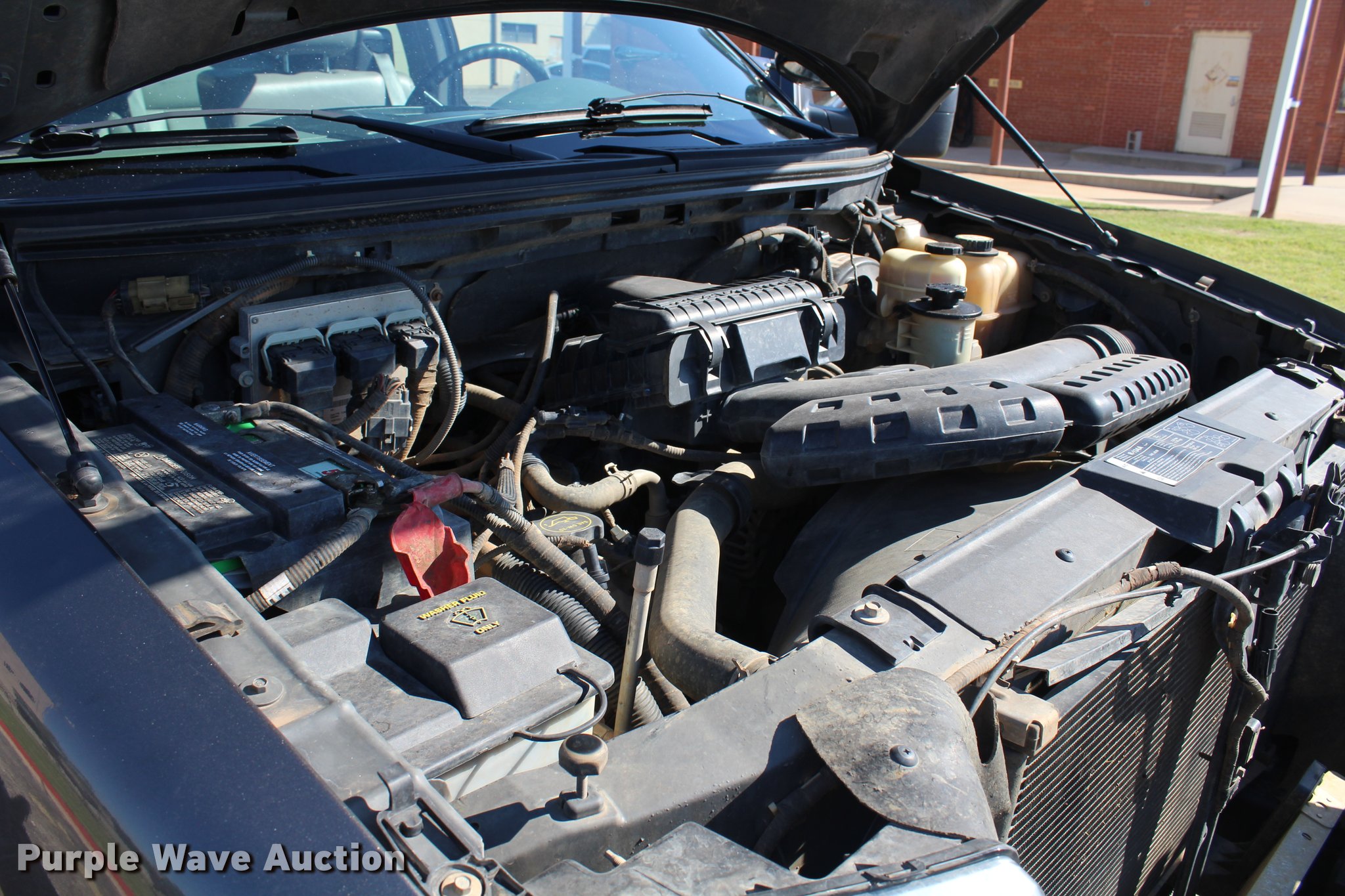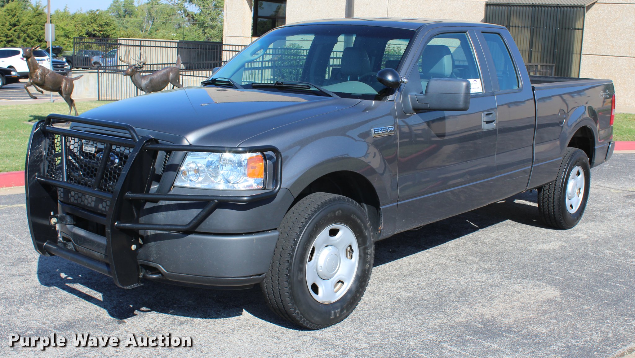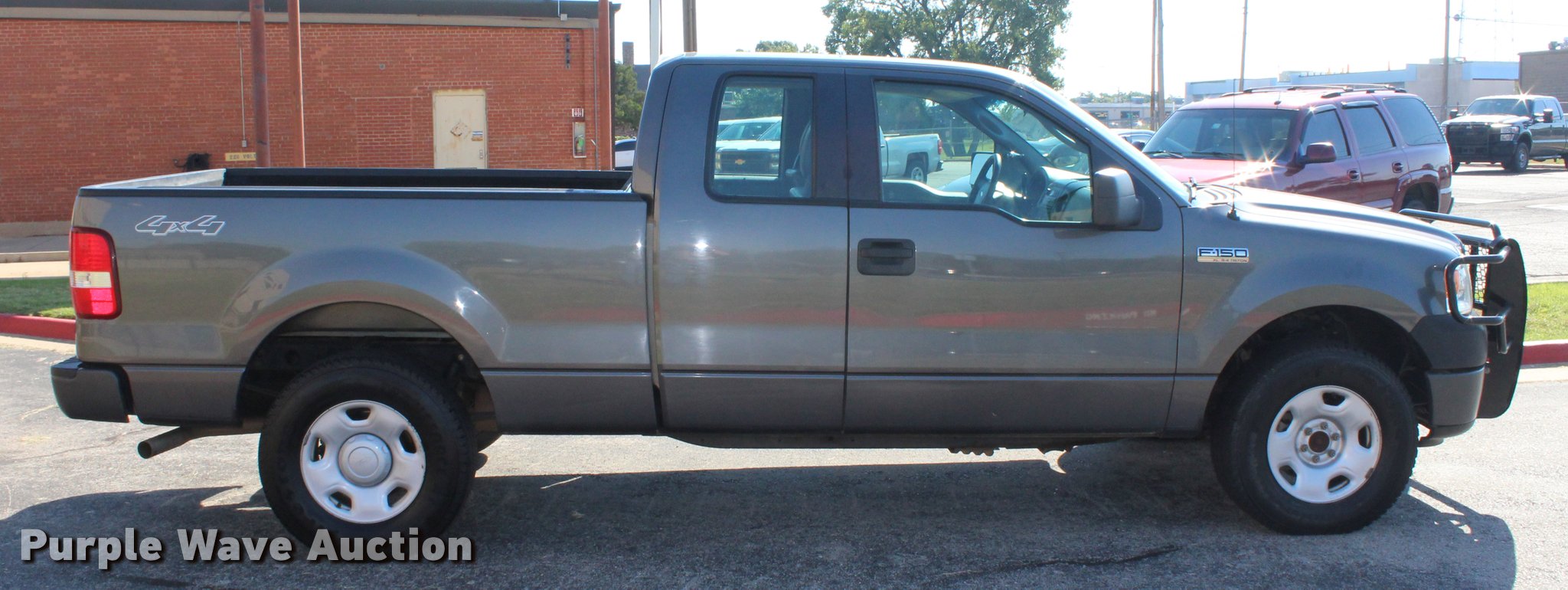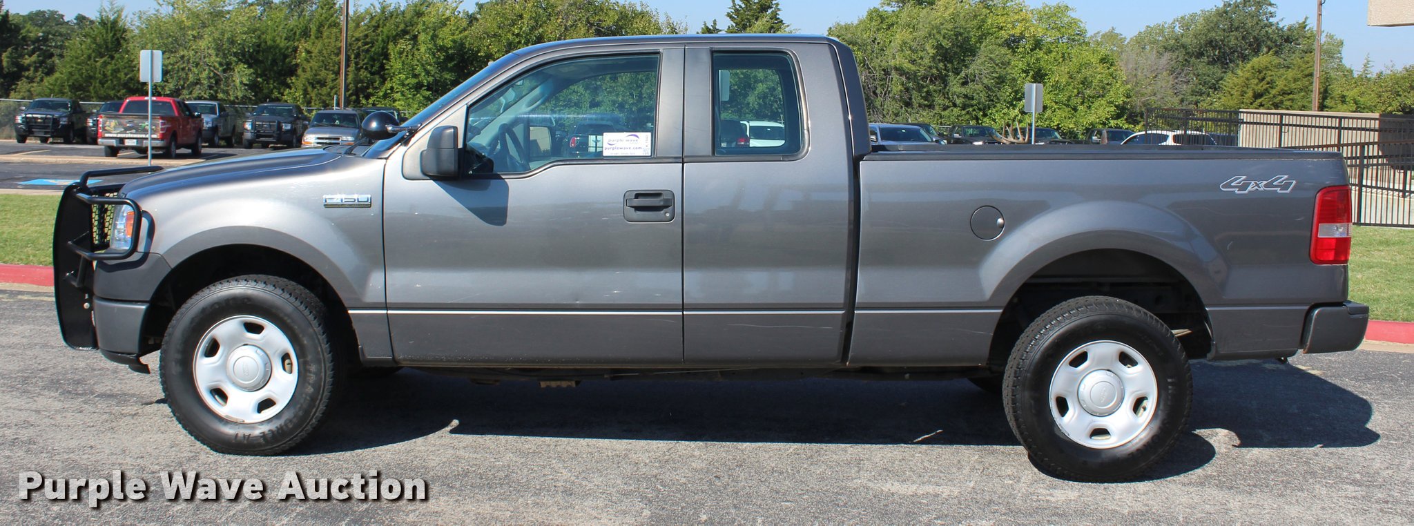 Purple Wave is selling a used 1/2 Ton Pickup or Van in Oklahoma. This item is a 2008 Ford F150 XL SuperCab pickup truck with the following: 159,622 miles on odometer, 5.4L V8 SOHC 24V FFV gas engine, Automatic transmission, Four wheel drive, AC and heat, Tilt, Cruise, AM/FM, Power windows, locks, and mirrors, Vinyl interior, Spotlight, Ranch Hand grill guard, Receiver hitch, LT265/70R17 tires, Windshield cracked