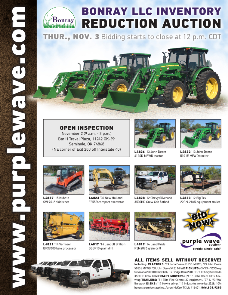 SOLD! November 3 Bonray LLC Inventory Reduction Auction