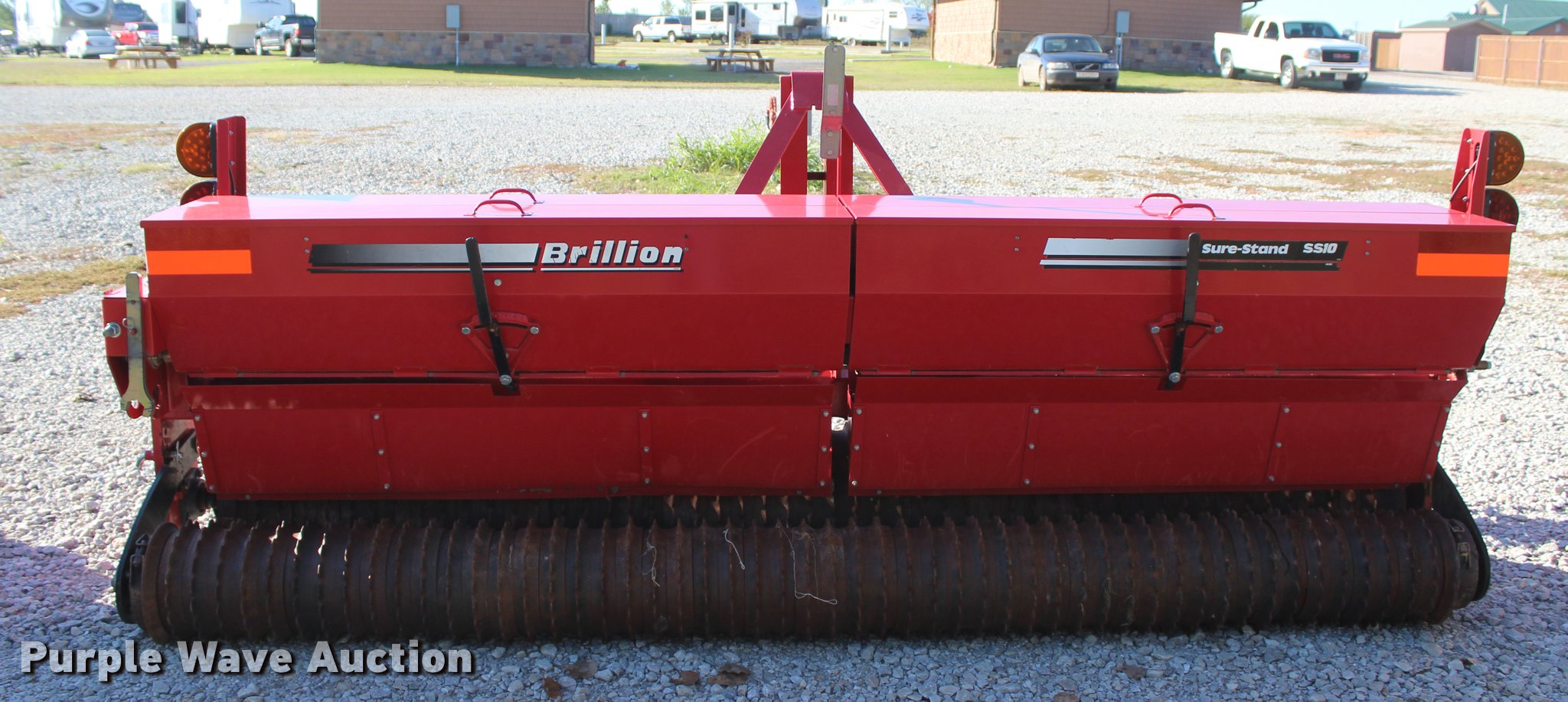 Purple Wave is selling a used Grain Drill or Seeder in Oklahoma. This item is a 2014 Landoll Brillion SSBP10 seeder with the following: 10'W, 14 row units, 9" row spacing, Bulk fill system, 4.375 bu. capacity, Micro-metered front seed box, Rear seed box agitator, Ground driven meters, Precision metering and depth placement, Sure Stand SS10 double roller cast closing system, S-tine wheel track removal kit, Three point, Manual, Serial ASM1301040