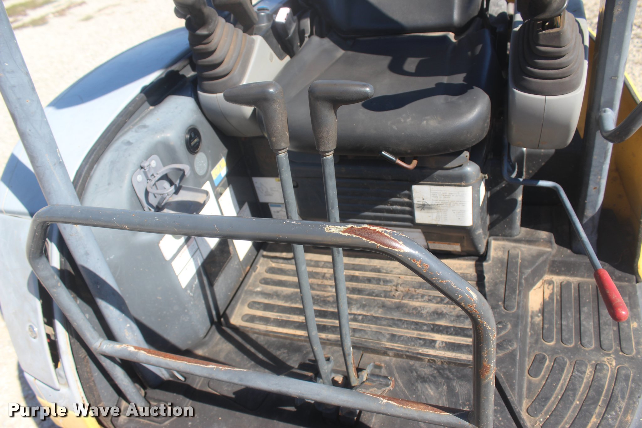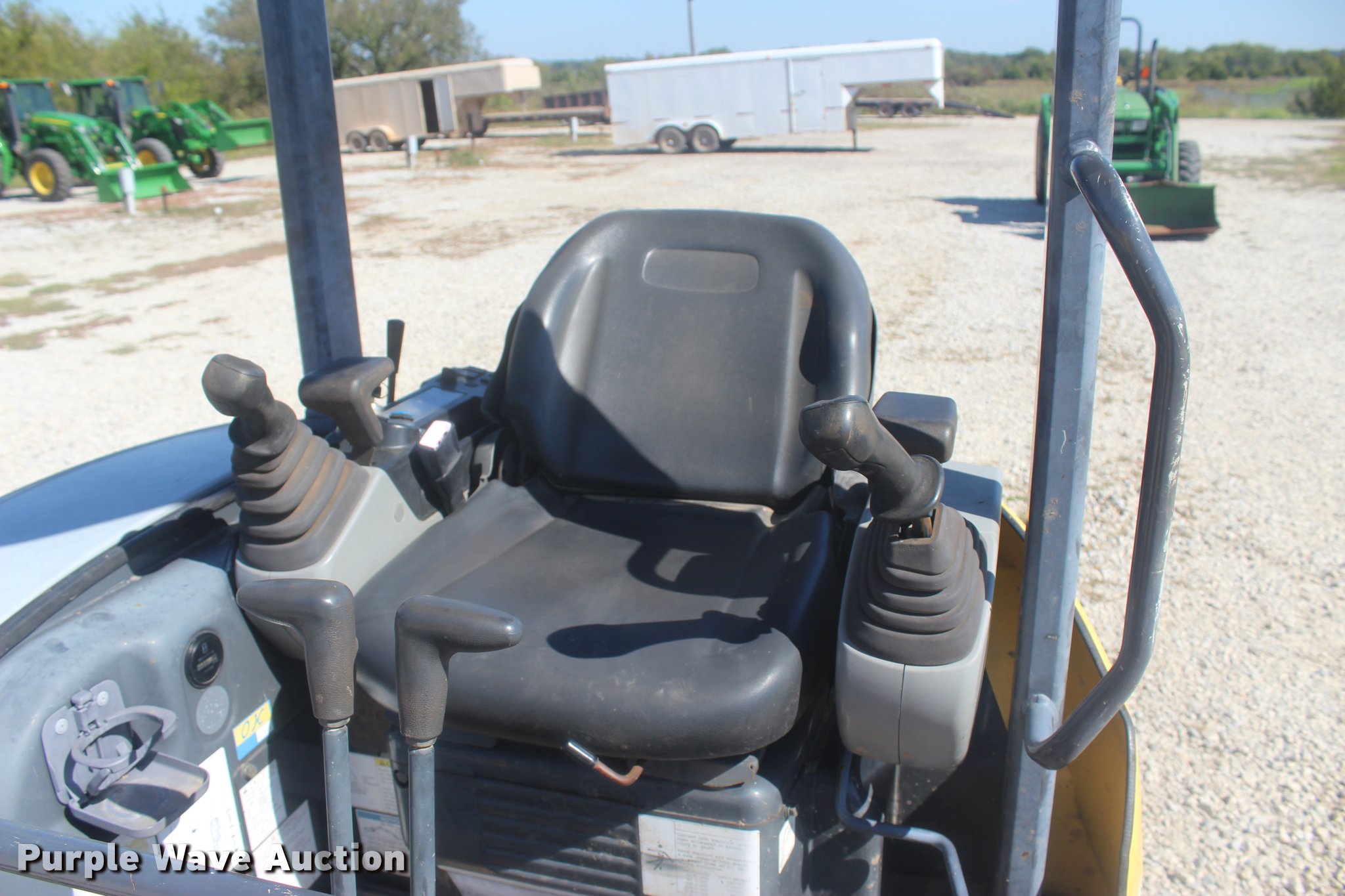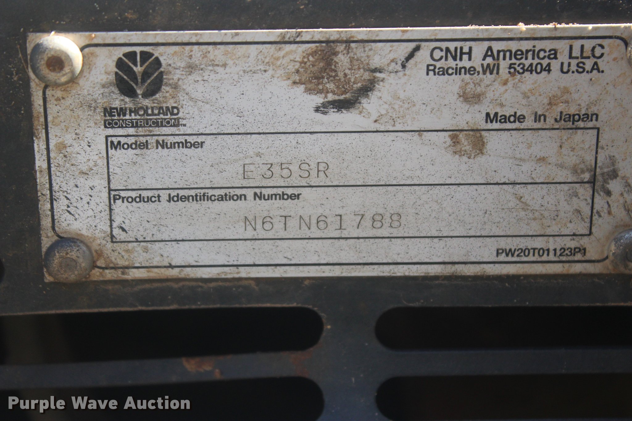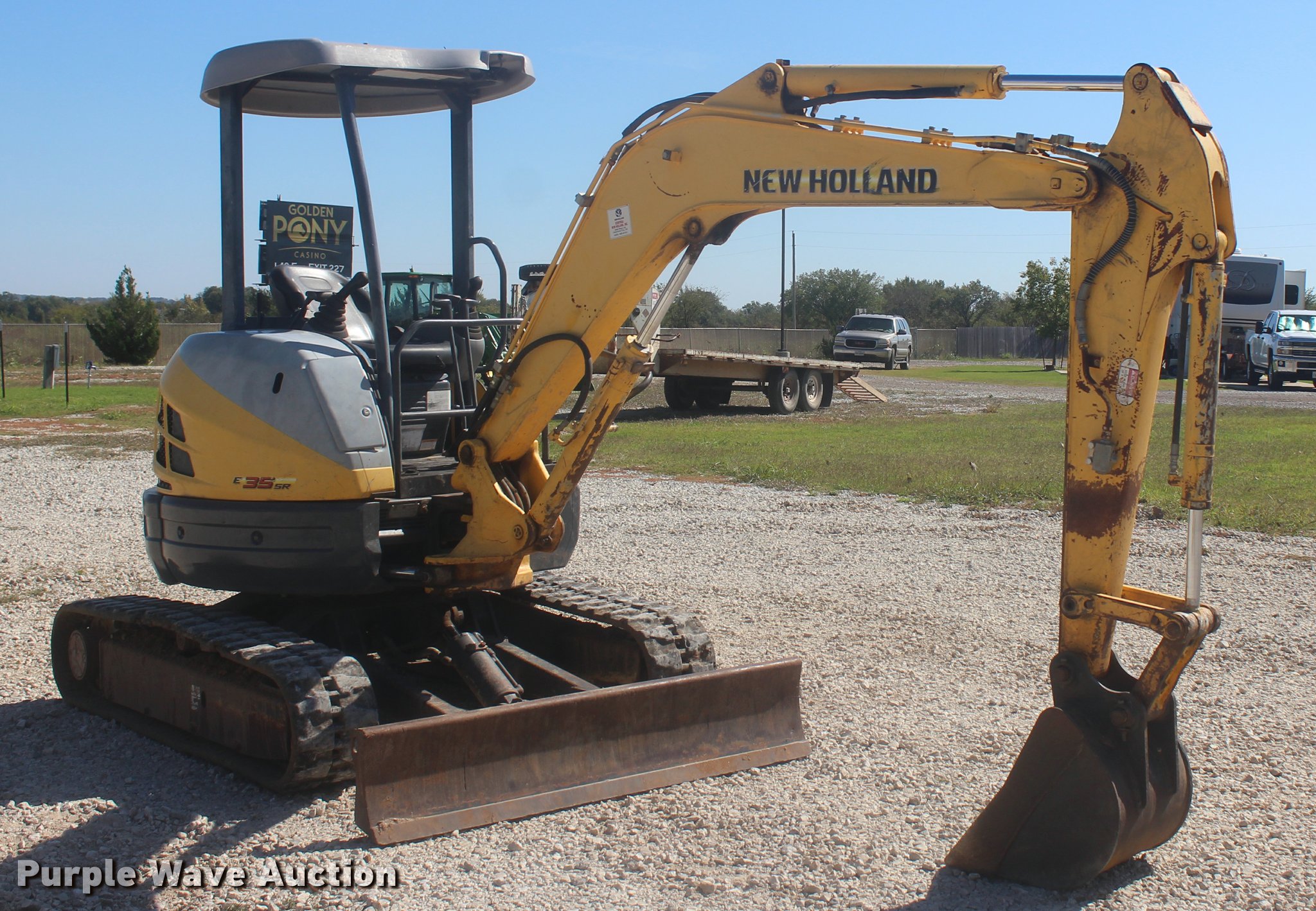 Purple Wave is selling a used Mini Excavator in Oklahoma. This item is a 2006 New Holland E355R compact excavator with the following: 1,205 hours on meter, Yanmar 3TNV88-P 1.642L three cylinder diesel engine, 30 HP, Hydrostatic transmission, OROPS, Suspension seat, Standard boom, 50 stick length, USA Attachments 18"W bucket, (4) weld-on teeth, Additional bucket, 68"W backfill blade, 12"W rubber tracks, Backfill blade hydraulics are weak, Serial N6TN61788