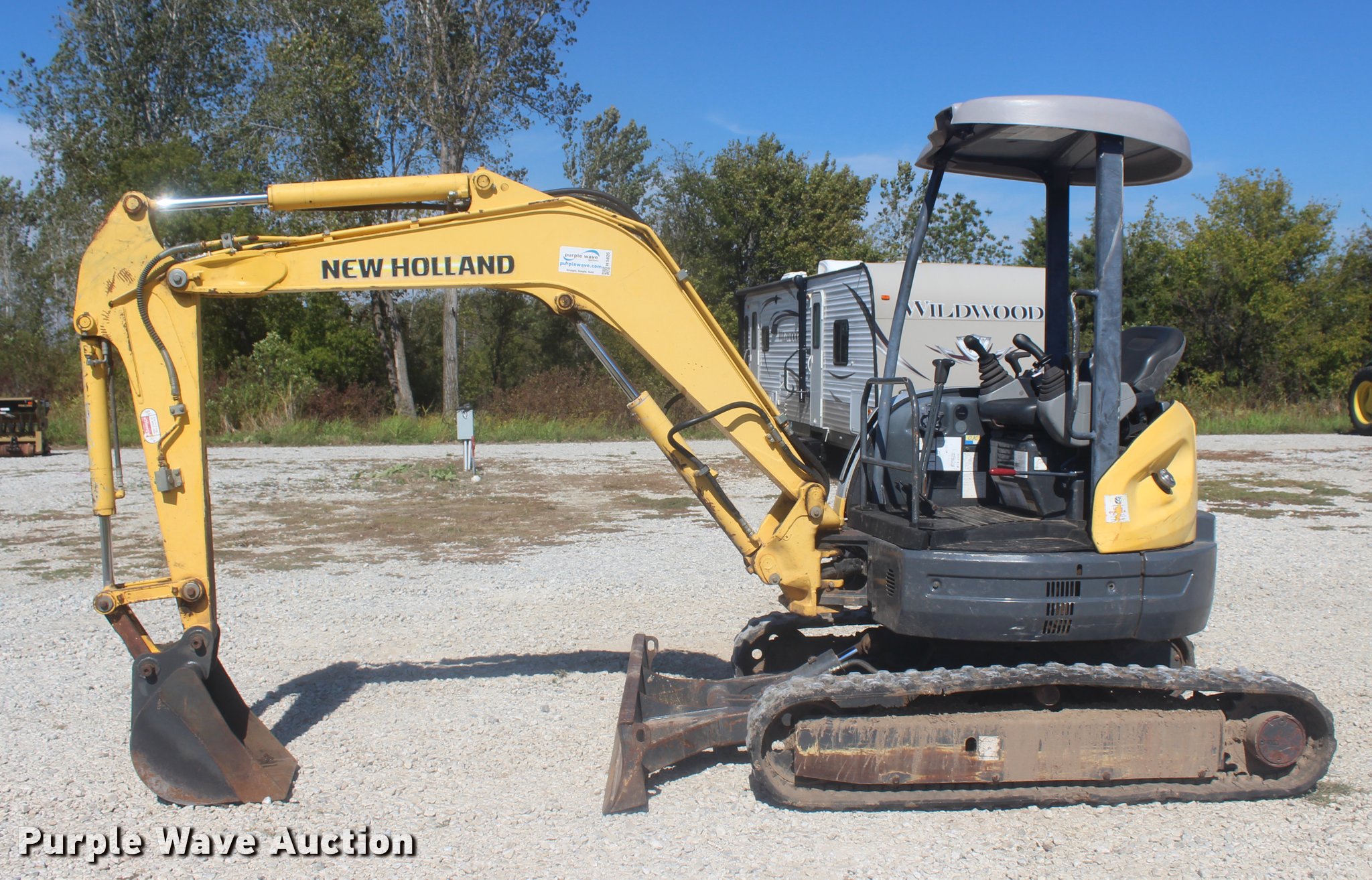 This 2006 New Holland E355R compact excavator will sell to the highest bidder regardless of price.