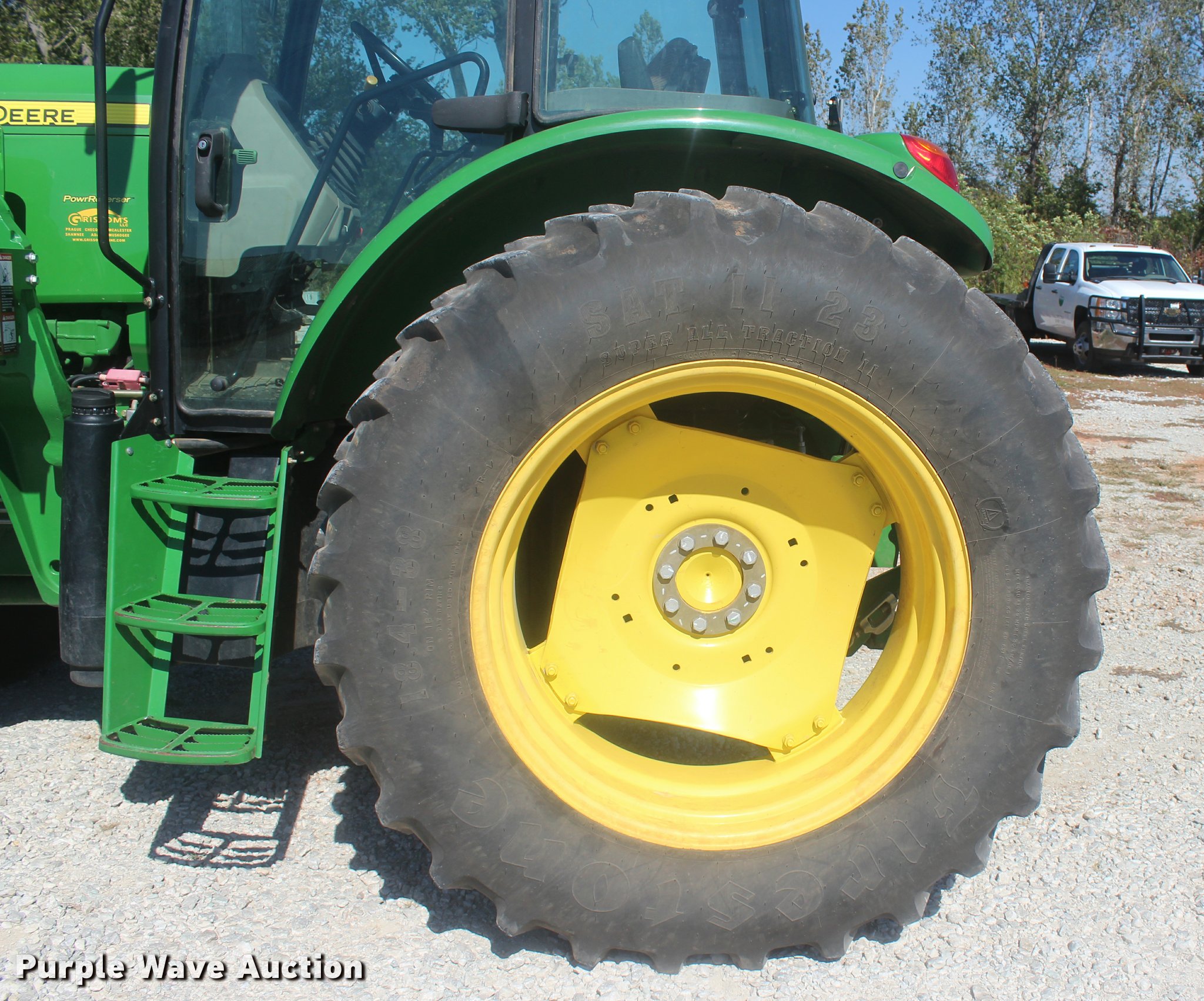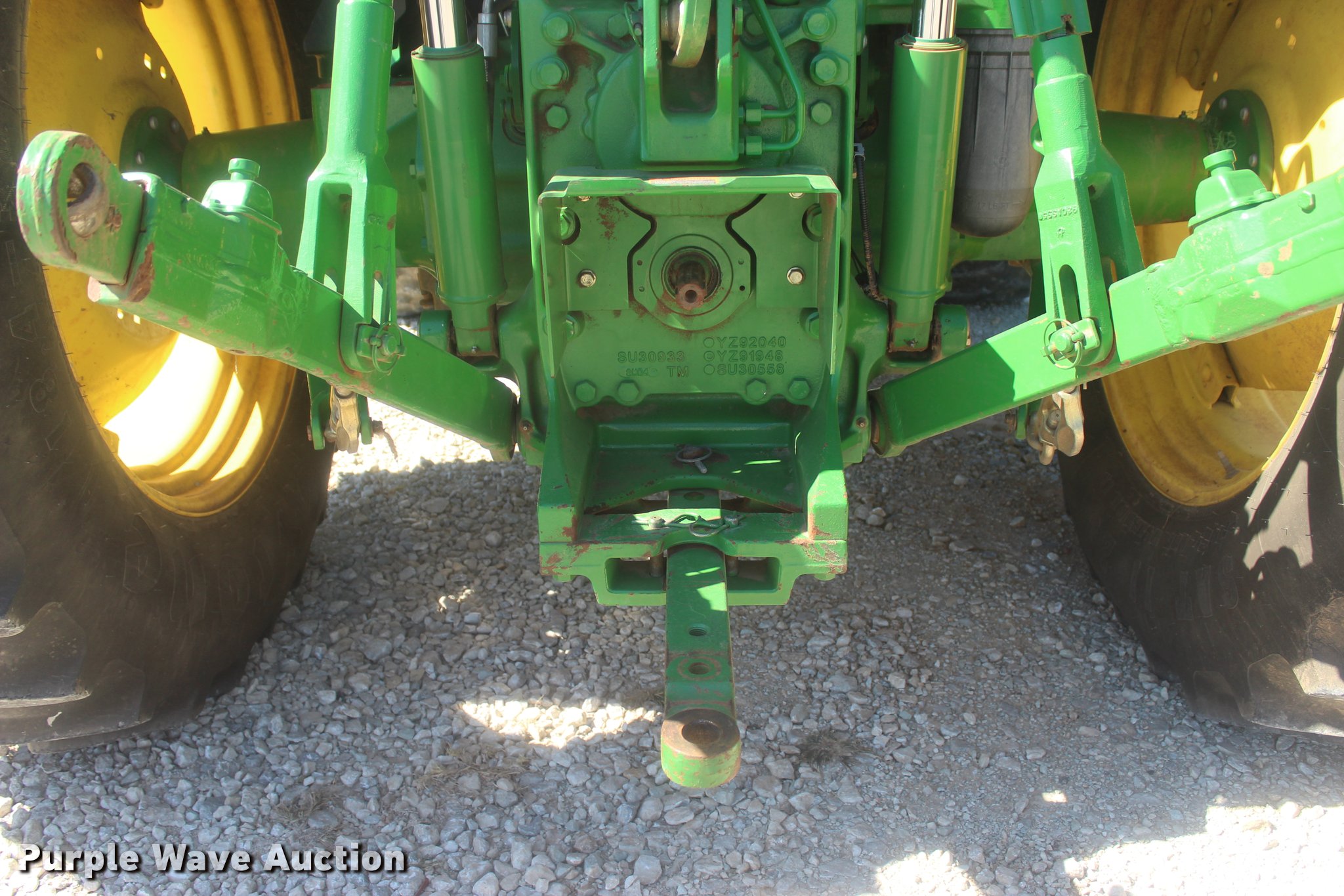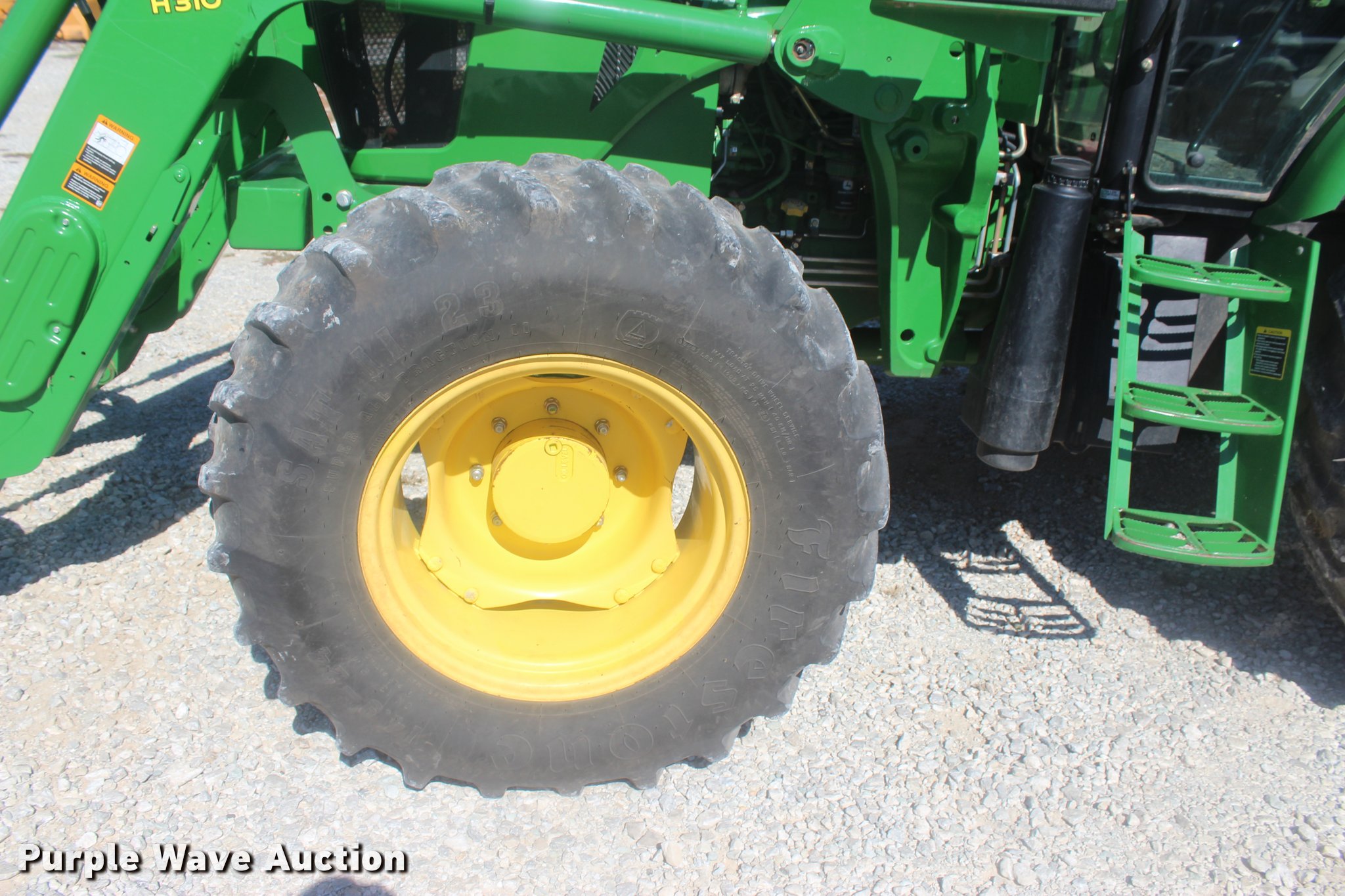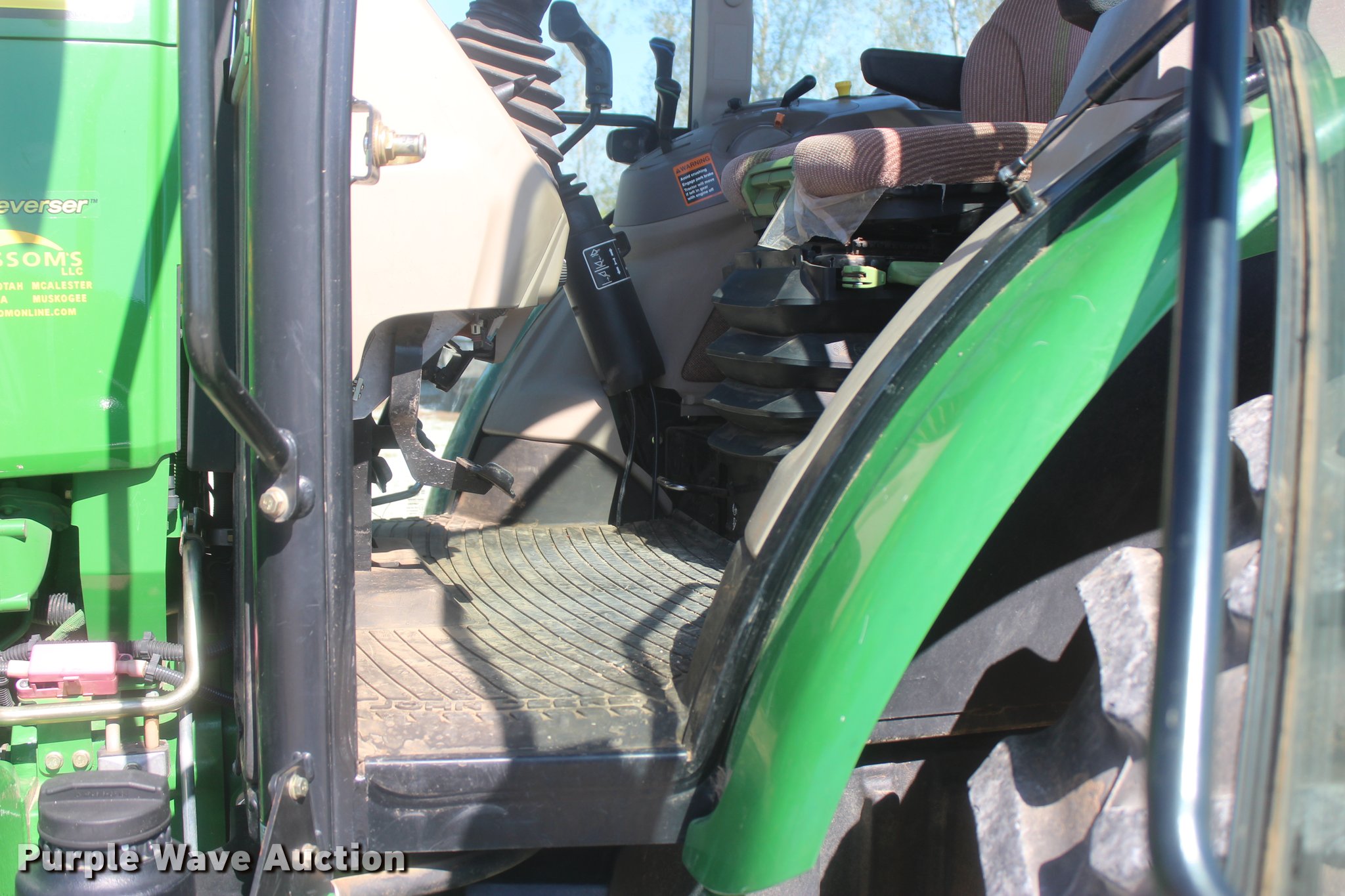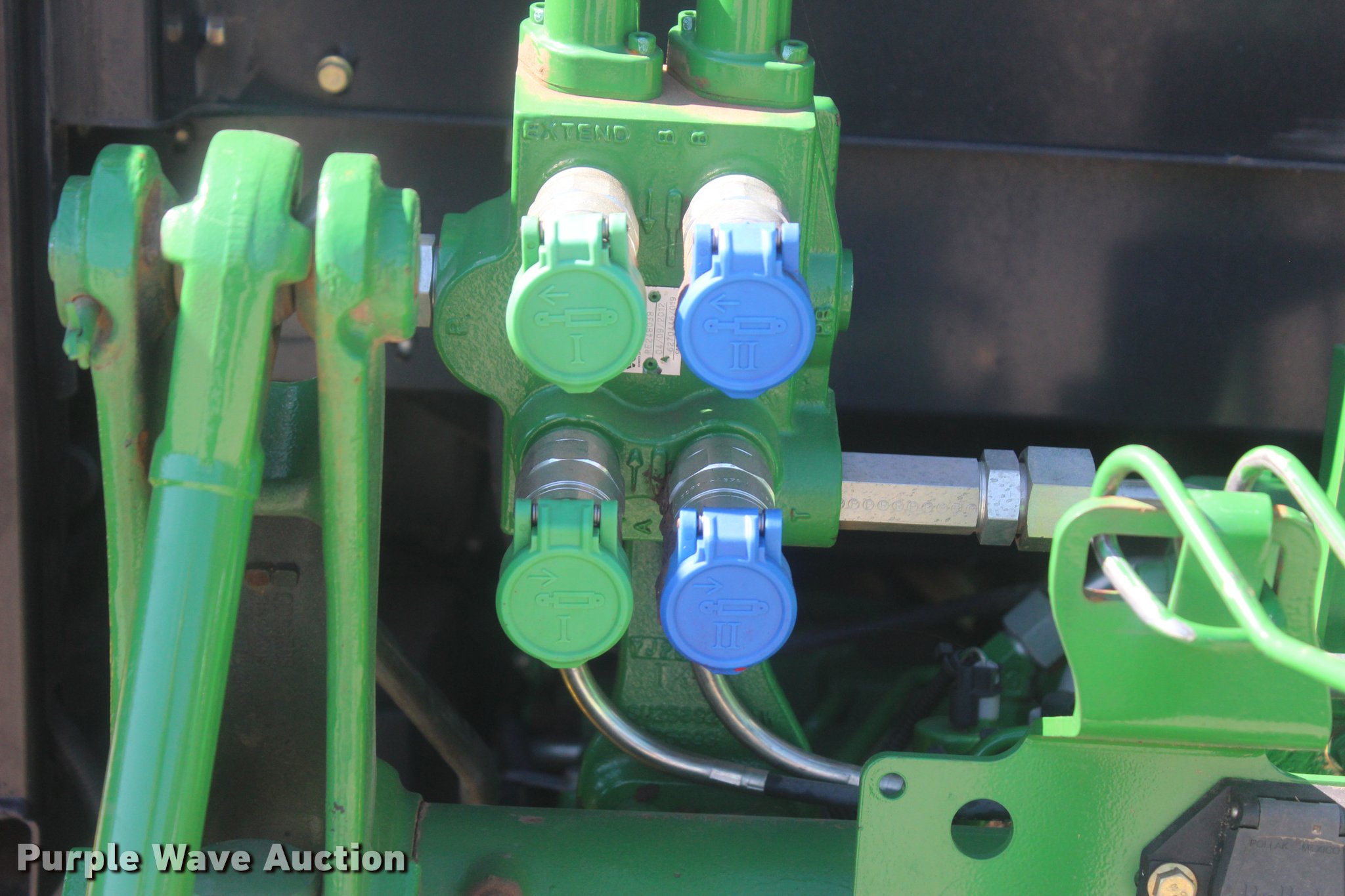 Purple Wave is selling a used Tractor in Oklahoma. This item is a 2013 John Deere 6130D MFWD tractor with the following: 1,204 hours on meter, John Deere 4045HP057 4.5L four cylinder turbo diesel engine, 130 HP, Partial synchronized transmission with power shuttle, 9F-9R gears, Left-Hand reverser, Differential lock, AC and heat, AM/FM/weatherband, Spring suspension seat, Tilt steering wheel, Visors, John Deere H310 loader, 75"W bucket, Joystick control, Three point, Top link, 540/1000 PTO, Draw bar, Seven pin outlet, (2) rear hydraulic remote sets, Toolbox, 92" wheelbase, Firestone 14.9-24 front tires, Firestone 18.4-70 rear tires, Three point quick attach, top-link, and draw bar are not included, Serial 1P06130DJDM050144