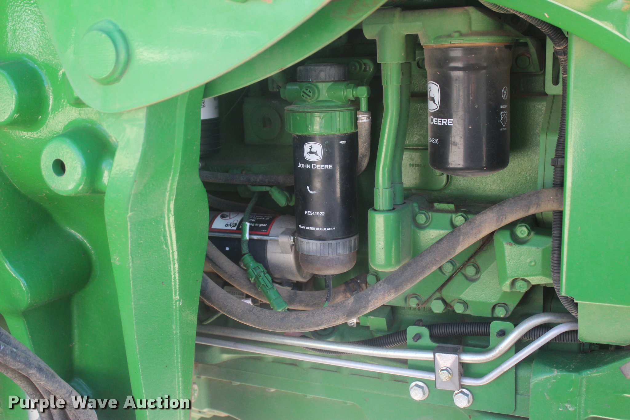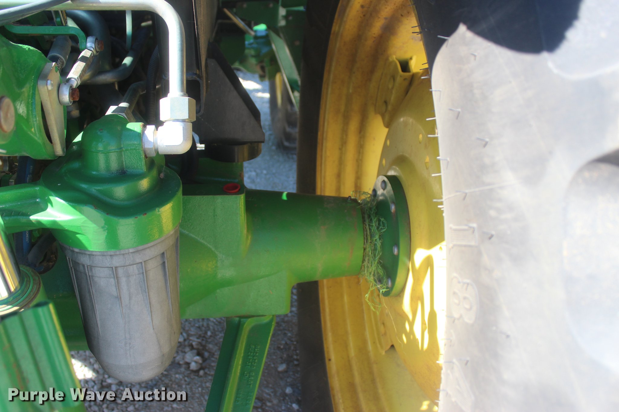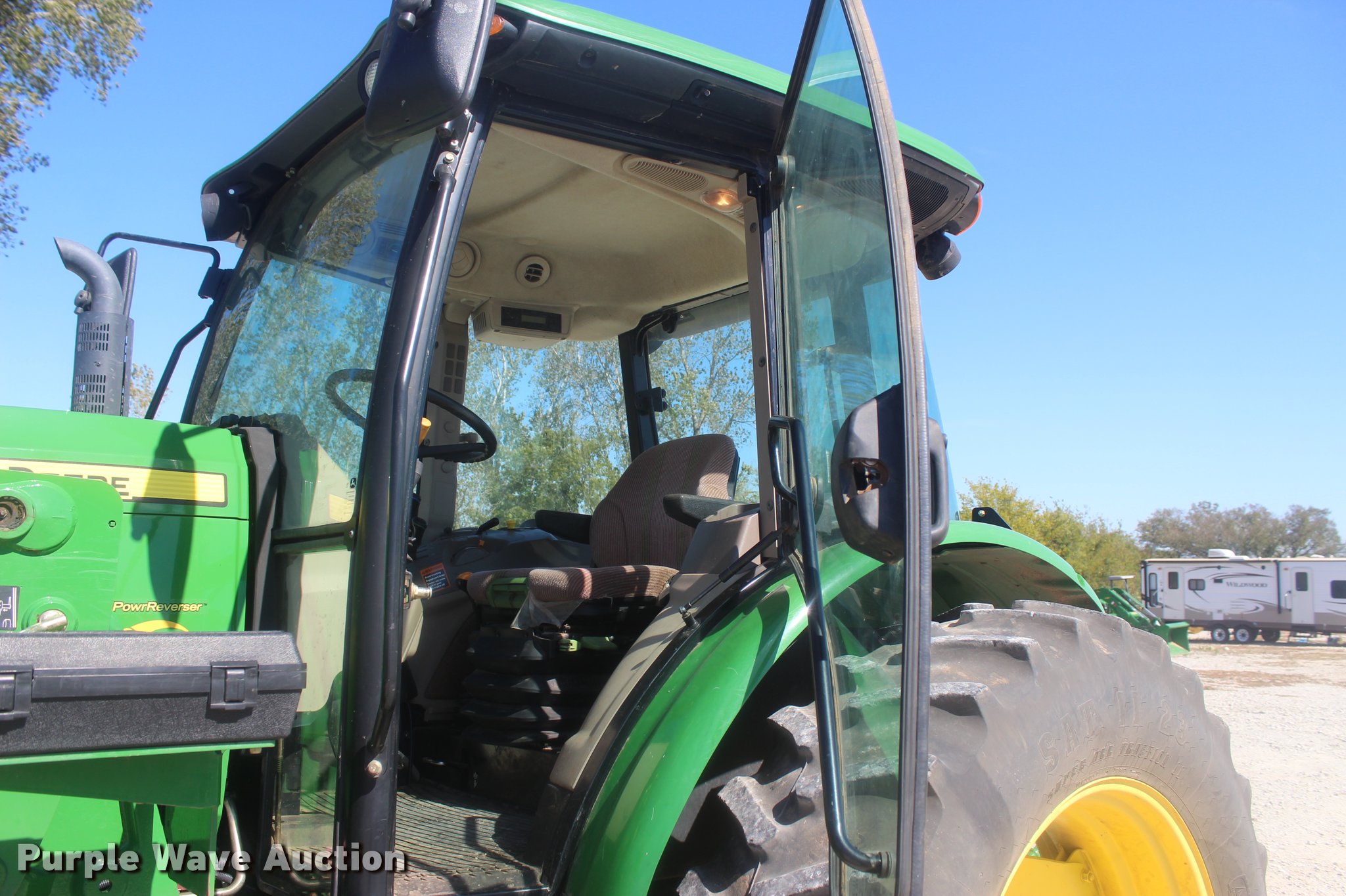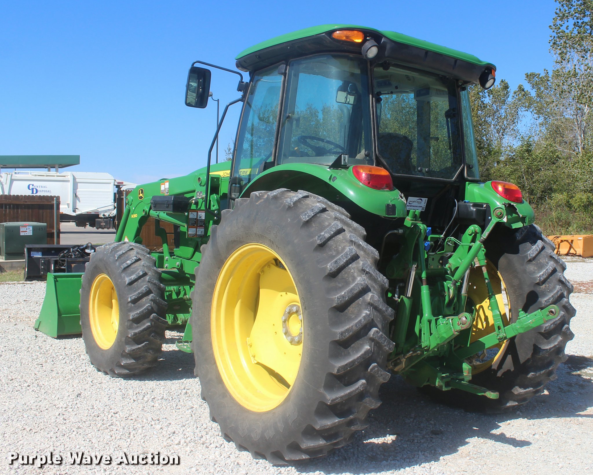 Purple Wave is selling a used Tractor in Oklahoma. This item is a 2013 John Deere 6130D MFWD tractor with the following: 1,204 hours on meter, John Deere 4045HP057 4.5L four cylinder turbo diesel engine, 130 HP, Partial synchronized transmission with power shuttle, 9F-9R gears, Left-Hand reverser, Differential lock, AC and heat, AM/FM/weatherband, Spring suspension seat, Tilt steering wheel, Visors, John Deere H310 loader, 75"W bucket, Joystick control, Three point, Top link, 540/1000 PTO, Draw bar, Seven pin outlet, (2) rear hydraulic remote sets, Toolbox, 92" wheelbase, Firestone 14.9-24 front tires, Firestone 18.4-70 rear tires, Three point quick attach, top-link, and draw bar are not included, Serial 1P06130DJDM050144