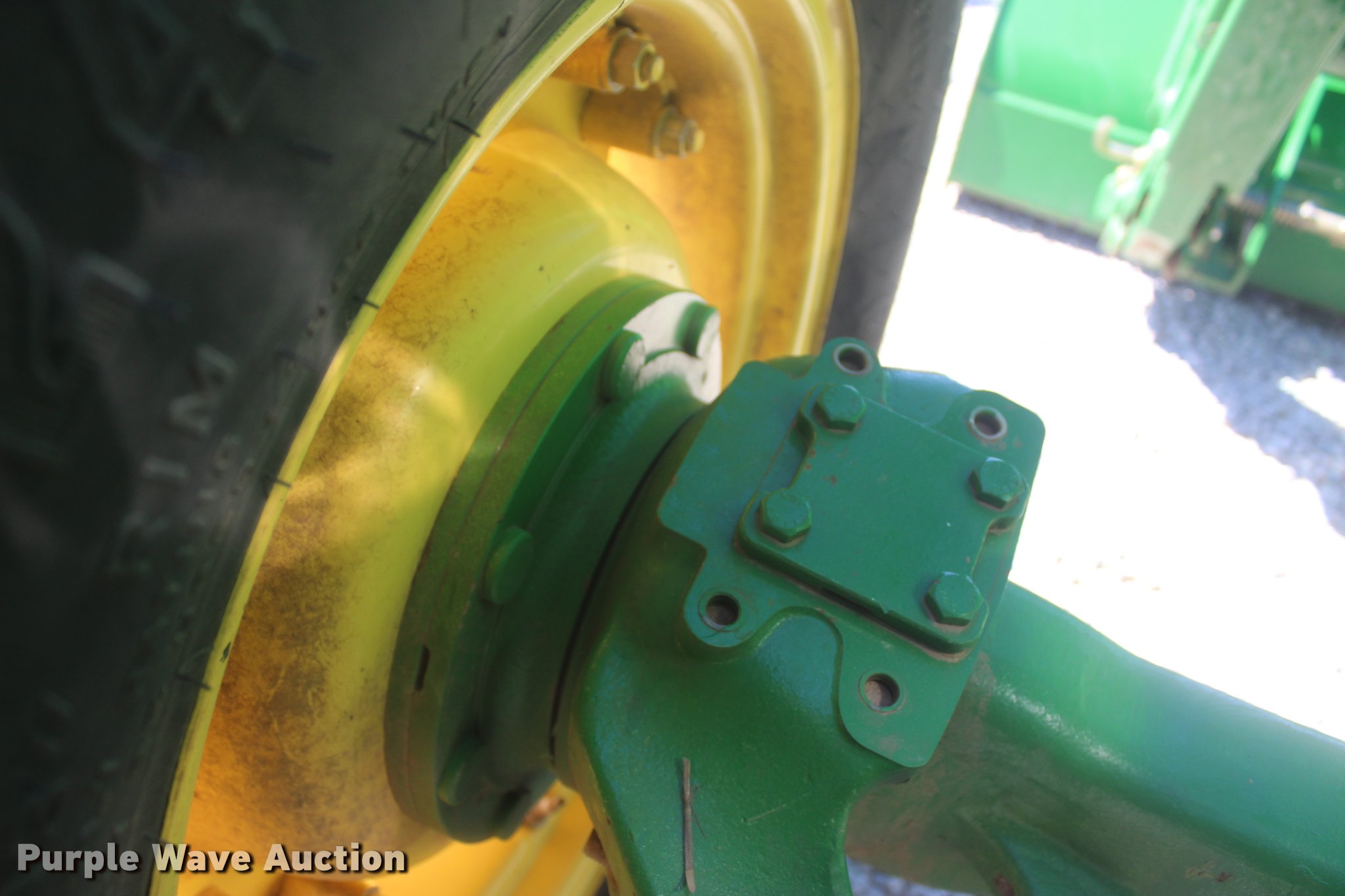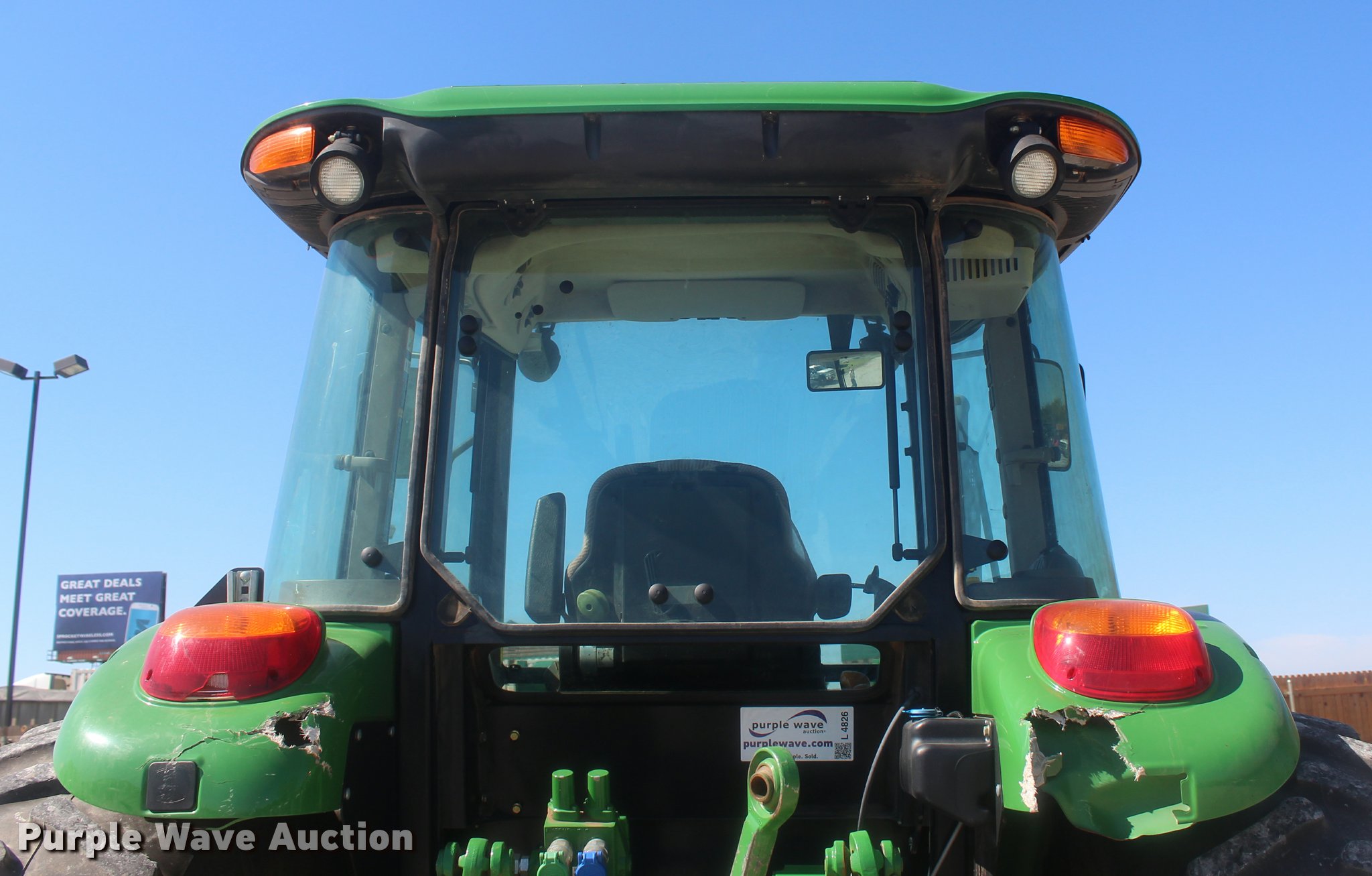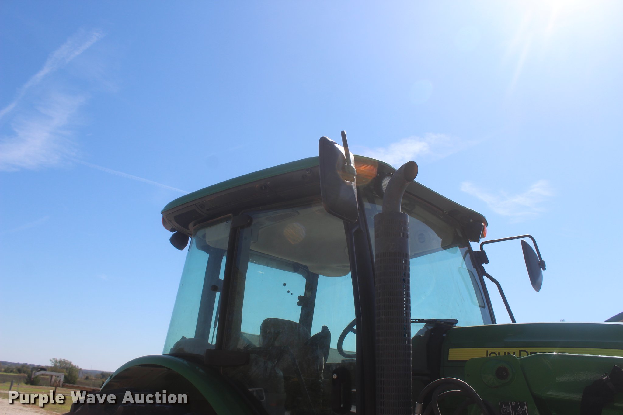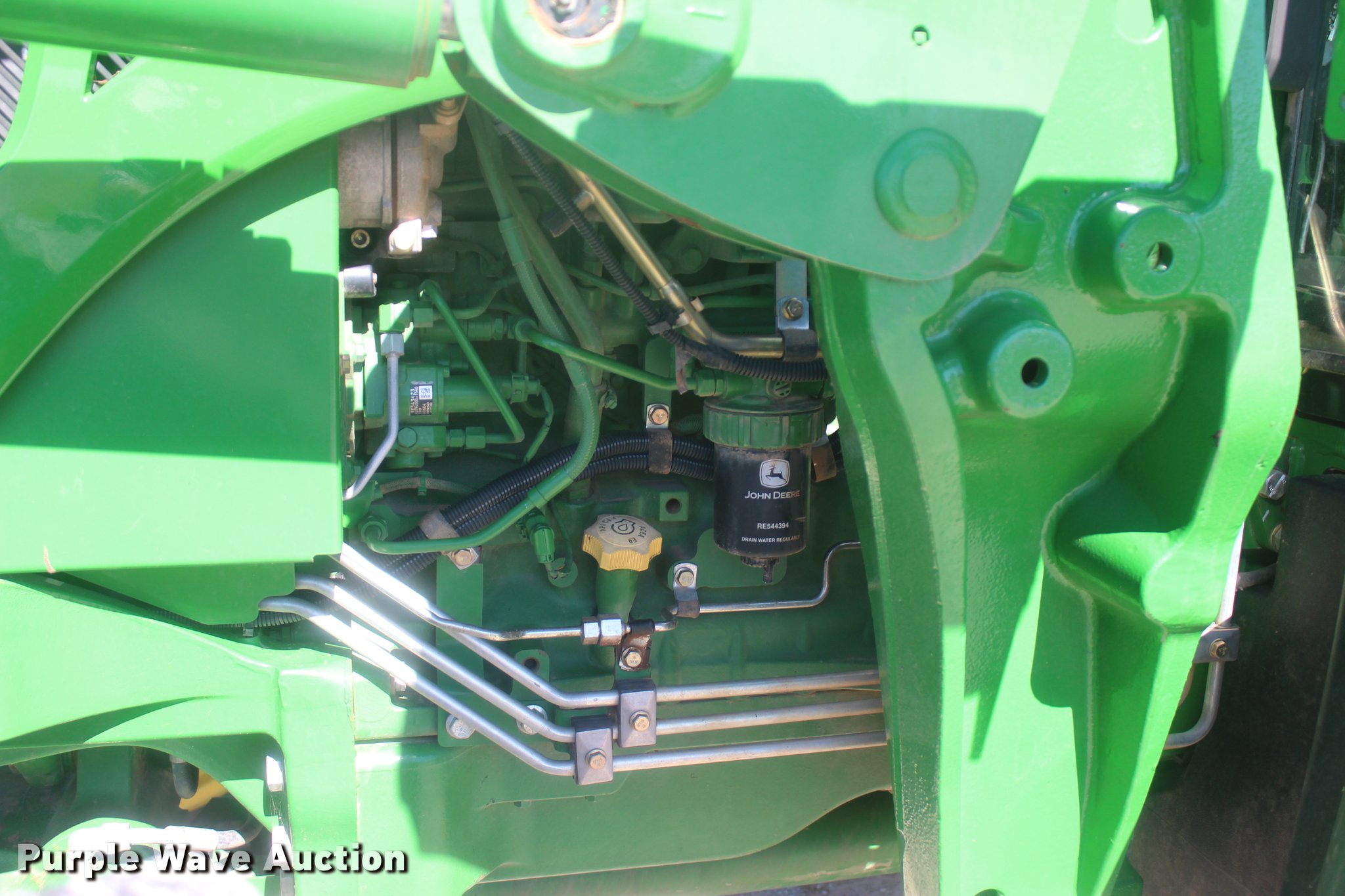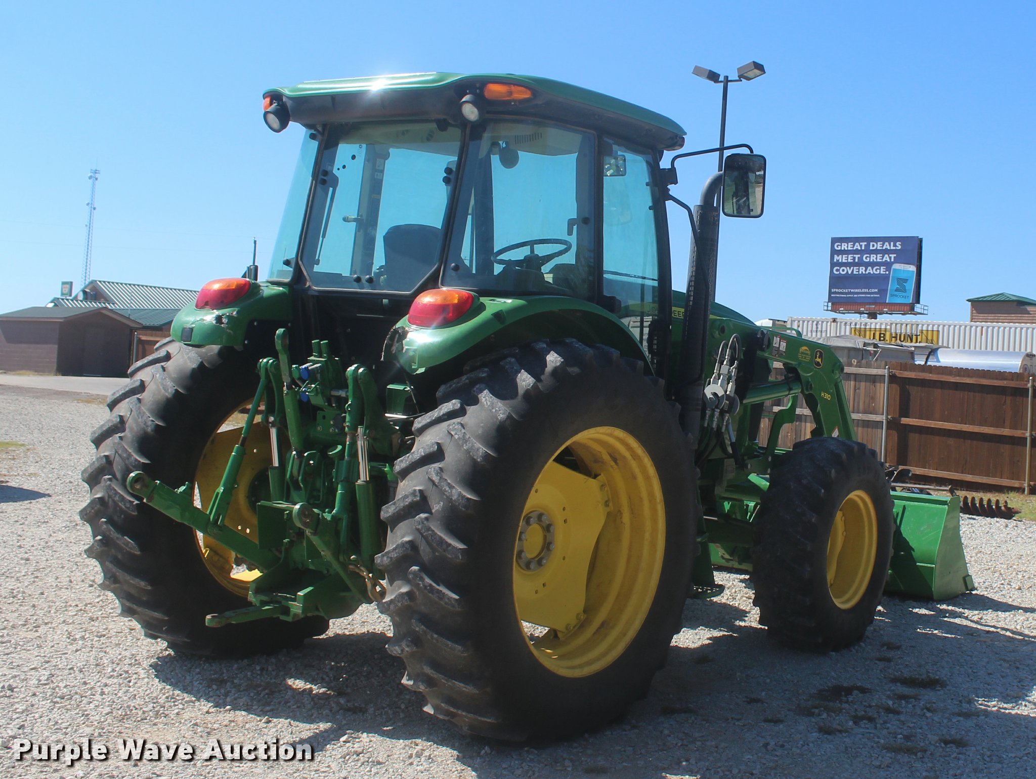Purple Wave is selling a used Tractor in Oklahoma. This item is a 2013 John Deere 6130D MFWD tractor with the following: 1,204 hours on meter, John Deere 4045HP057 4.5L four cylinder turbo diesel engine, 130 HP, Partial synchronized transmission with power shuttle, 9F-9R gears, Left-Hand reverser, Differential lock, AC and heat, AM/FM/weatherband, Spring suspension seat, Tilt steering wheel, Visors, John Deere H310 loader, 75"W bucket, Joystick control, Three point, Top link, 540/1000 PTO, Draw bar, Seven pin outlet, (2) rear hydraulic remote sets, Toolbox, 92" wheelbase, Firestone 14.9-24 front tires, Firestone 18.4-70 rear tires, Three point quick attach, top-link, and draw bar are not included, Serial 1P06130DJDM050144
