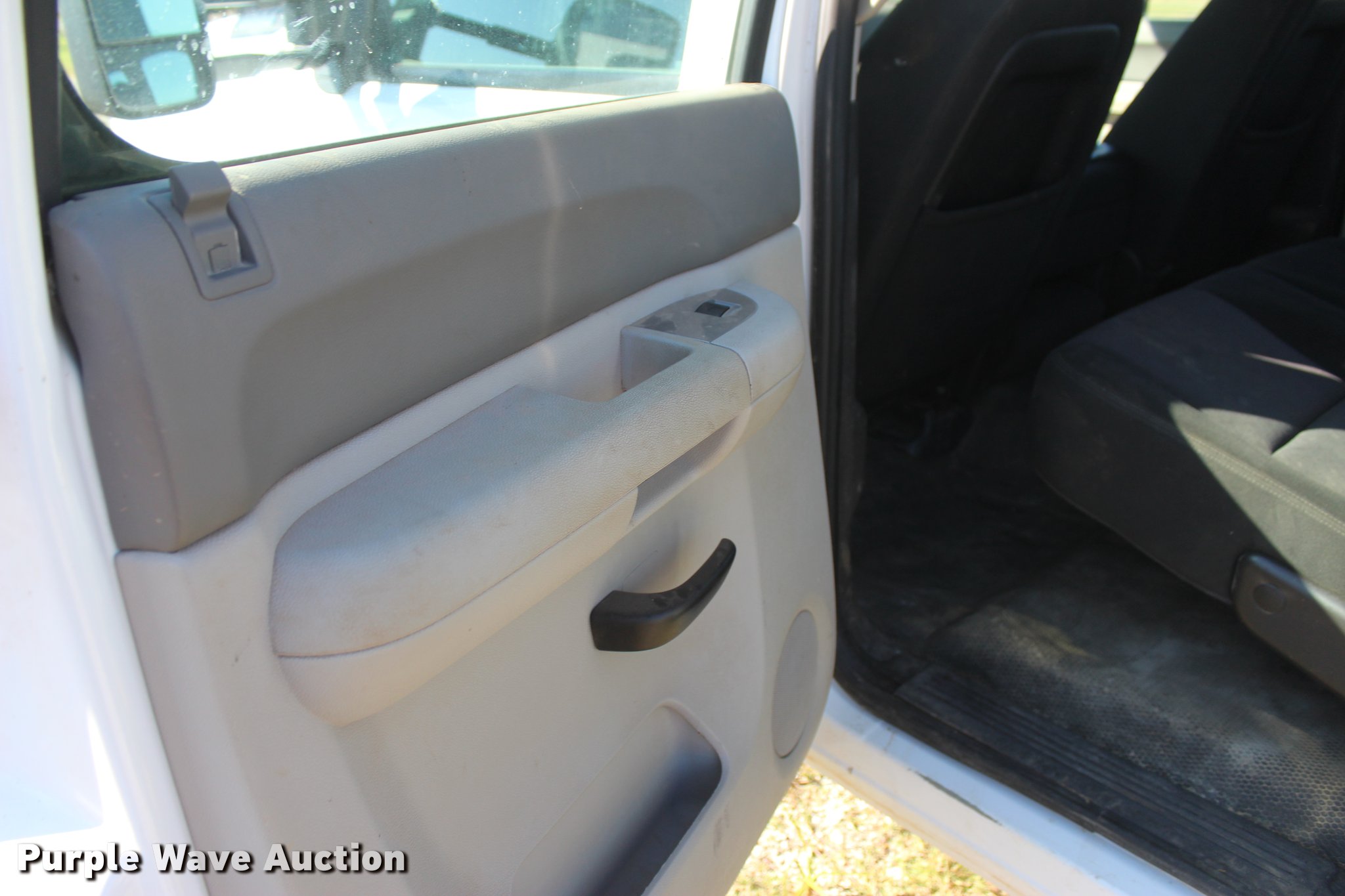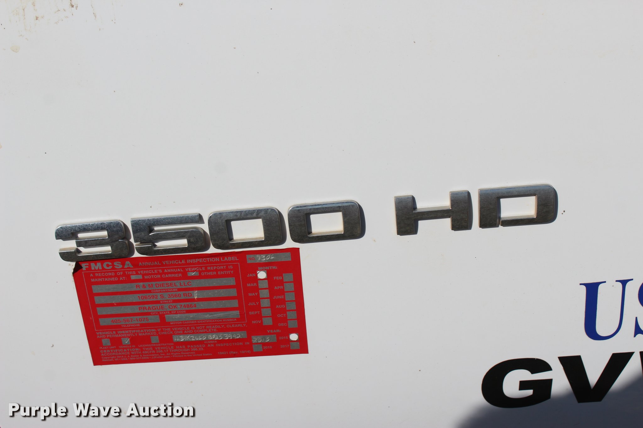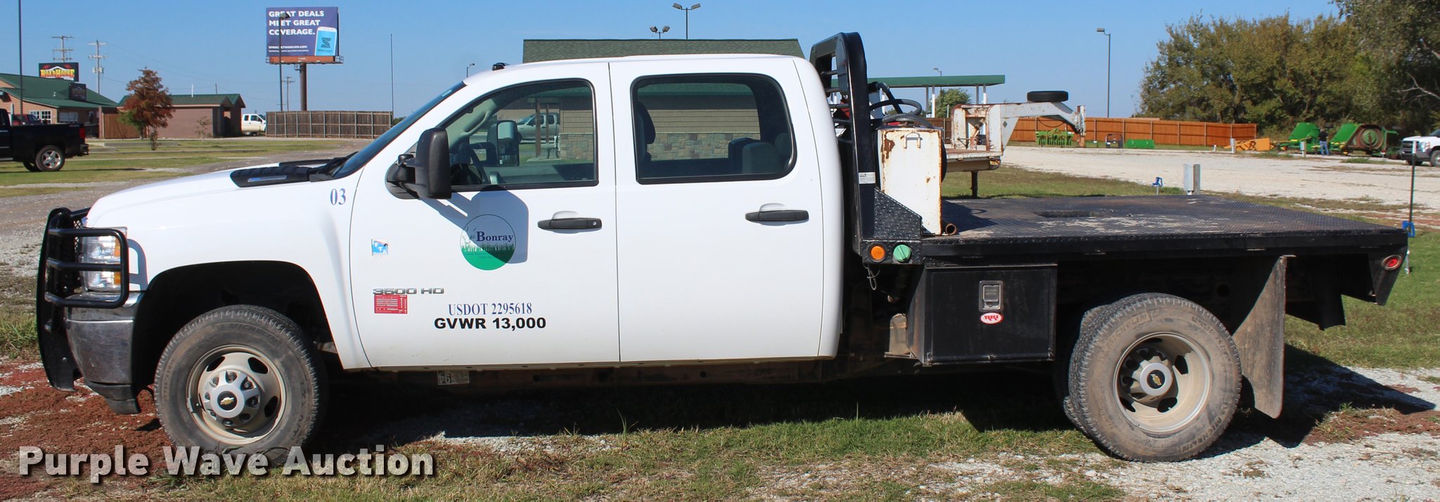Purple Wave is selling a used 3/4 or 1 Ton Pickup or Van in Oklahoma. This item is a 2011 Chevrolet Silverado 3500HD Crew Cab flatbed pickup truck with the following: 32,091 miles on odometer, 6.6L V8 OHV 32V turbo diesel engine, Automatic transmission, Four wheel drive, AC and heat, Tilt, Cruise, AM/FM/CD, Power windows, locks, and mirrors, Cloth interior, Trailer brake controller, CM 9'L x 96"W flatbed, Ranch Hand grill guard, Front tow hook, Receiver hitch, Gooseneck hitch, Trailer wiring, LT235/80R17 tires, Unit# 03