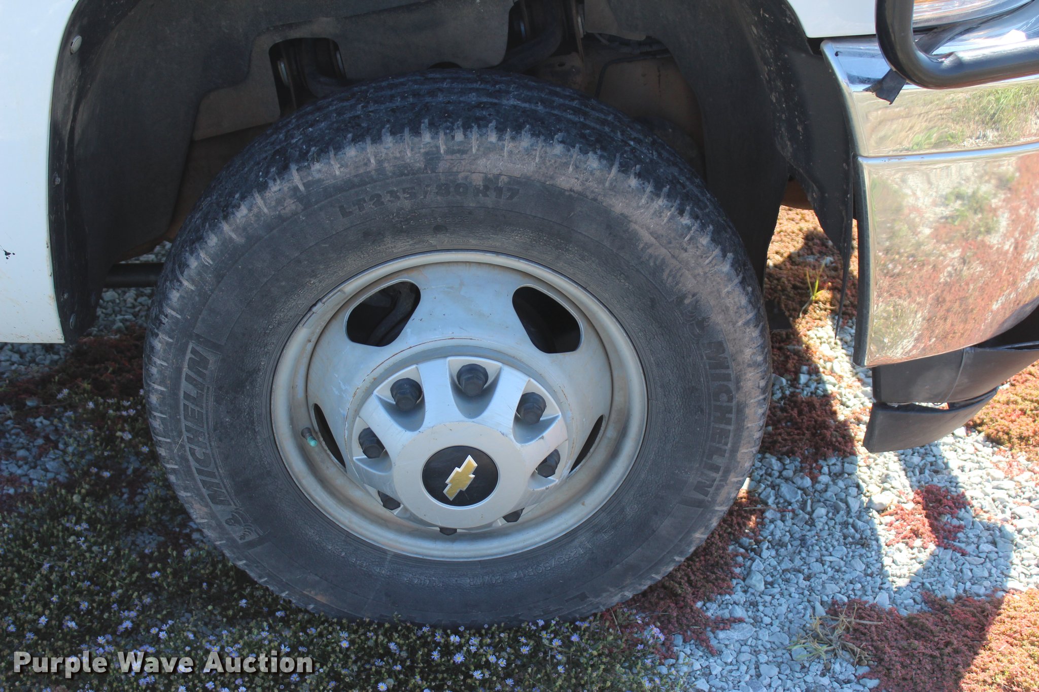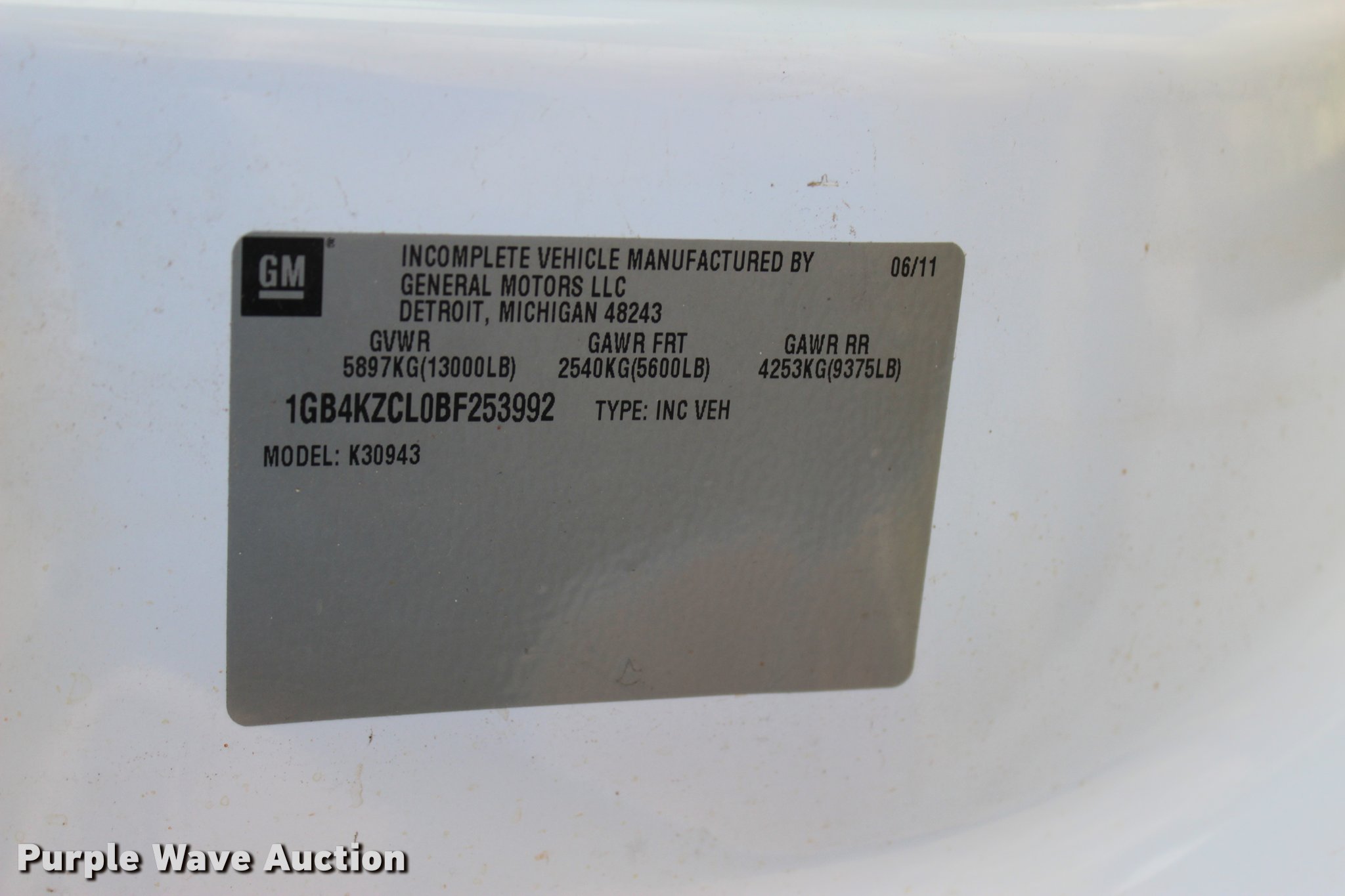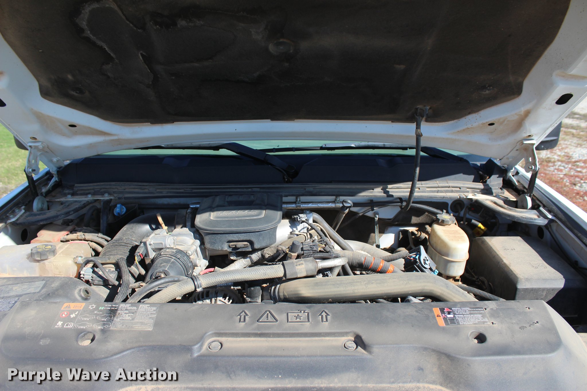Purple Wave is selling a used 3/4 or 1 Ton Pickup or Van in Oklahoma. This item is a 2011 Chevrolet Silverado 3500HD Crew Cab flatbed pickup truck with the following: 32,091 miles on odometer, 6.6L V8 OHV 32V turbo diesel engine, Automatic transmission, Four wheel drive, AC and heat, Tilt, Cruise, AM/FM/CD, Power windows, locks, and mirrors, Cloth interior, Trailer brake controller, CM 9'L x 96"W flatbed, Ranch Hand grill guard, Front tow hook, Receiver hitch, Gooseneck hitch, Trailer wiring, LT235/80R17 tires, Unit# 03