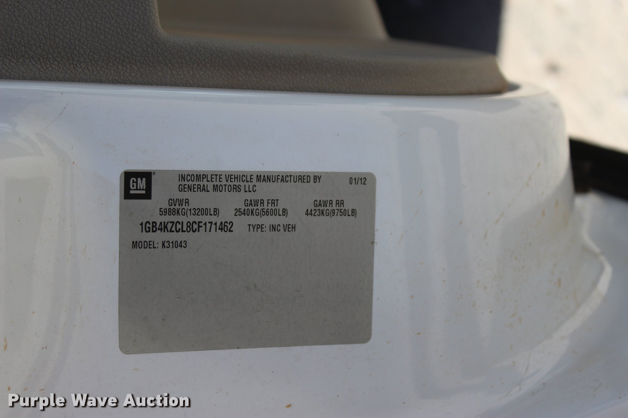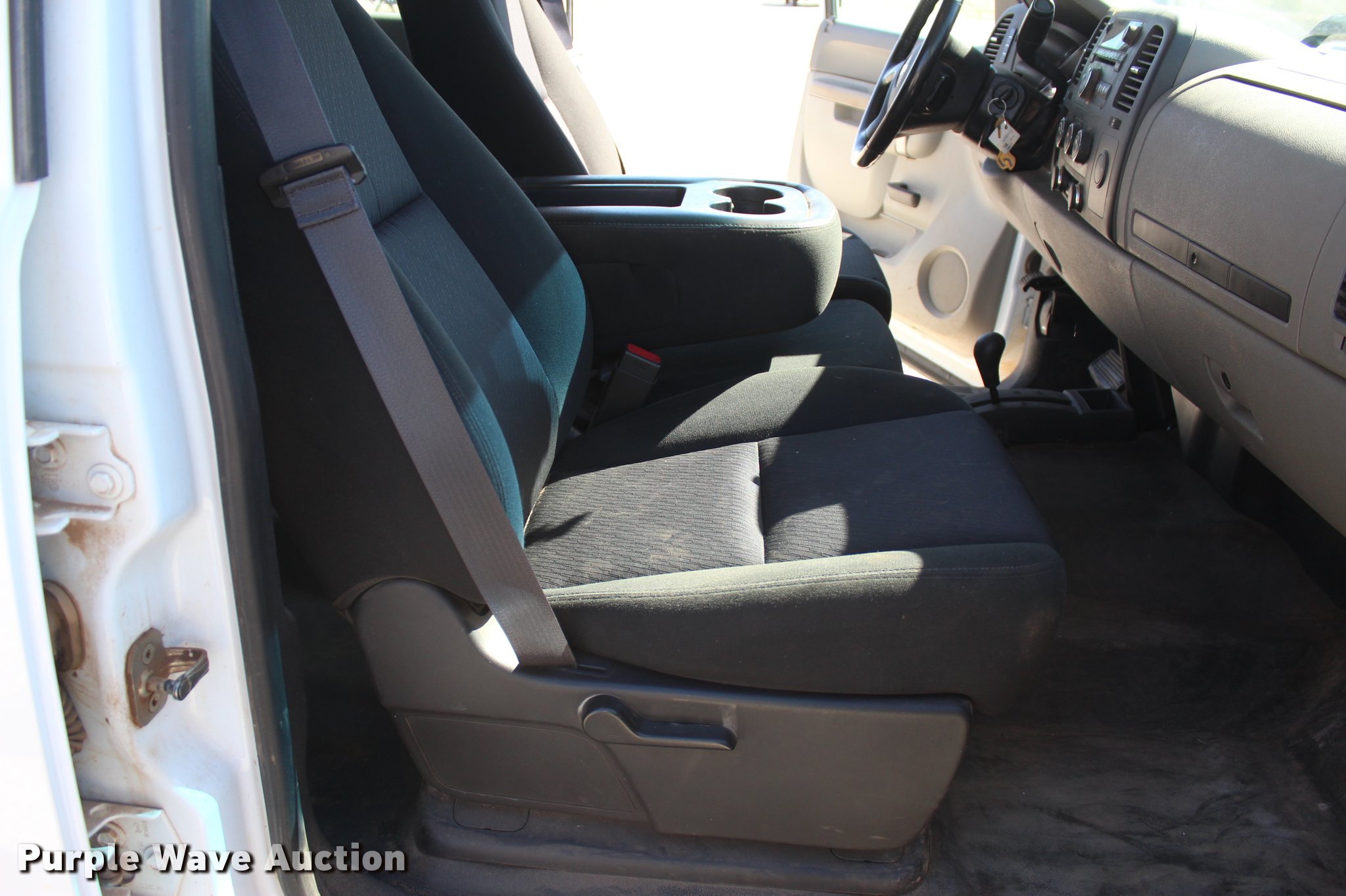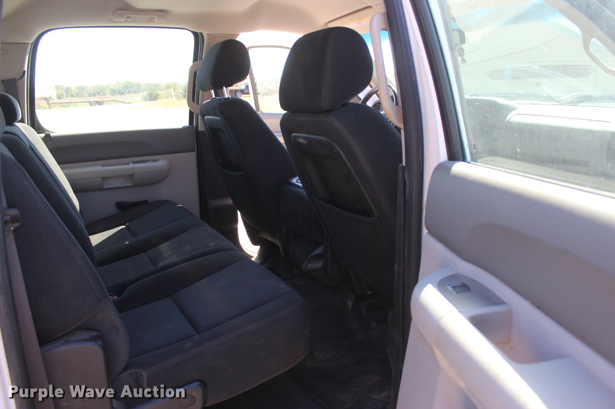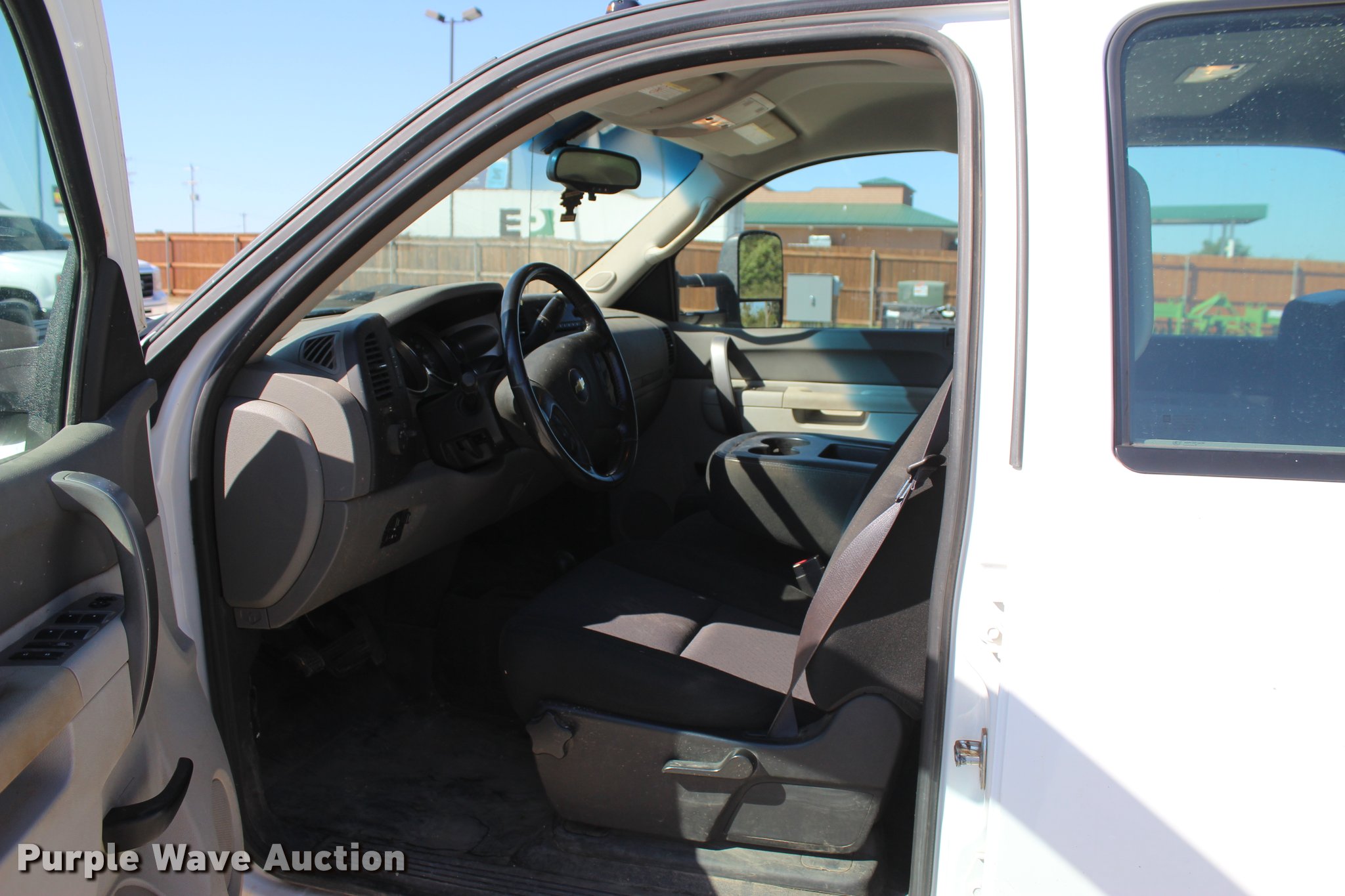 Purple Wave is selling a used 3/4 or 1 Ton Pickup or Van in Oklahoma. This item is a 2012 Chevrolet Silverado 3500HD Crew Cab flatbed pickup truck with the following: 65,240 miles on odometer, 2,131 hours on meter, 6.6L V8 OHV 32V turbo diesel engine, Automatic transmission, Four wheel drive, AC and heat, Tilt, Cruise, AM/FM/CD, Power windows, locks, and mirrors, Cloth interior, Trailer brake controller, CM 9'L x 96"W flatbed, Stake side pockets, Toolboxes, Delta 100 gallon fuel tank, GPI pump, Hose, Nozzle, Ranch Hand grill guard, Receiver hitch, Gooseneck hitch, Trailer wiring, LT235/80R17 tires, Unit# 01