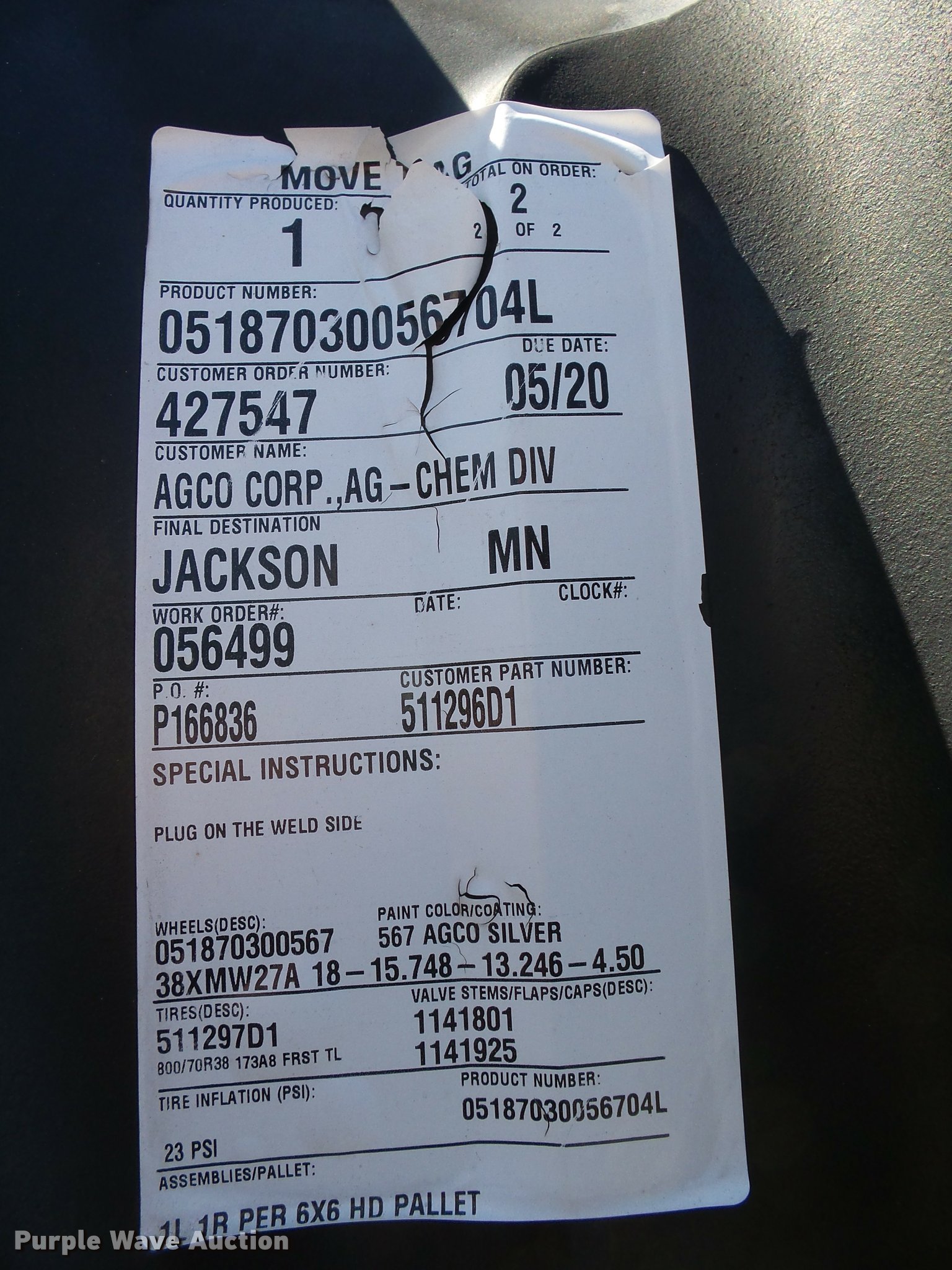 (8) Firestone 800/70R38 tires. Unused. AGCO. 202 Industrial Park. Jackson, MN 56143