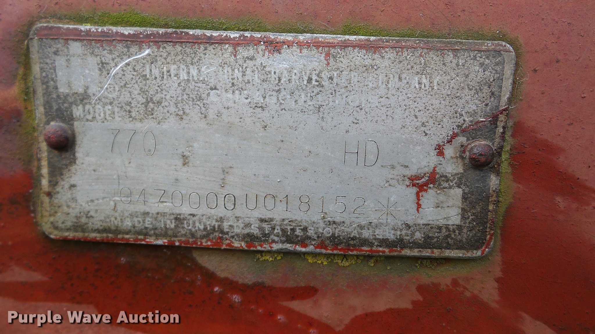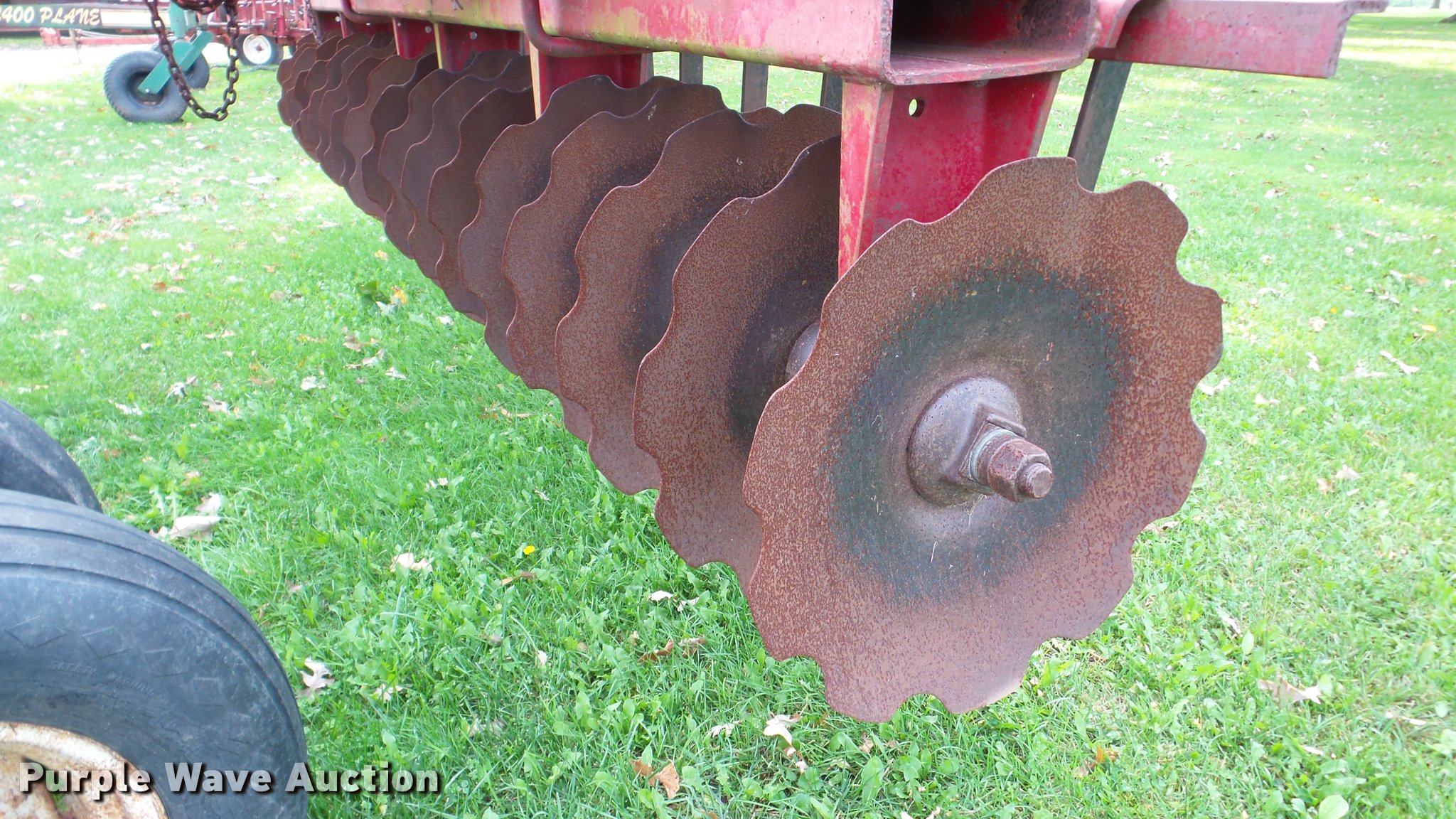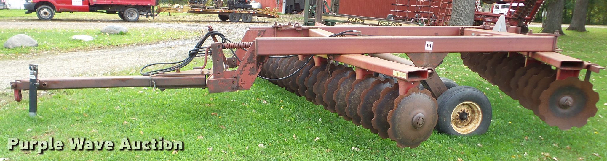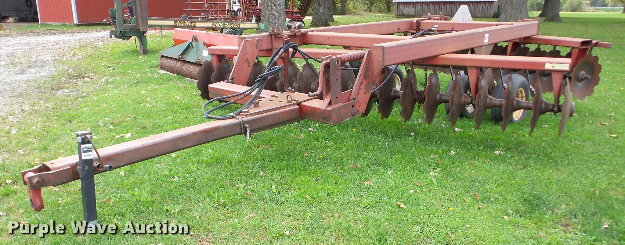 Purple Wave is selling a used Disk in Illinois. This item is a International 770 off-set disk with the following: 15'W, 24.5" diameter blades, Hydraulic lift, Pin hitch, 11L-15 tires, Serial 0470000V018152