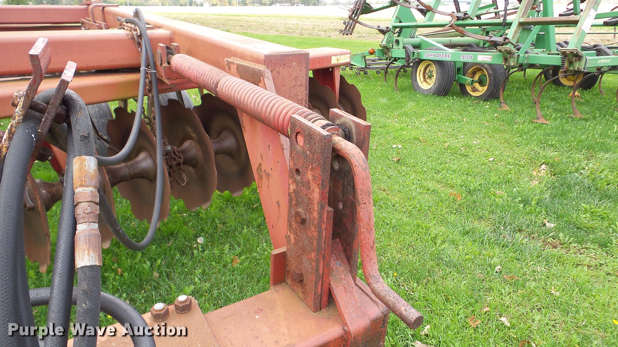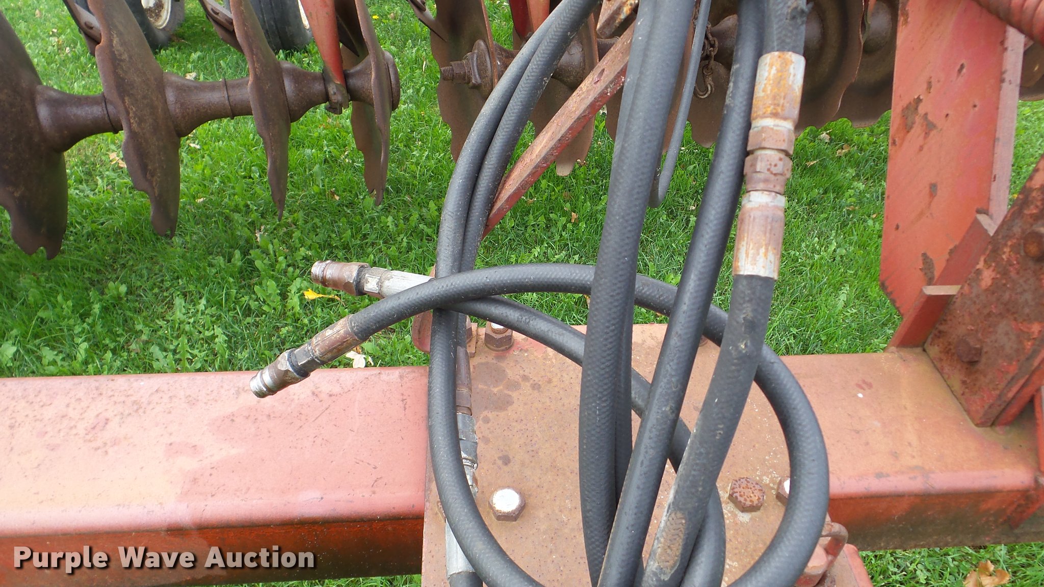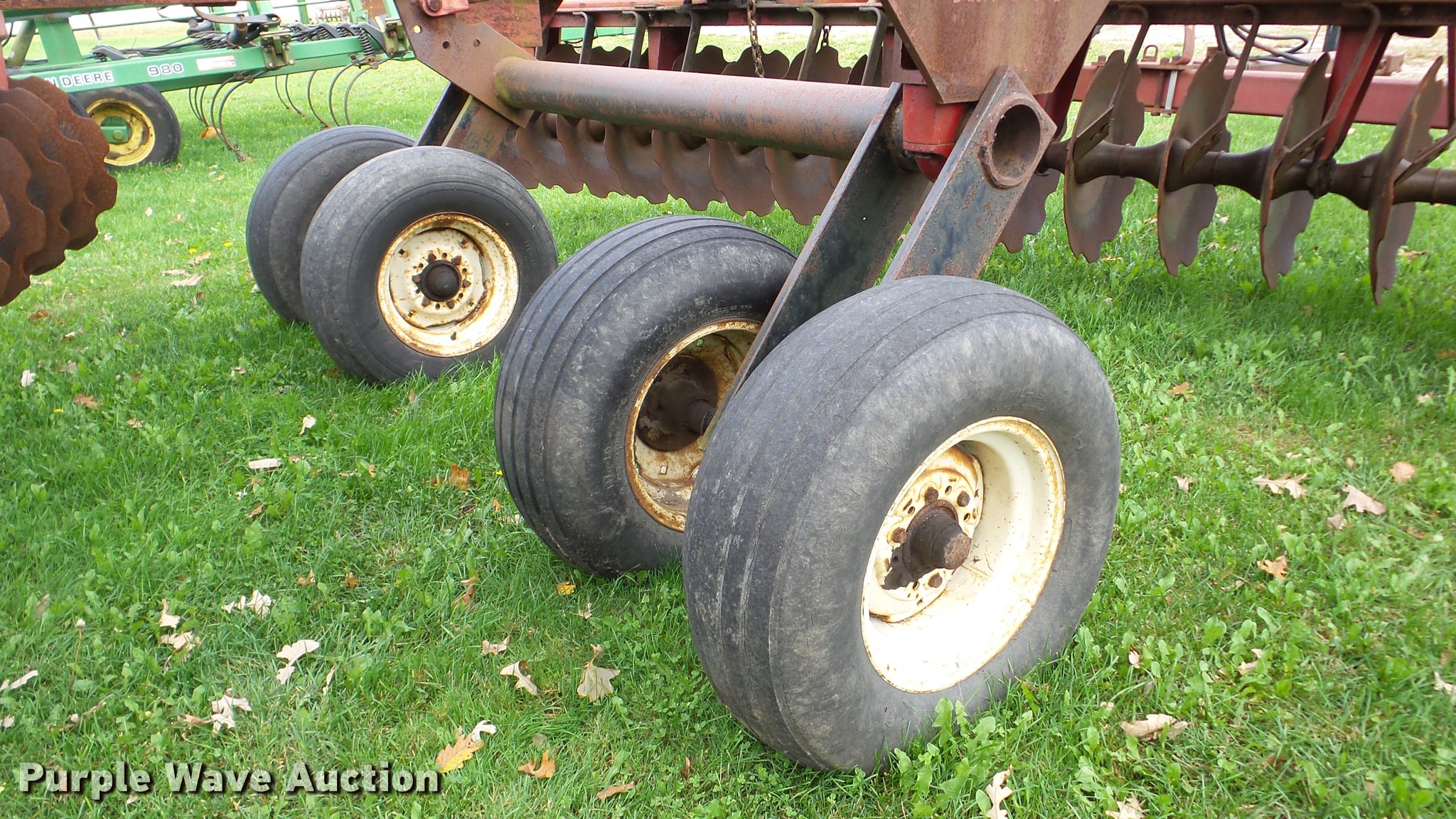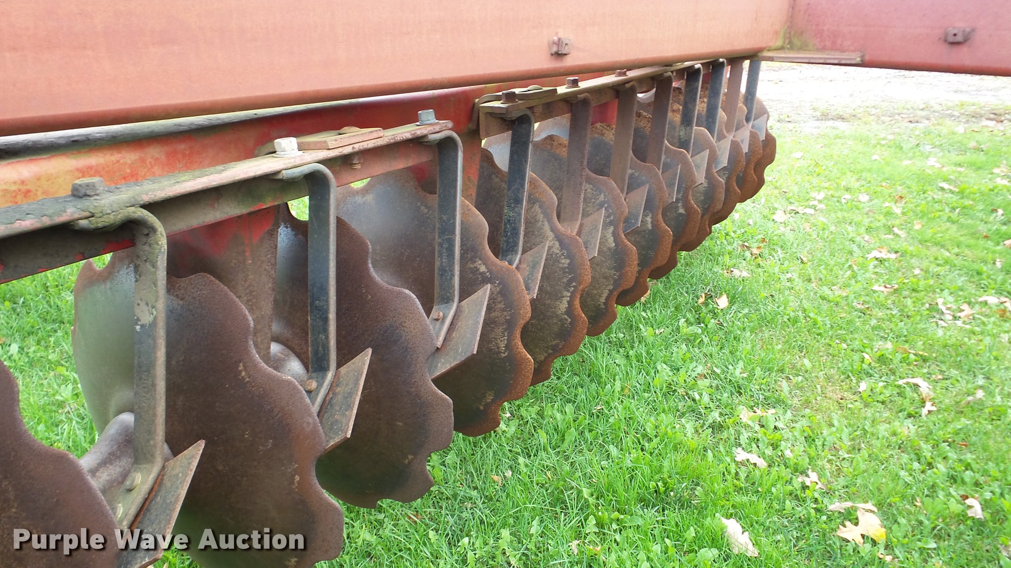 Purple Wave is selling a used Disk in Illinois. This item is a International 770 off-set disk with the following: 15'W, 24.5" diameter blades, Hydraulic lift, Pin hitch, 11L-15 tires, Serial 0470000V018152