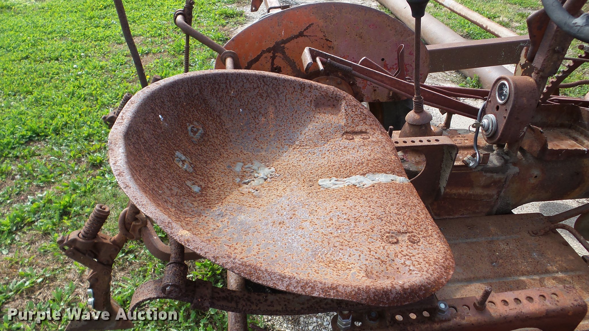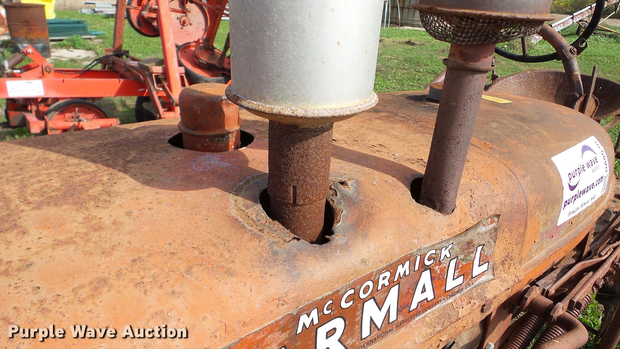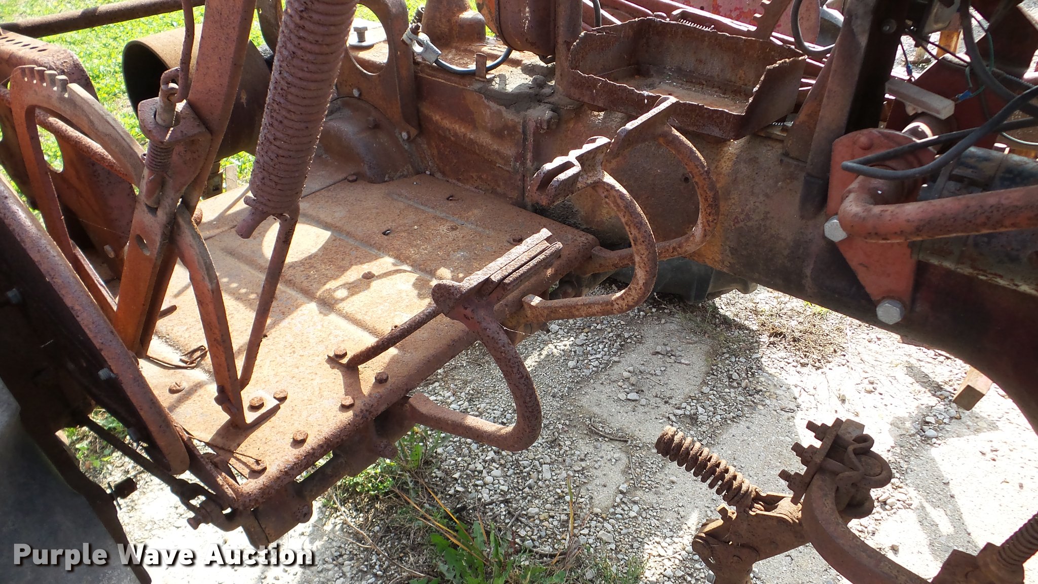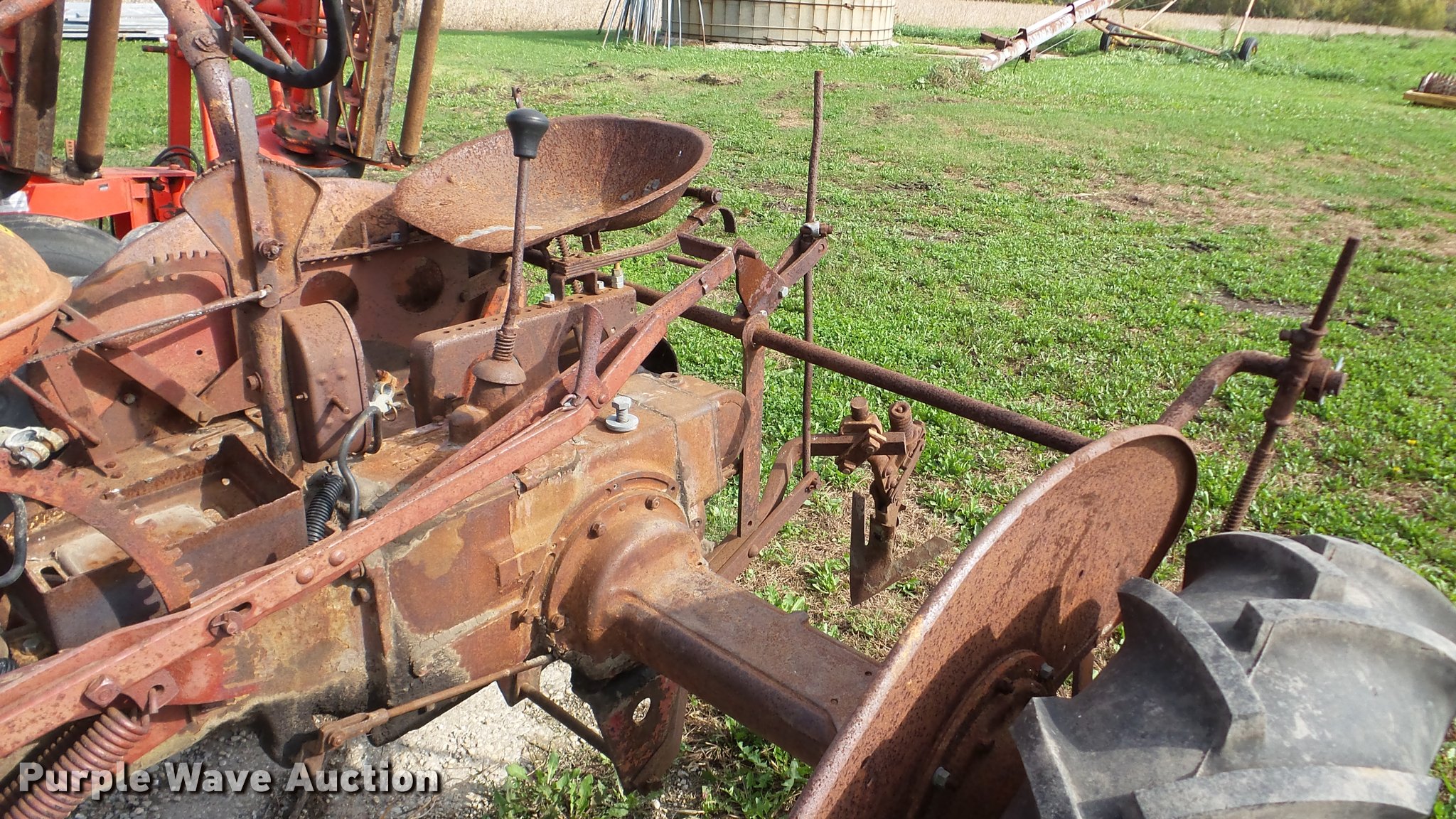 Purple Wave is selling a used Tractor in Illinois. This item is a Farmall B tractor with the following: Four cylinder gas engine, Manual transmission, 4F-1R gears, 540 PTO, 6'W cultivator, 4.00-15 front tires, 11.2-24 rear tires, Serial 22880