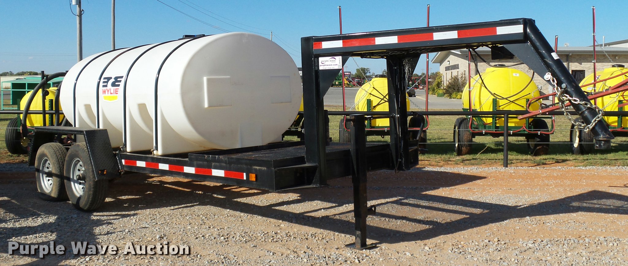 Purple Wave is selling a used Tank Trailer in Oklahoma. This item is a 2014 Wylie nurse tank trailer with the following: 25'L x 100"W overall, 18'L x 75"W deck, 1,250 gallon poly tank, John Deere FR-FP2GH chemical transfer pump, Honda GX200 gas engine, 2" outlet, Hoses, Gooseneck hitch, Single leg landing gear, Spring suspension, Electric brakes, Tandem axle, Steel wheels, ST235/80R16 tires, GVWR 7,000 lbs, Unit# 104766