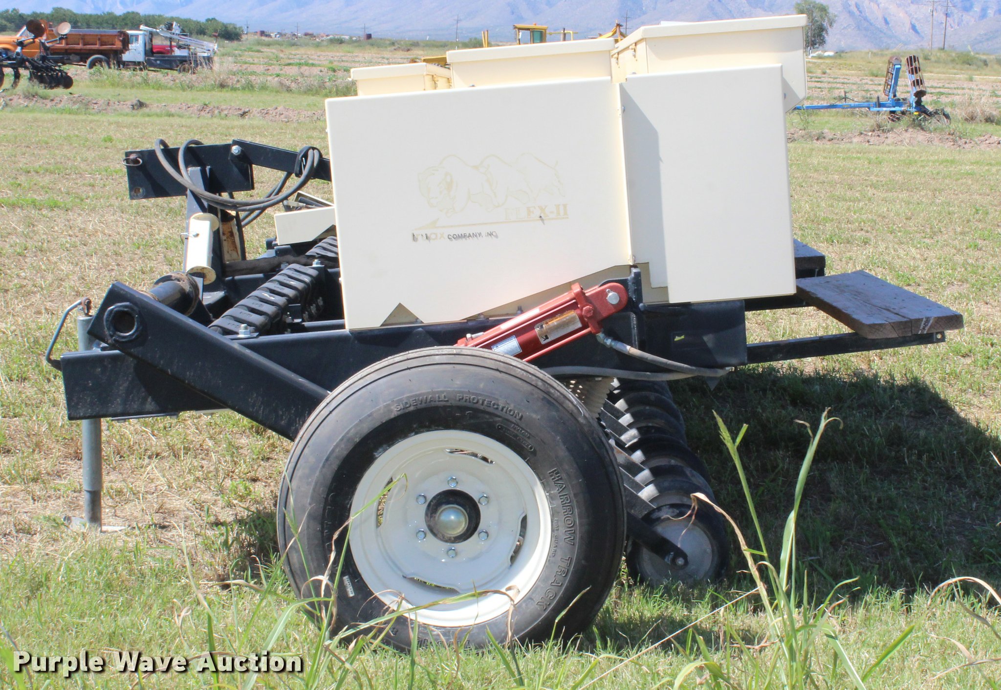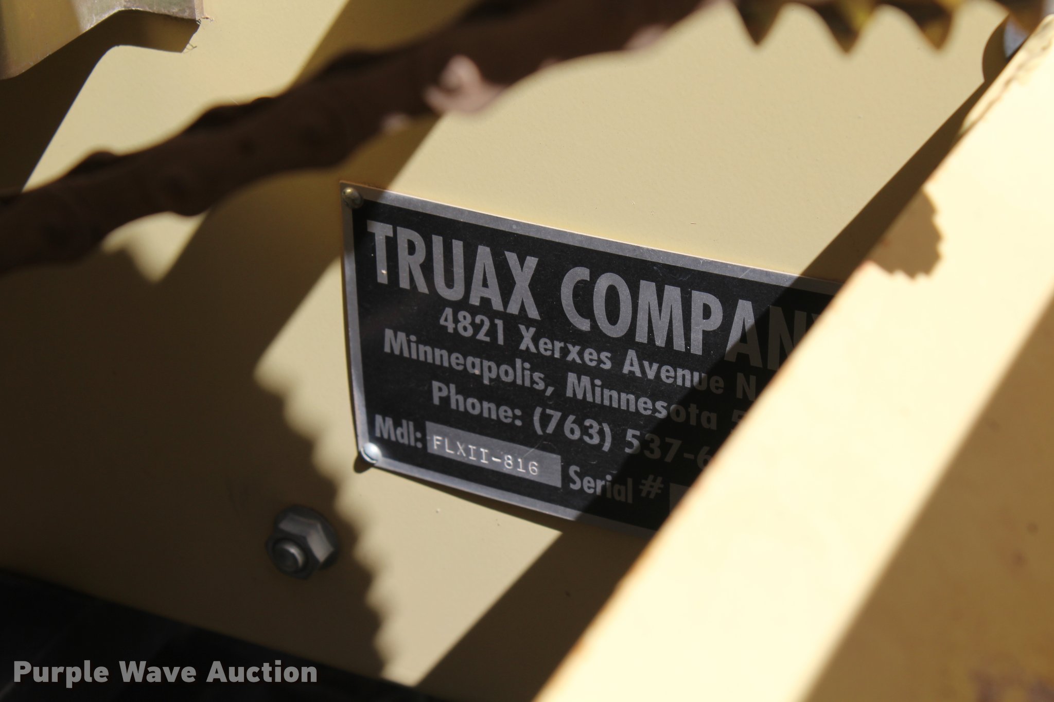 Purple Wave is selling a used Grain Drill or Seeder in New Mexico. This item is a Truax Flex-II grain drill with the following: Model FLXII-816, 12'W, 16 row units, 7.5" row spacing, Bulk fill system, Pneumatic down pressure, Seed firmers, Double disk openers, Single rubber closing system, Three point, (2) 6.7-15 transport tires