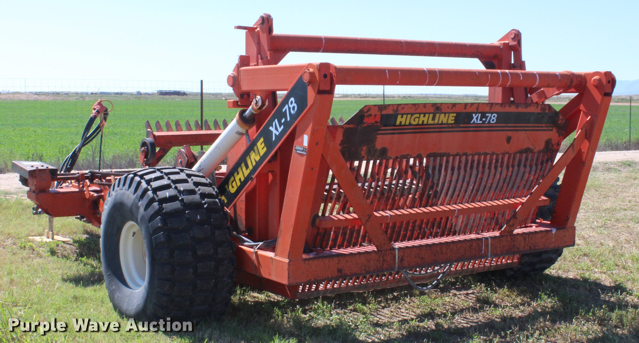 Purple Wave is selling a used Ag Equip. Other in New Mexico. This item is a Highline XL78 rock picker with the following: 11'W overall, 8'W basket, 540 PTO, 21.5L-16.1 tires, Serial 978180C