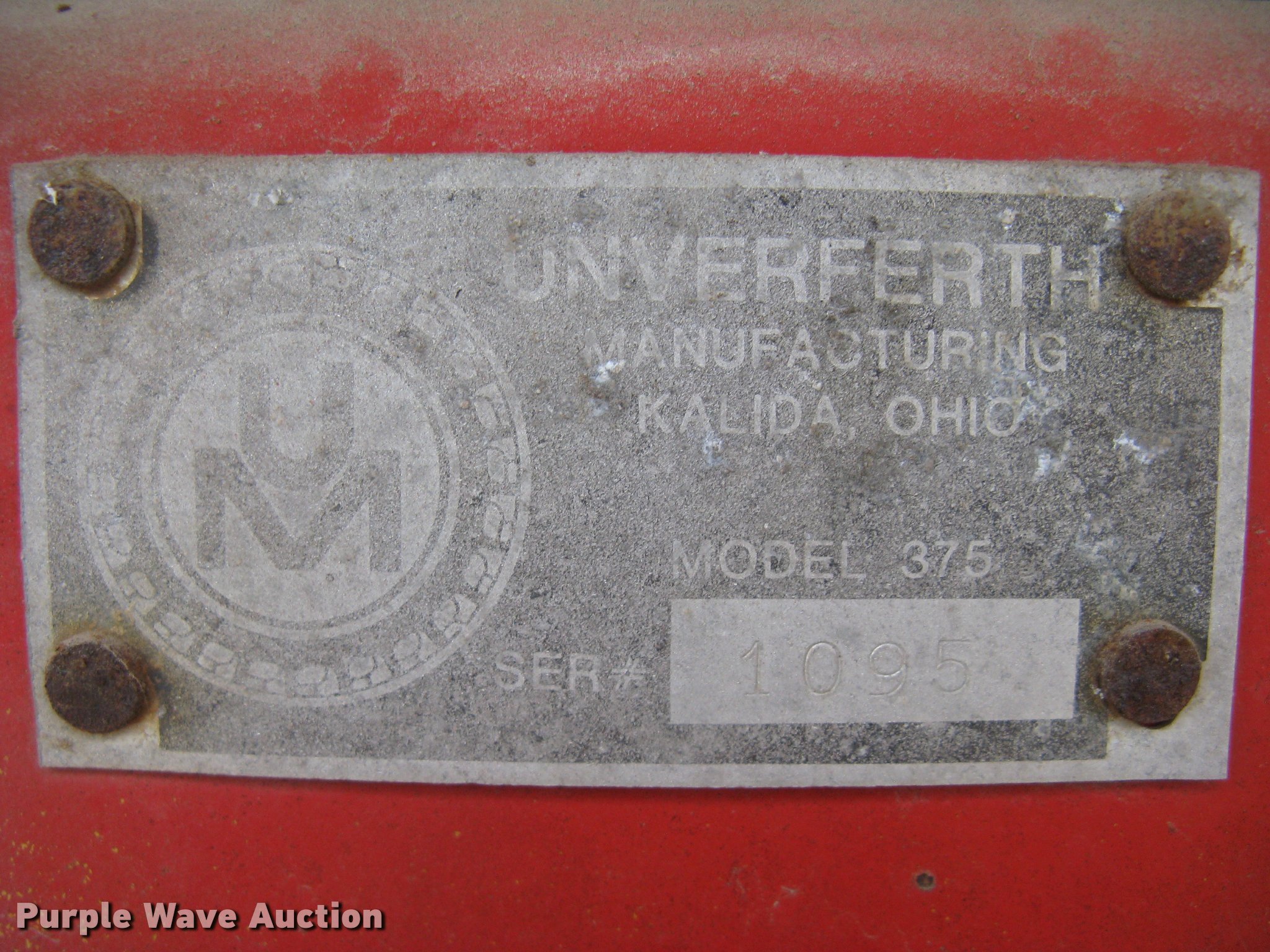 Purple Wave is selling a used Grain Cart or Gravity Wagon in Kansas. This item is a Unverferth 375 grain wagon with the following: 375 bushel capacity, Twin hopper, Independent grain gates, Side trough, Tip-top steel boards, Tarp bows, Tarp, Hutchinson unloading auger, 15'L x 6", Hydraulic driven, E-Z Trail 1074 running gear, Extended frame, Telescoping tongue, 12.5L-15 tires, Serial 1074E051906Z-6478, Rust, Serial 1095