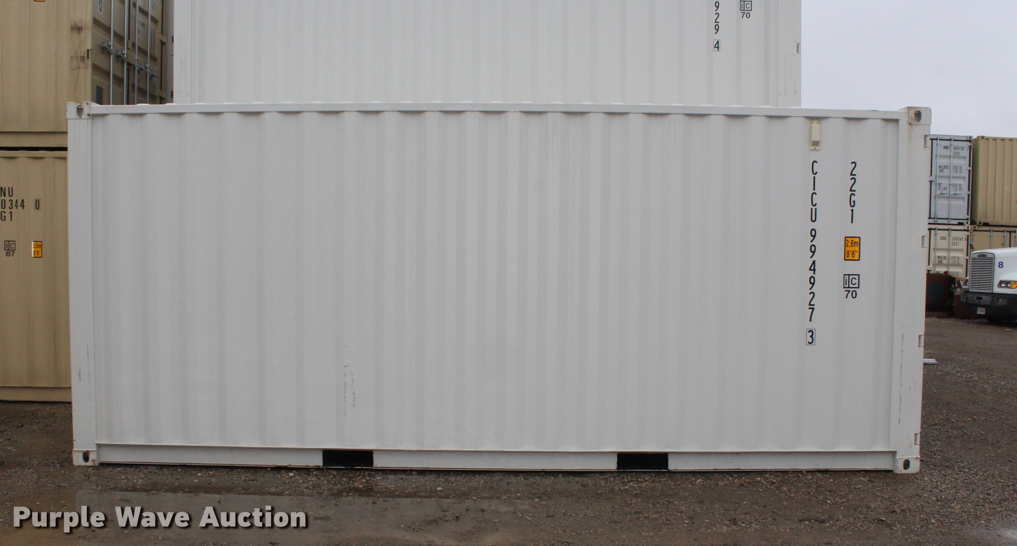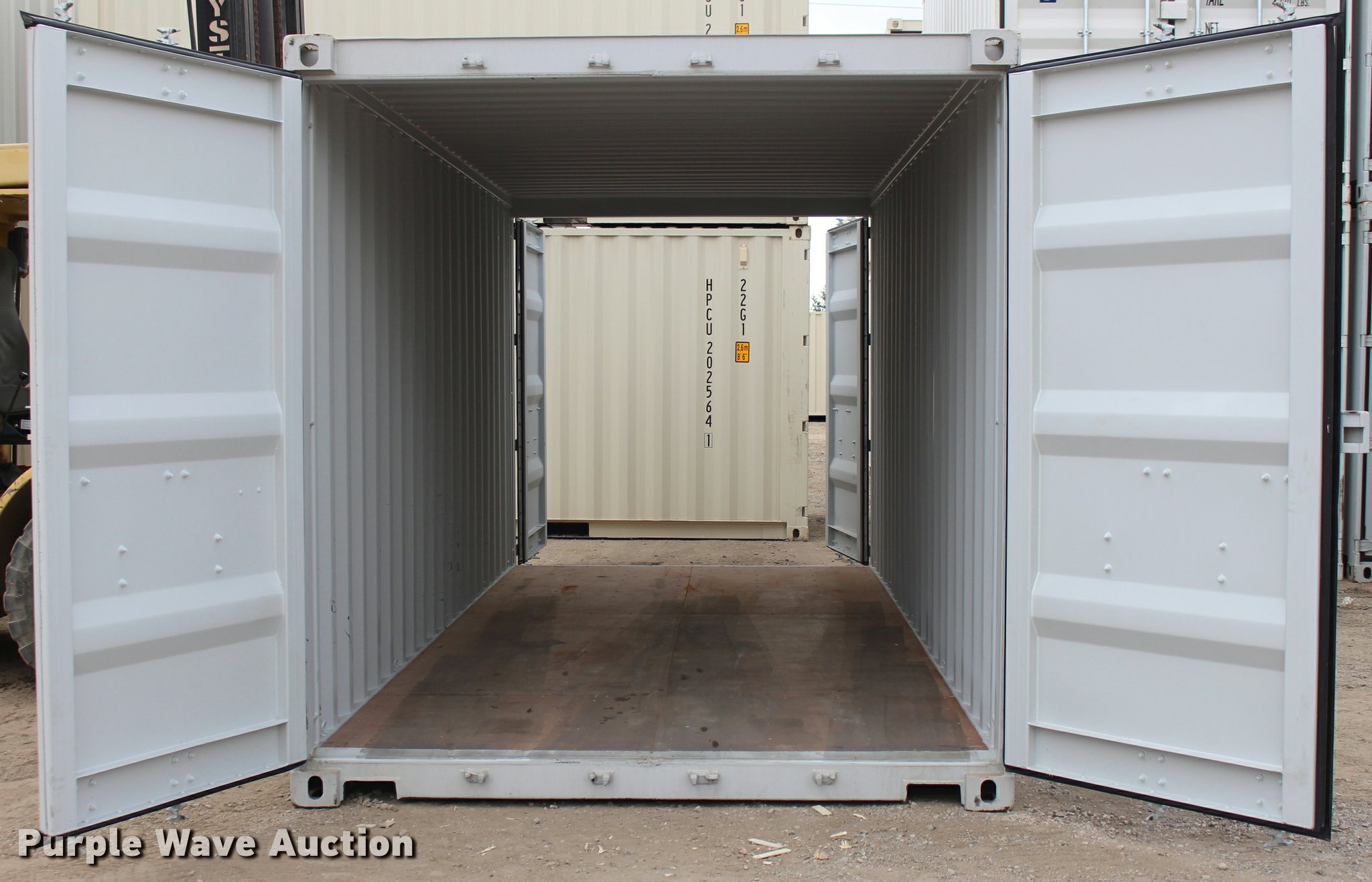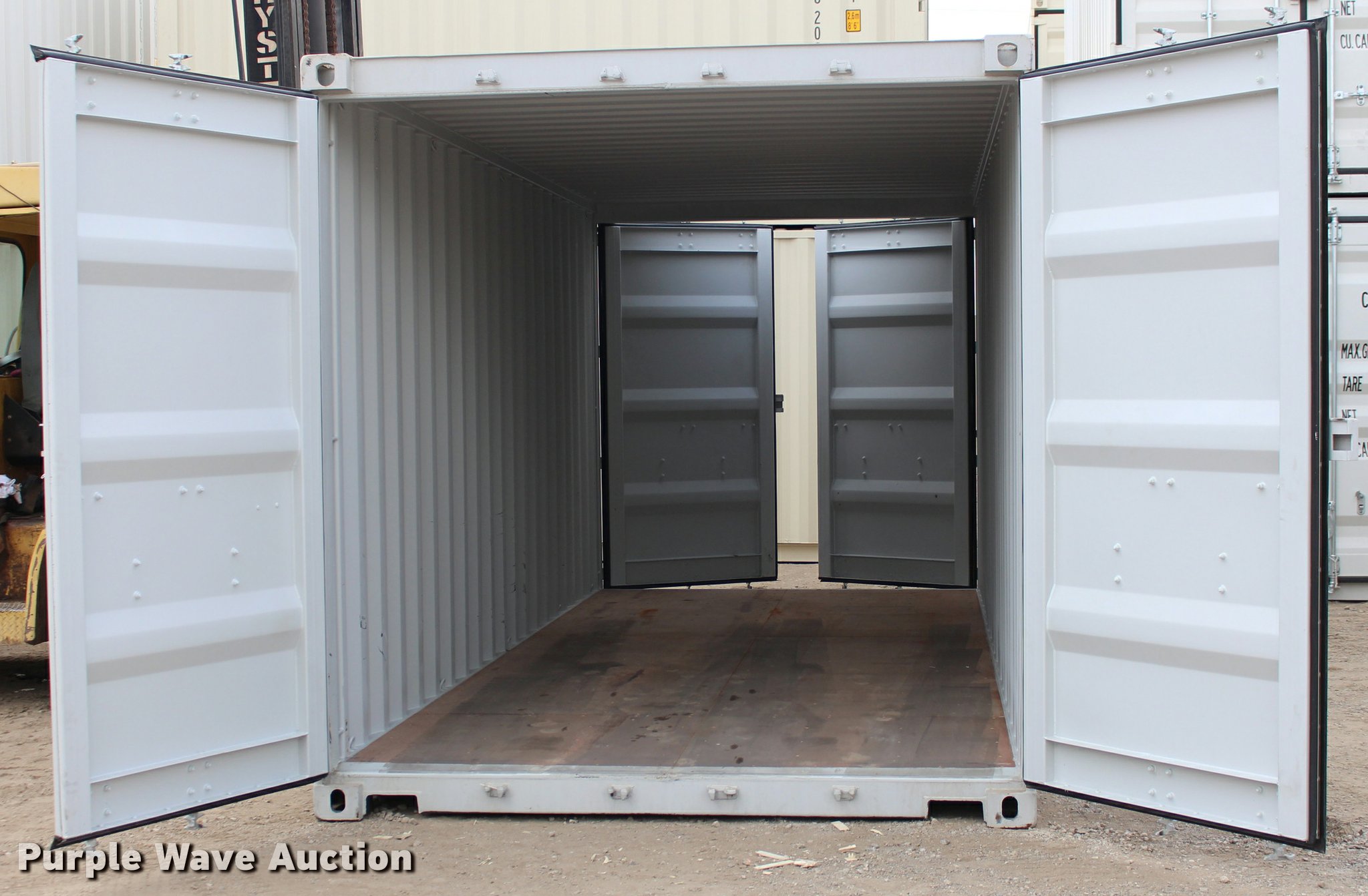 Purple Wave is selling a used Storage or Shipping Container in Texas. This item is a 2015 One Trip Container storage container with the following: 20'L x 8'W x 8.5'H, Double doors on both ends, Marine treated wood deck, 1 1/8" thick, Unused