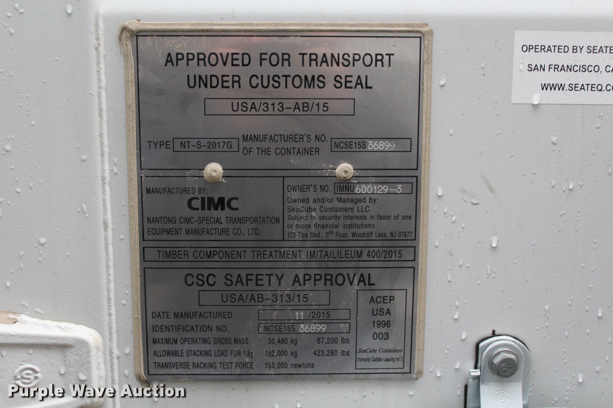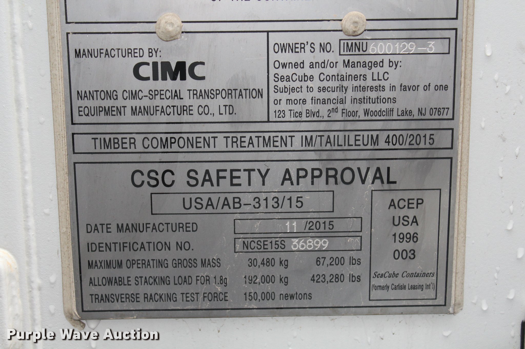 This 2015 One Trip Container storage container will sell to the highest bidder regardless of price.