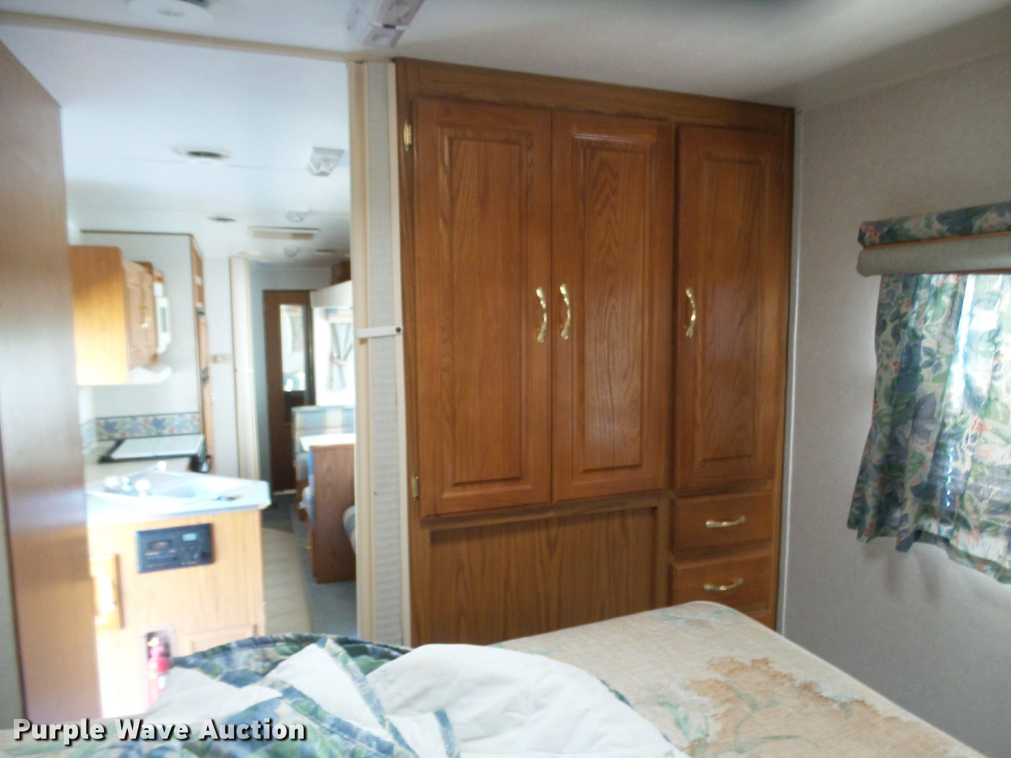 Purple Wave is selling a used RV in Kansas. This item is a 2000 Jayco Eagle camper with the following: 29'L x 96"W, AM/FM/cassette, Wedgewood three burner stove, Coleman Mack AC and heat, Panasonic microwave, Norcold refrigerator/freezer, Care Free BN3N4 awning, Fifth wheel plate, Tandem axle, ST225/75R15 tires, GVWR 9,995 lbs, Roof damage, Water damage, Insurance salvage, Unit# A258843P01