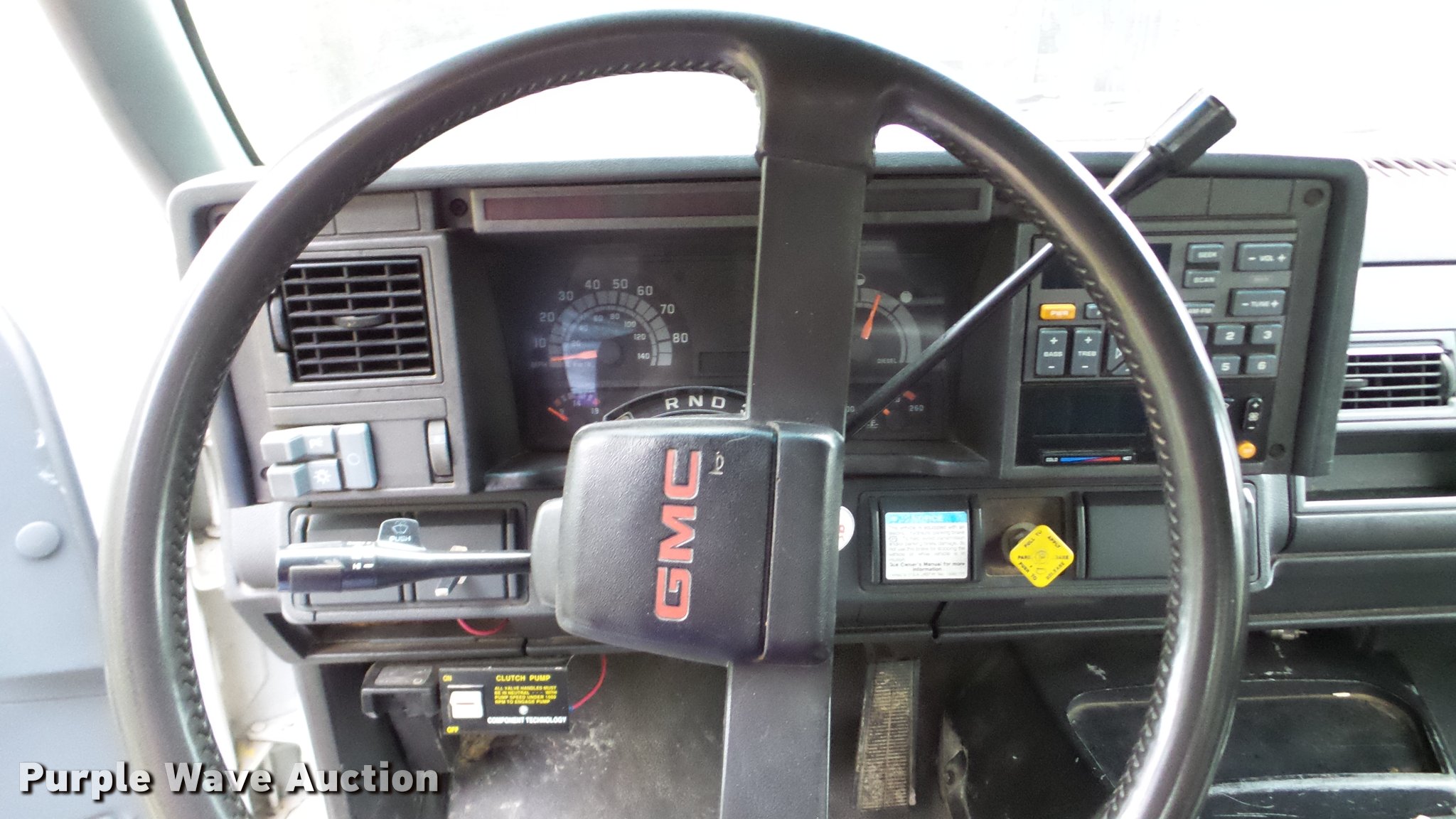 Purple Wave is selling a used Construction Dump Truck in Illinois. This item is a 1995 GMC TopKick dump truck with the following: 204,744 miles on odometer, Caterpillar 3116 6.6L L6 turbo diesel engine, Automatic transmission, Single axle, AC and heat, AM/FM, Plow and spreader controls, PTO, Rugby steel dump bed, 12'L x 8'W, 12" side height, 10" to 6" side board height, Manual end gate, Single fuel tank, Receiver hitch, Spring suspension, Hydraulic brakes, 163" wheelbase, 245/70R19.5 tires, Unit smokes when cold started