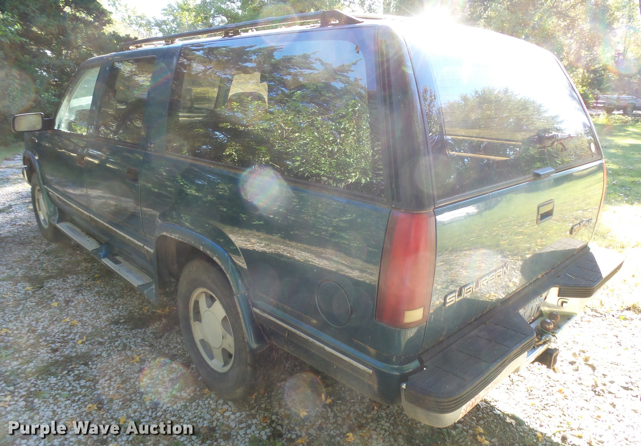 Purple Wave is selling a used Passenger Vehicle in Kansas. This item is a 1992 GMC Suburban 1500 SUV with the following: 208,803 miles on odometer, 5.7L V8 OHV 16V gas engine, Automatic transmission, Four wheel drive, AC and heat, Tilt, Cruise, AM/FM/CD, Power windows, locks, mirrors, and seat, Cloth interior, Front tow hooks, Running boards, Receiver hitch, Trailer wiring, 245/75R16 tires, Windshield cracked, Paint peeling, AC needs charged
