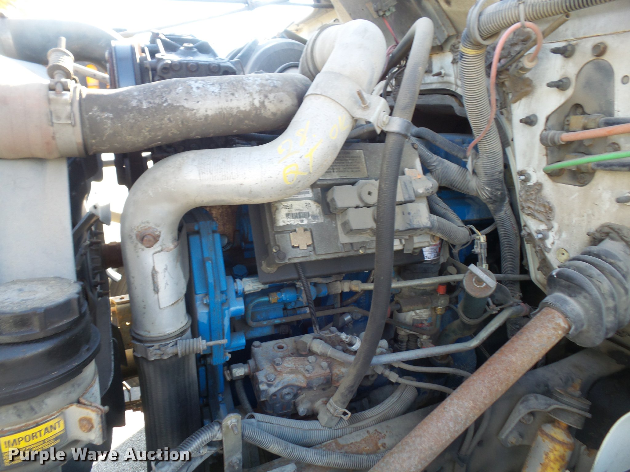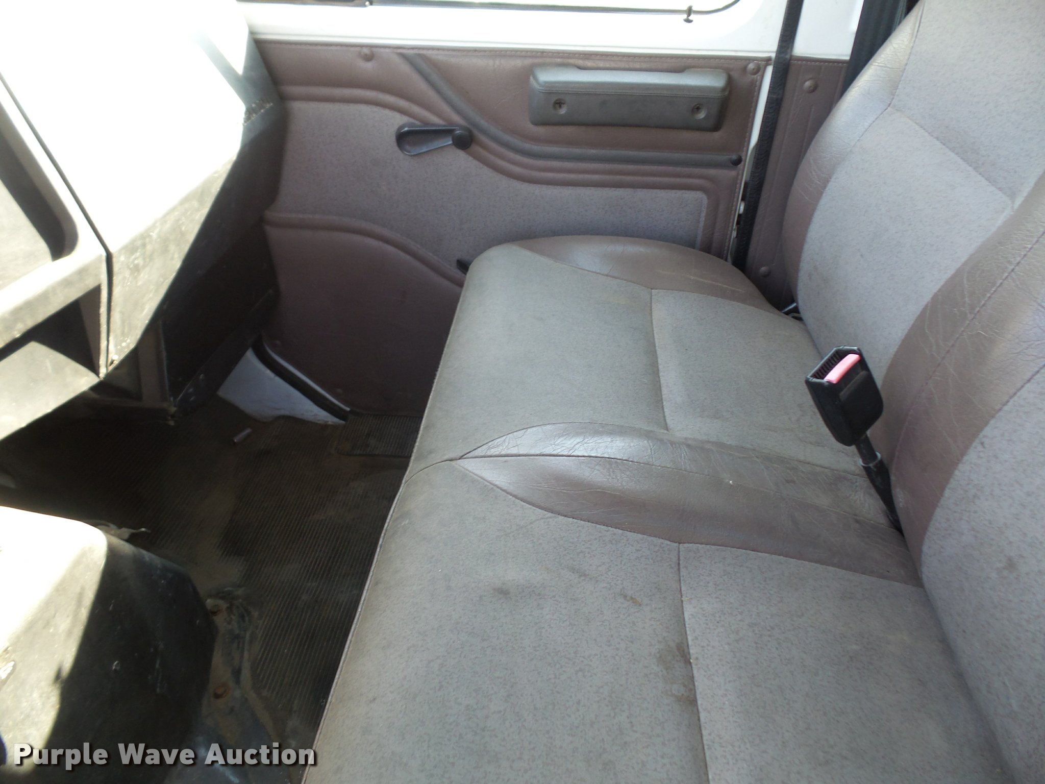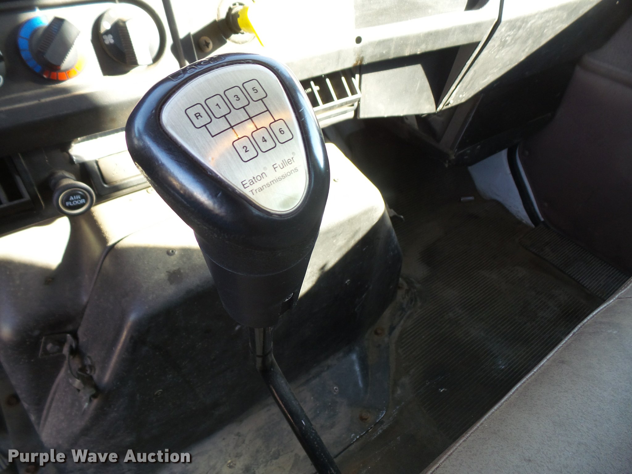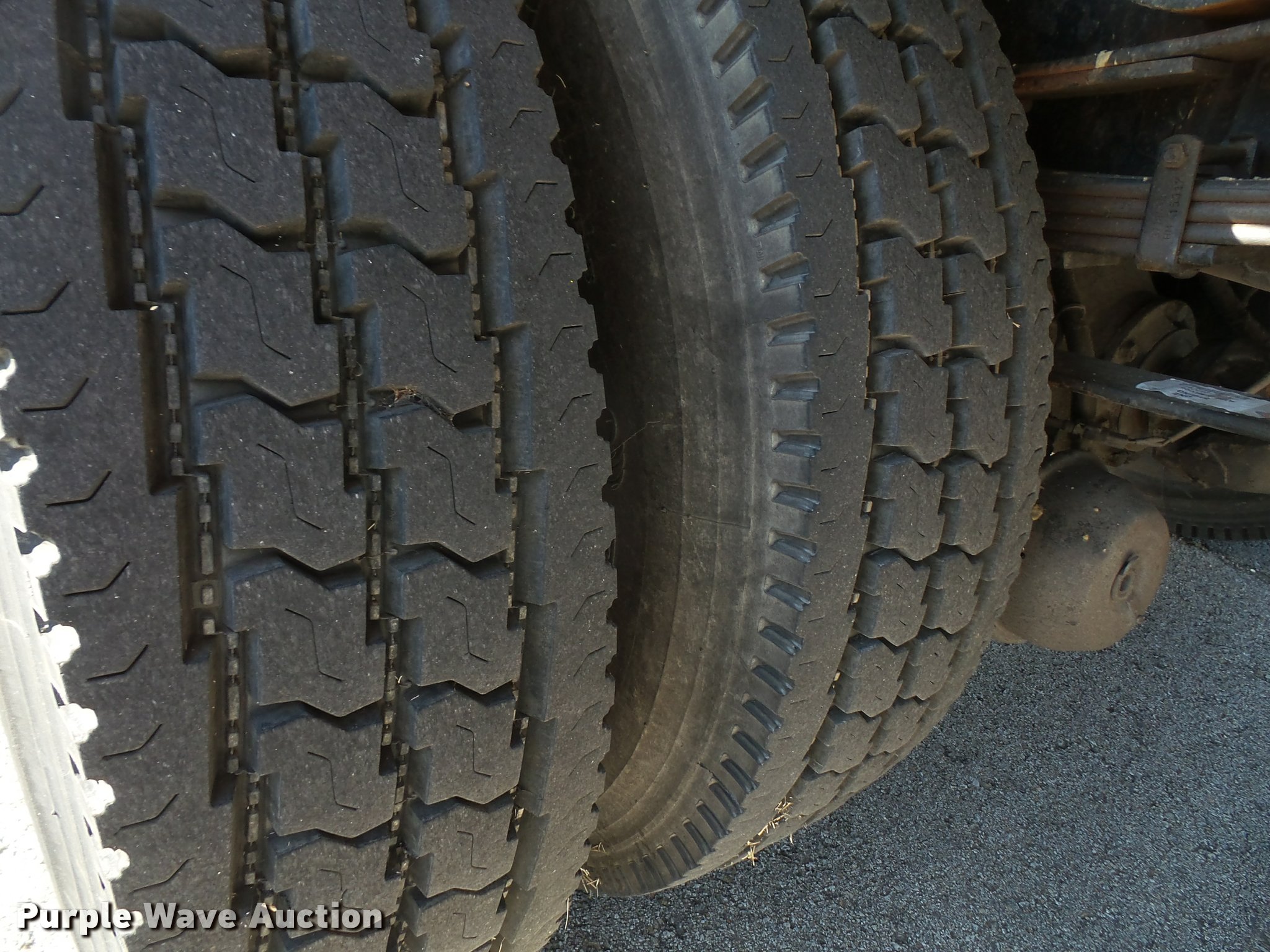 Purple Wave is selling a used Flat Bed Truck in Kansas. This item is a 2000 International 4900 flatbed truck with the following: 296,162 miles on odometer, International DT466 7.6L L6 turbo diesel engine, Eaton Fuller six speed manual transmission, Single axle, AC and heat, AM/FM, Air suspension seat, 21'L x 96"W flatbed, Steel floor, Stake side pockets, 48" removable side boards, Headache rack, (5) ratchet tie-down straps, One strap missing, Toolbox, Tommy gate end lift gate, 1,600 lbs maximum lift capacity,, Dual fuel tanks, Spring suspension, Air brakes, 11R22.5 tires