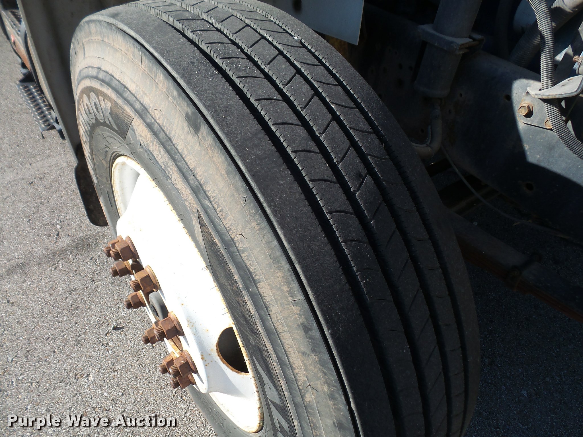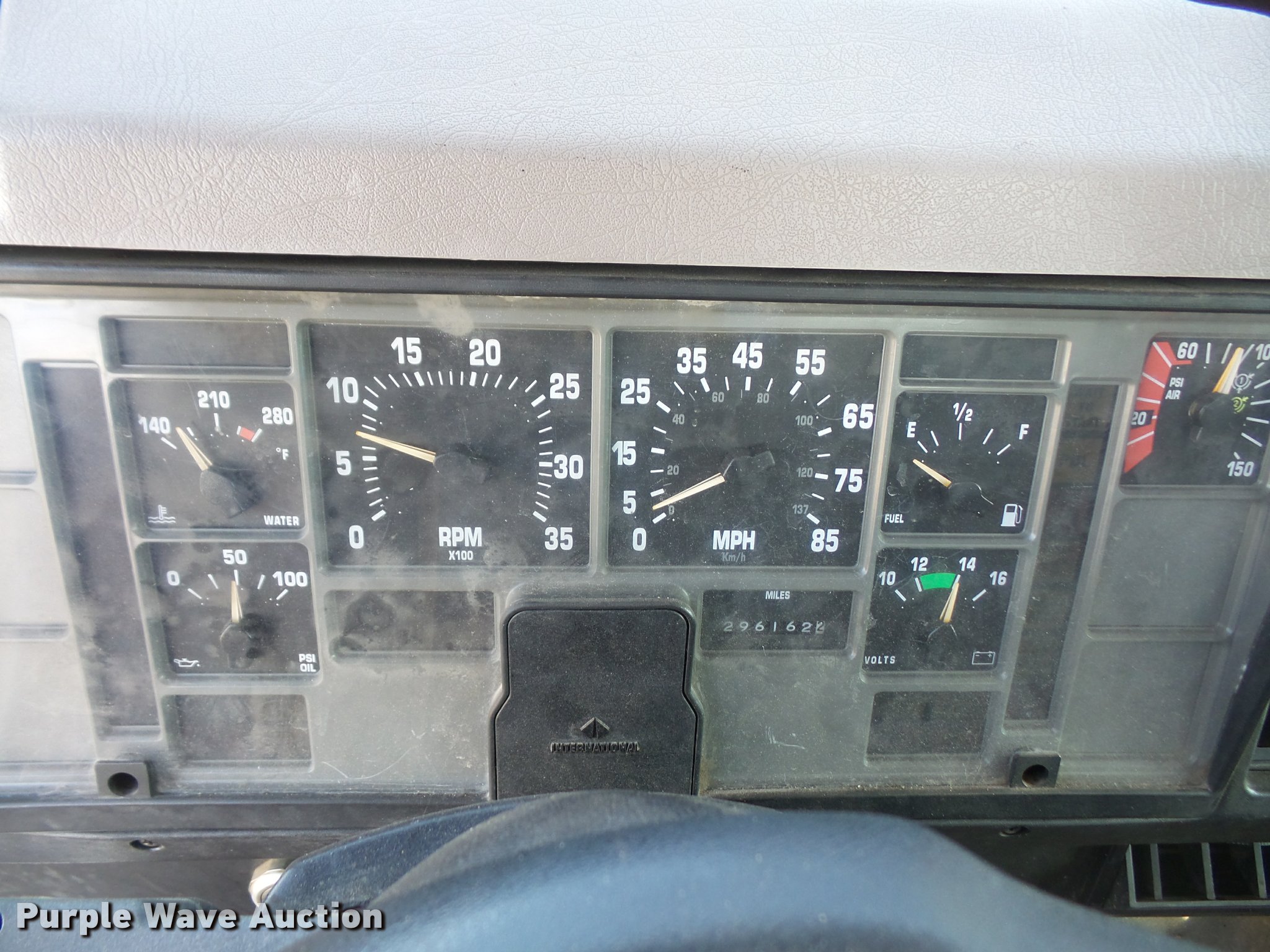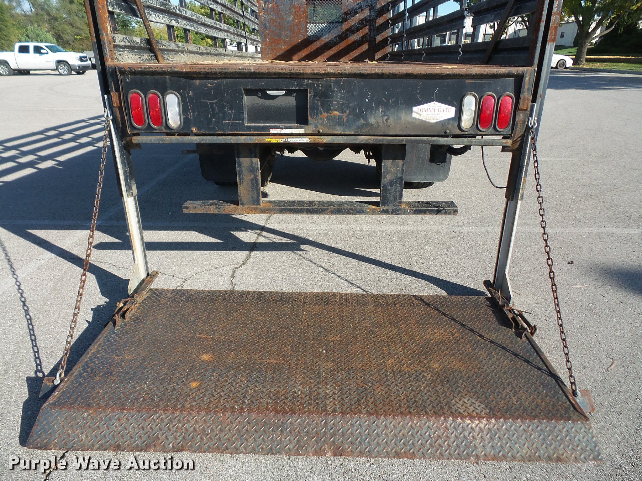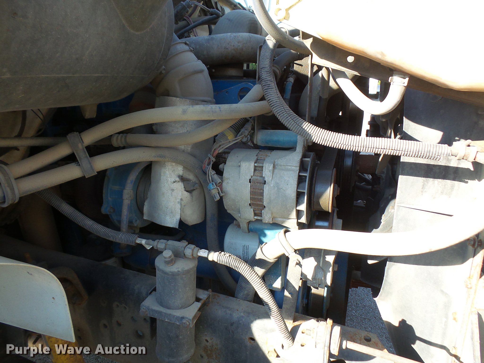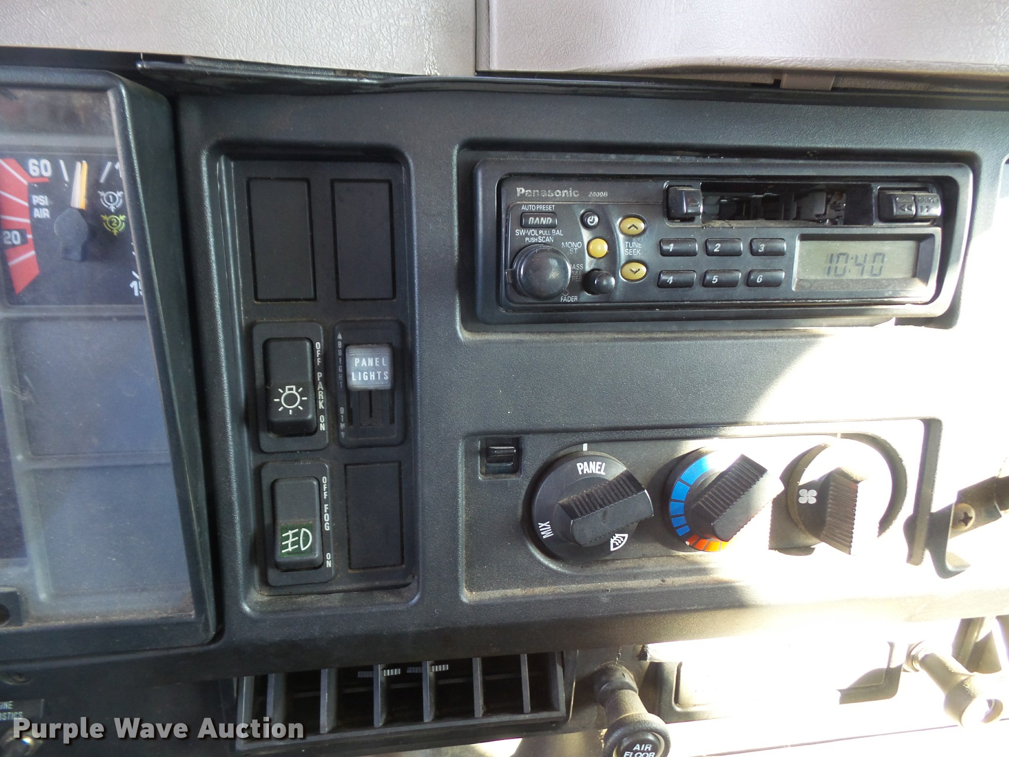 Purple Wave is selling a used Flat Bed Truck in Kansas. This item is a 2000 International 4900 flatbed truck with the following: 296,162 miles on odometer, International DT466 7.6L L6 turbo diesel engine, Eaton Fuller six speed manual transmission, Single axle, AC and heat, AM/FM, Air suspension seat, 21'L x 96"W flatbed, Steel floor, Stake side pockets, 48" removable side boards, Headache rack, (5) ratchet tie-down straps, One strap missing, Toolbox, Tommy gate end lift gate, 1,600 lbs maximum lift capacity,, Dual fuel tanks, Spring suspension, Air brakes, 11R22.5 tires