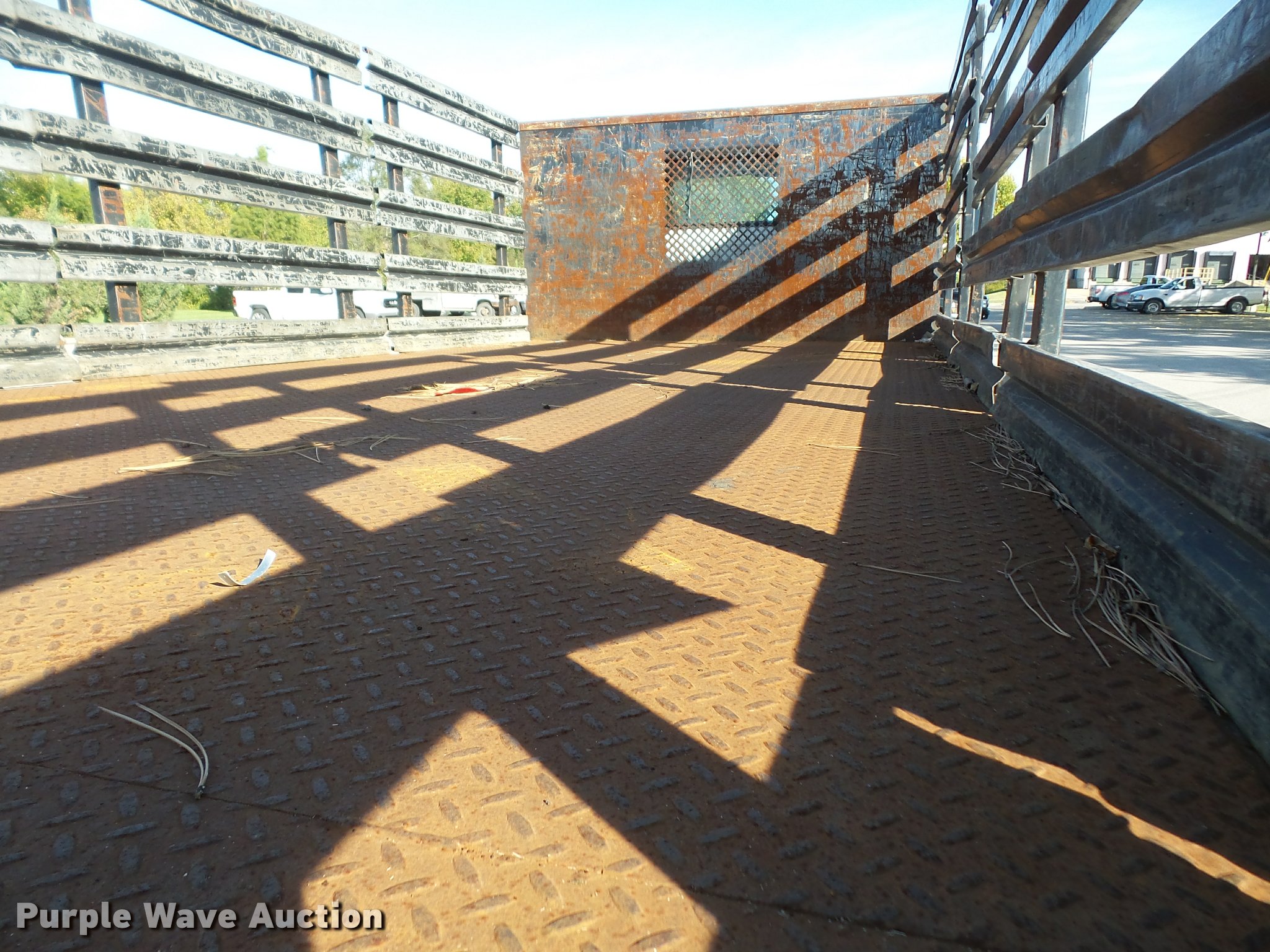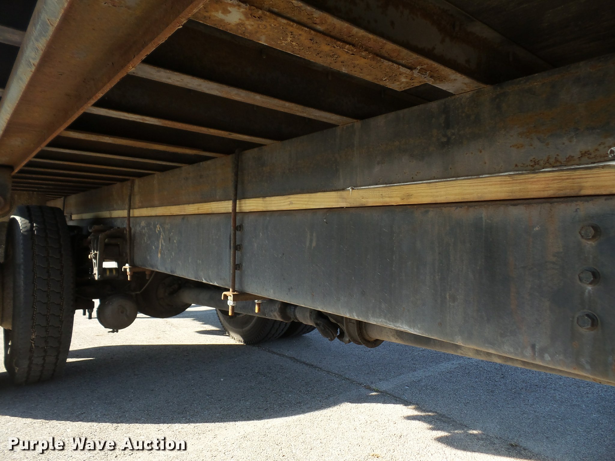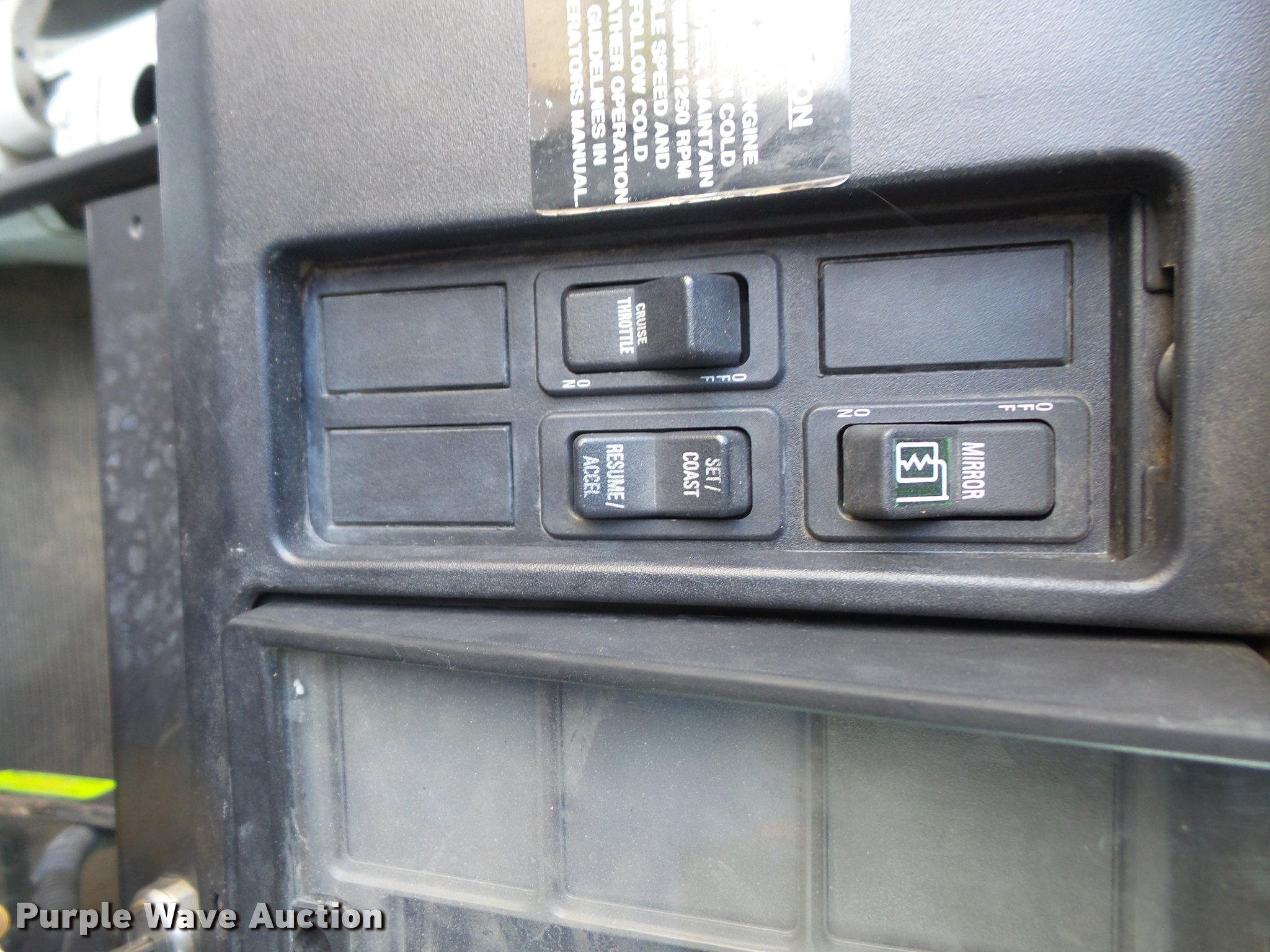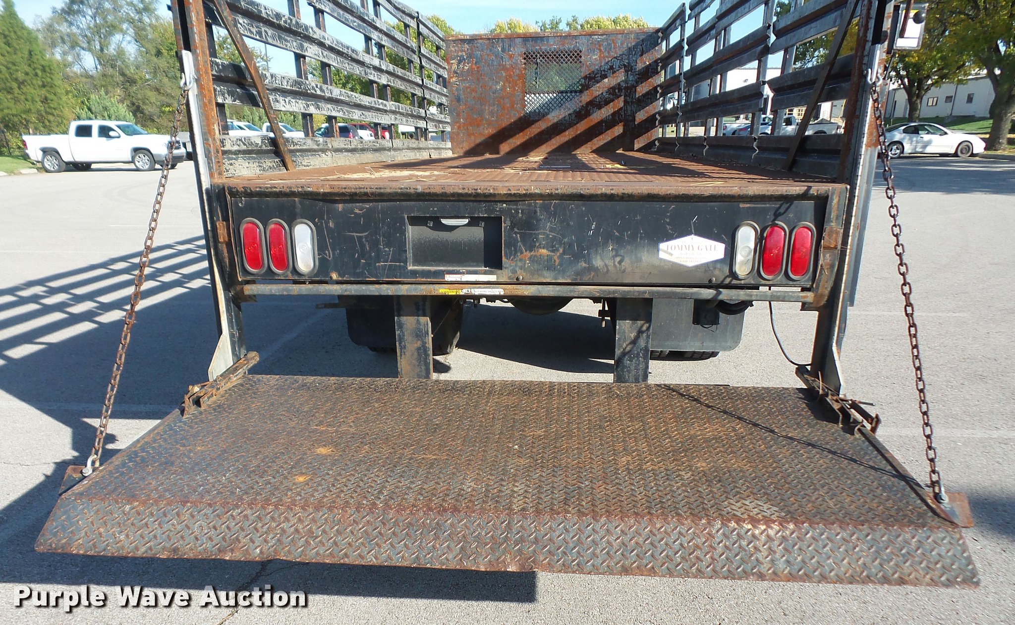 Purple Wave is selling a used Flat Bed Truck in Kansas. This item is a 2000 International 4900 flatbed truck with the following: 296,162 miles on odometer, International DT466 7.6L L6 turbo diesel engine, Eaton Fuller six speed manual transmission, Single axle, AC and heat, AM/FM, Air suspension seat, 21'L x 96"W flatbed, Steel floor, Stake side pockets, 48" removable side boards, Headache rack, (5) ratchet tie-down straps, One strap missing, Toolbox, Tommy gate end lift gate, 1,600 lbs maximum lift capacity,, Dual fuel tanks, Spring suspension, Air brakes, 11R22.5 tires