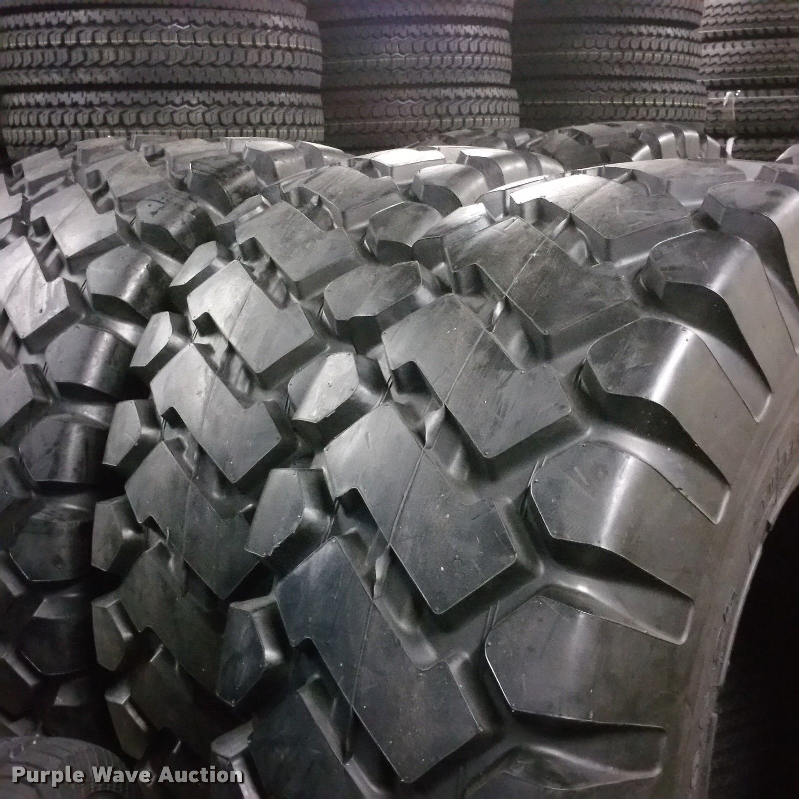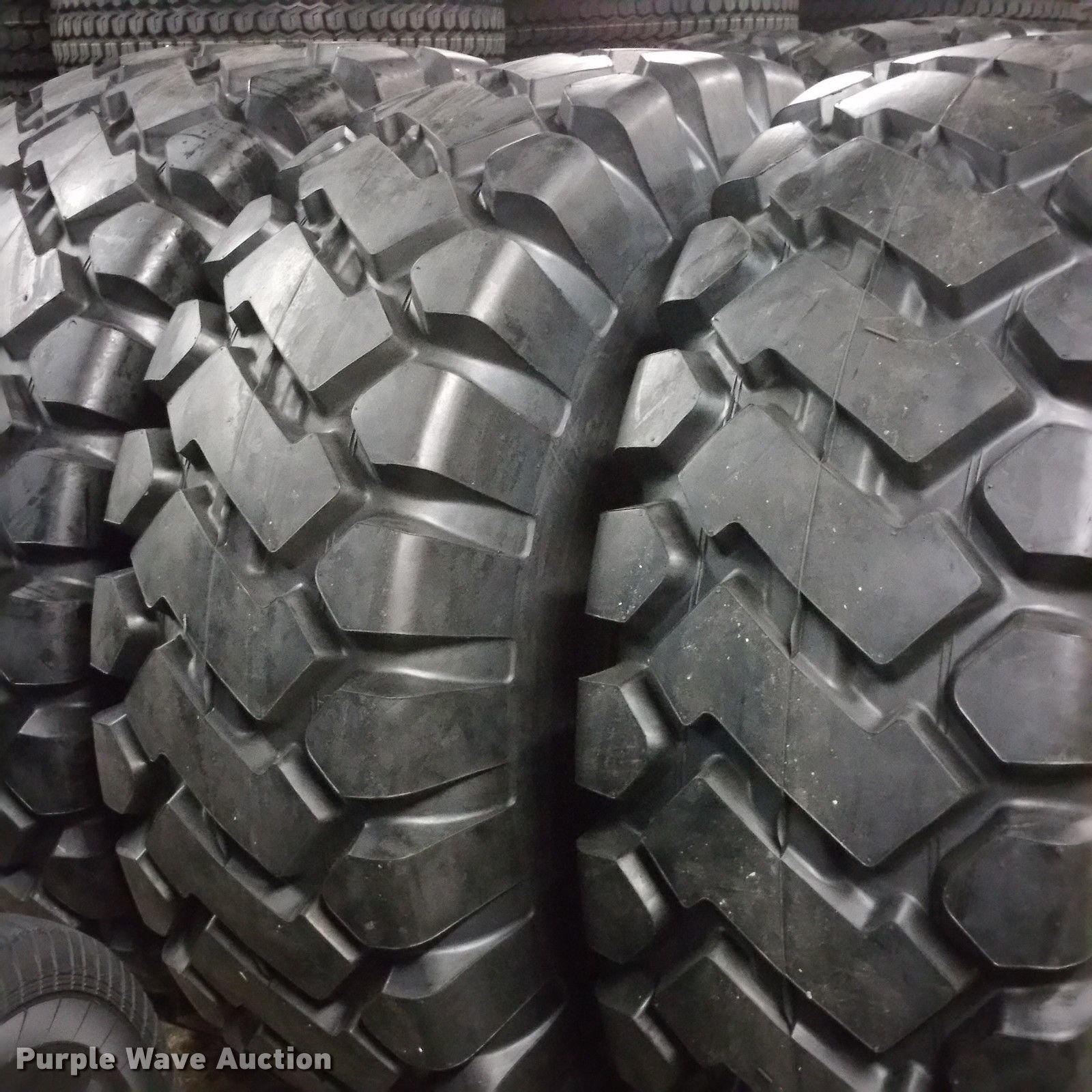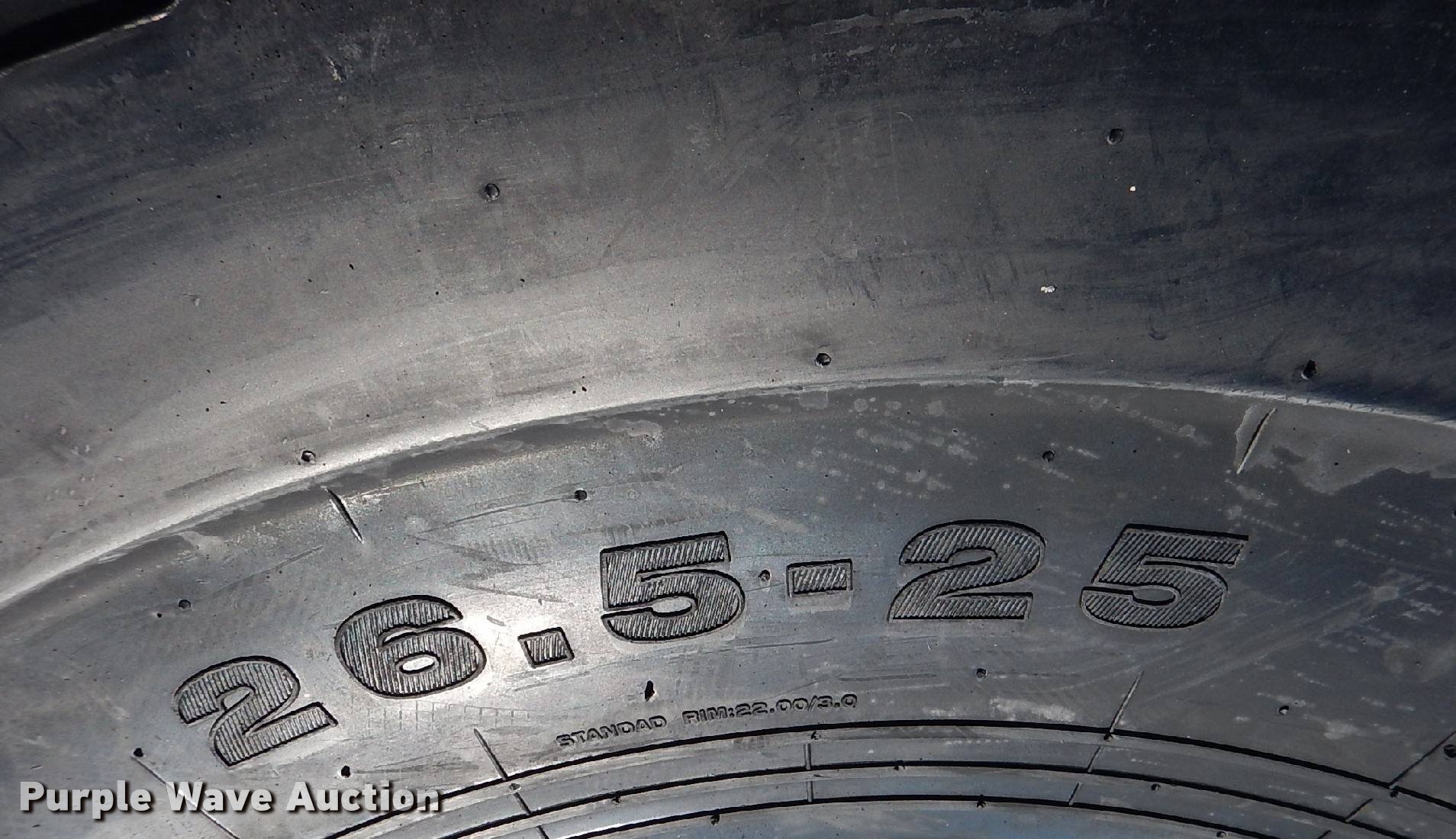 Purple Wave is selling a used Industrial Tires or Tracks in Kansas. This item is a (4) 26.5x25 loader tires with the following: Honor tire E-3/L3, 28 ply, 17.00x25-2.0 wheel size, 26" section width, 68" diameter overall, 34,000 lbs load capacity at 6 mph, 22,385 lbs load capacity at 31 mph, 76 psi max air pressure, 45/32nds tread depth, Unused